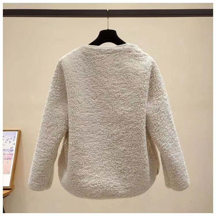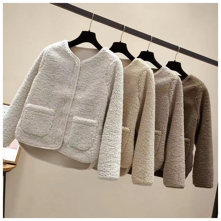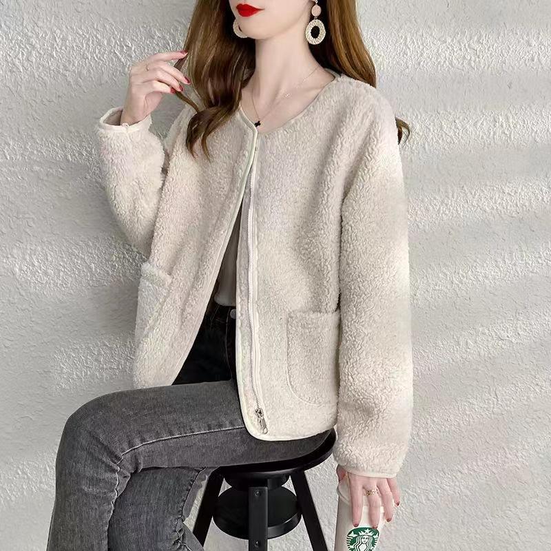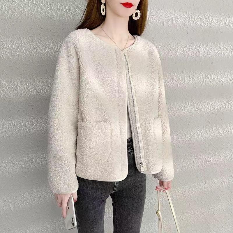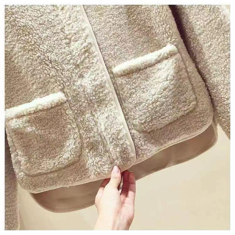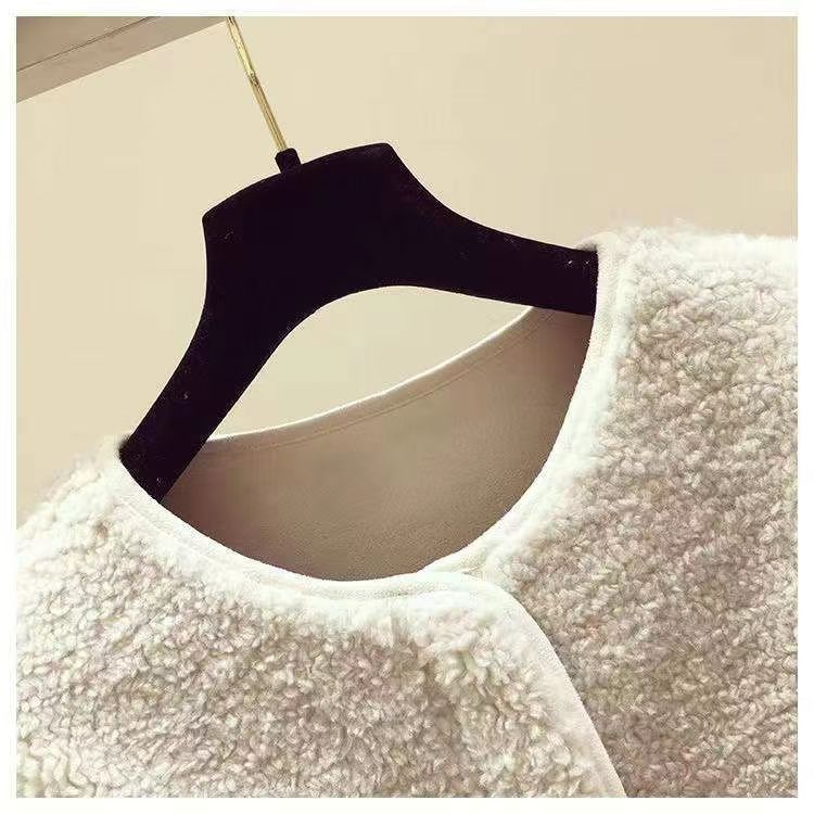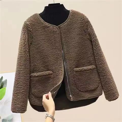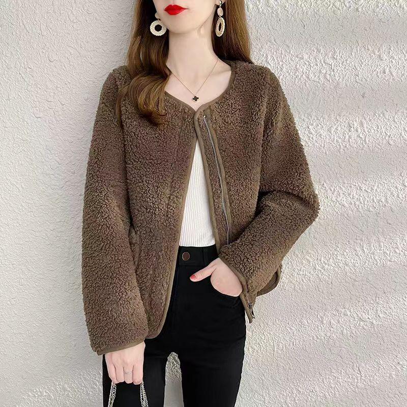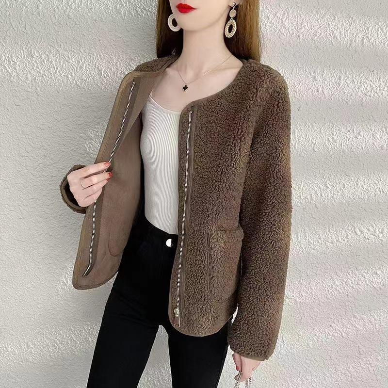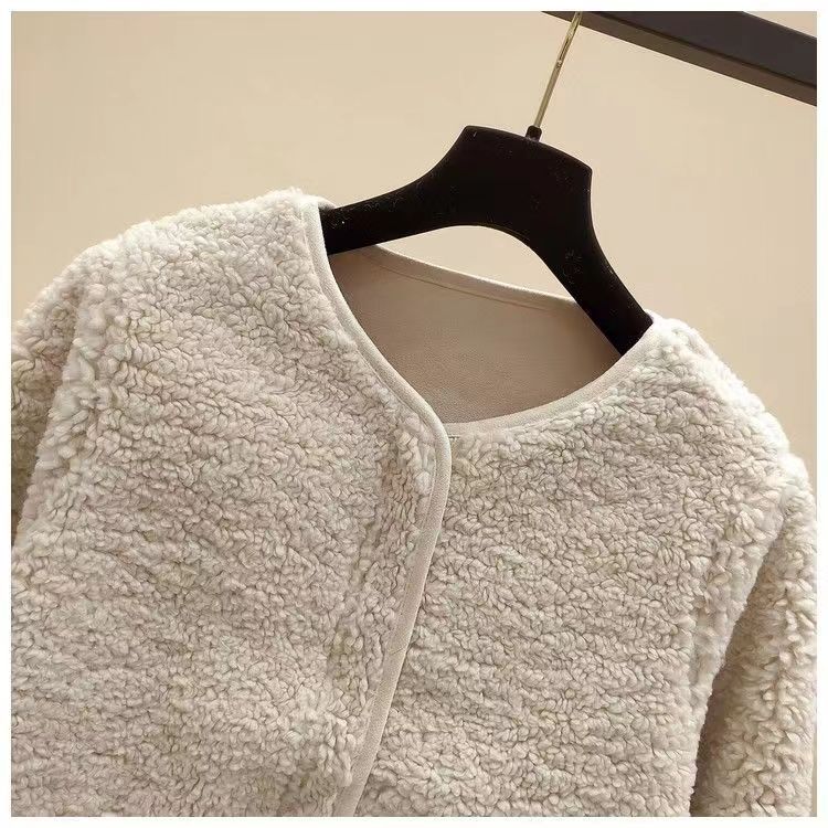 Otoño e Invierno nuevo abrigo combinable para mujer lana sintética estilo Chanel estilo coreano top talla grande corto suelto cuello redondo