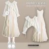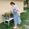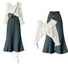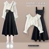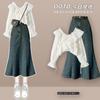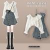 Traje de Primavera para Mujer 2024 Nuevo Diseño de Estilo Reductor de Edad Camisa de Manga Abullonada Falda de Peto Denim para Mujer Conjunto de Dos Piezas