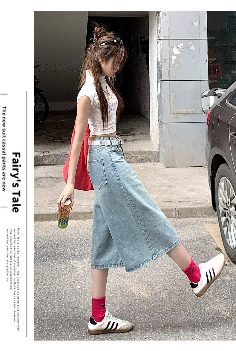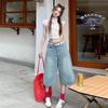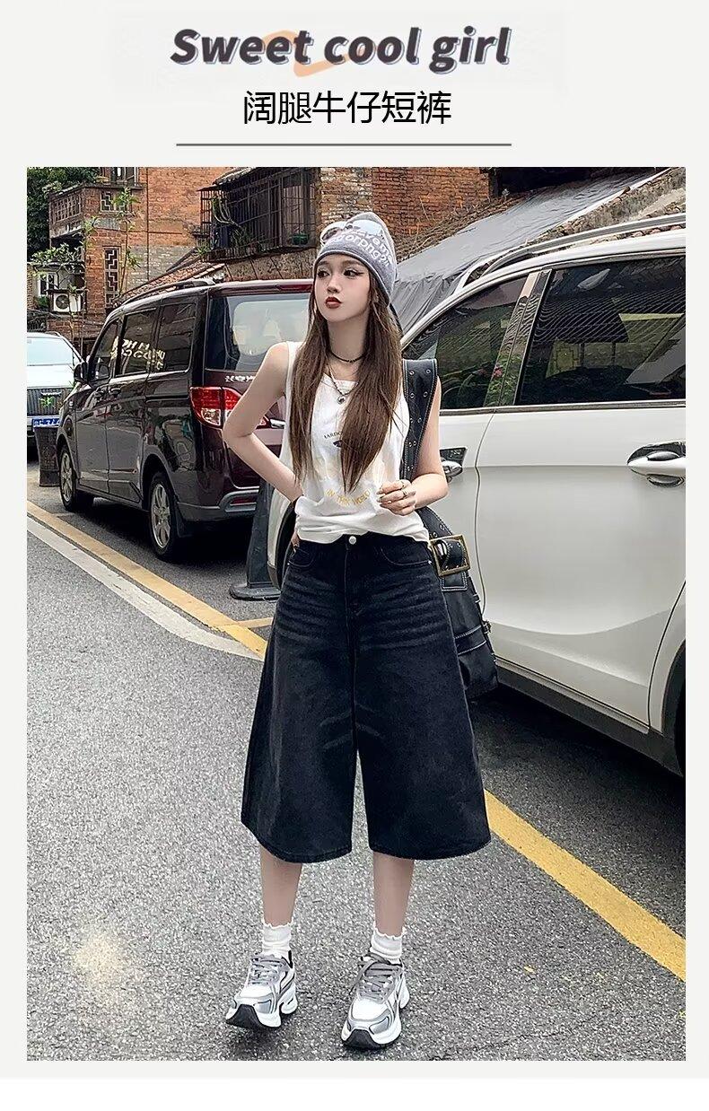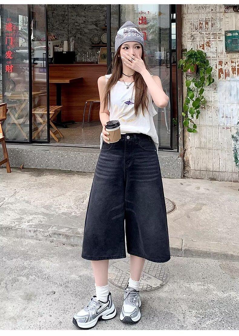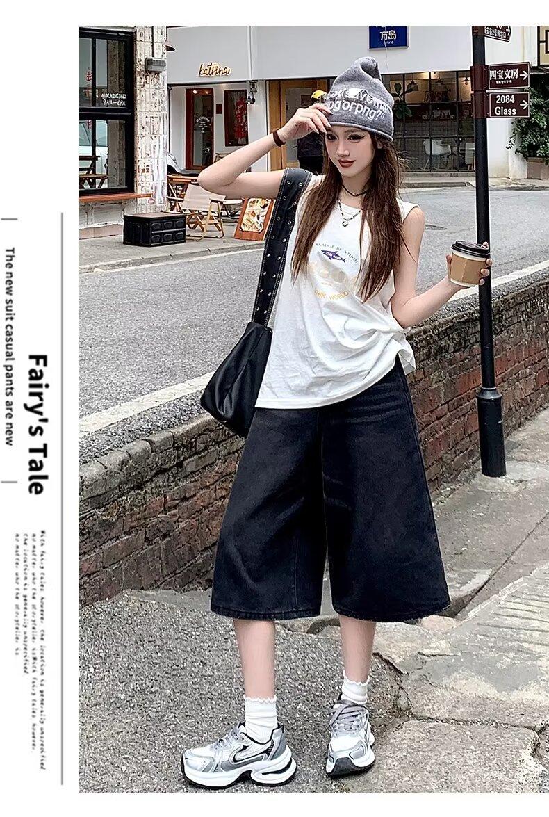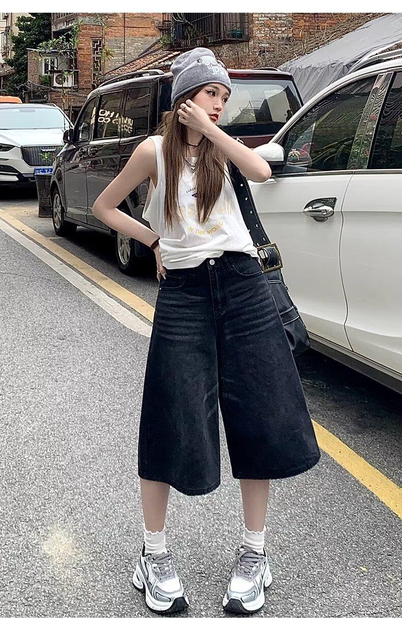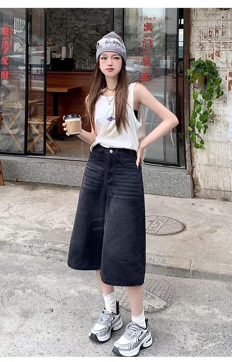 Jeans rectos cropped de color claro para mujer, Verano 2025 Nuevo Cintura alta Suelto Adelgazante Casual Versátil Shorts de pierna ancha