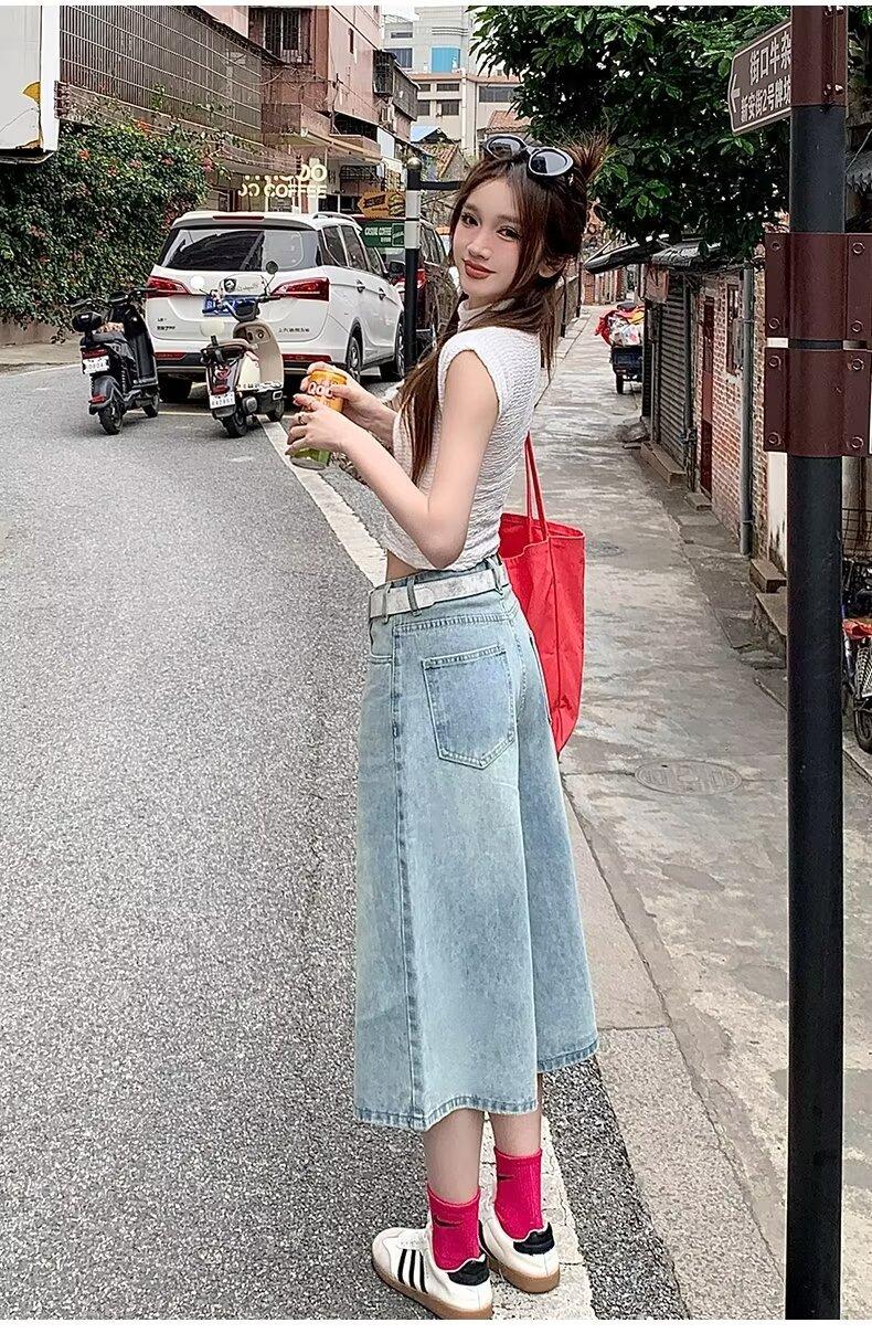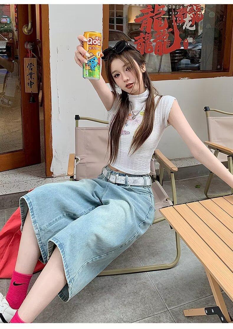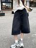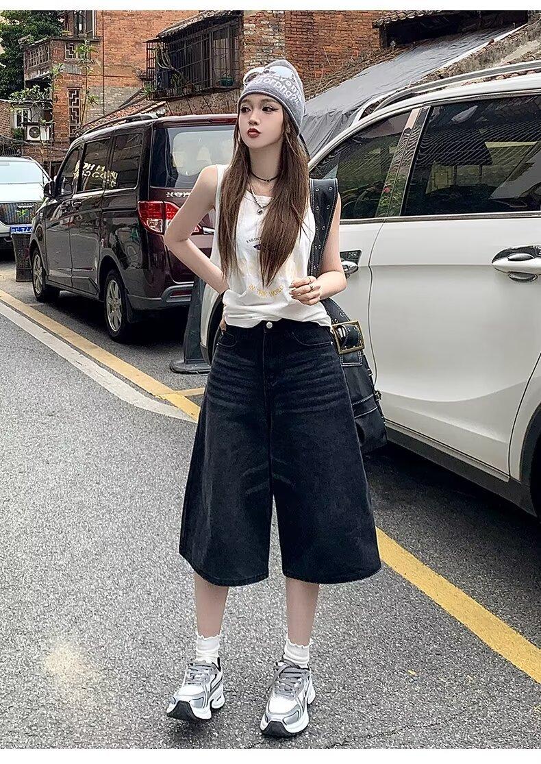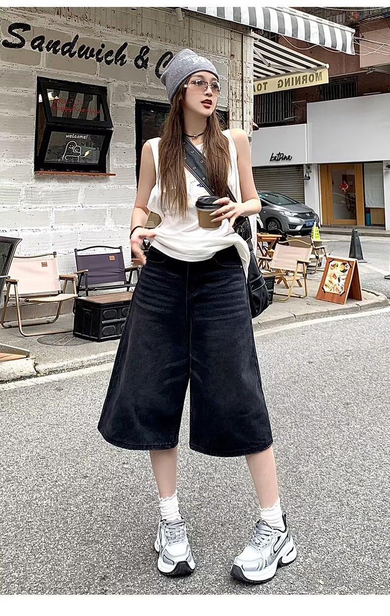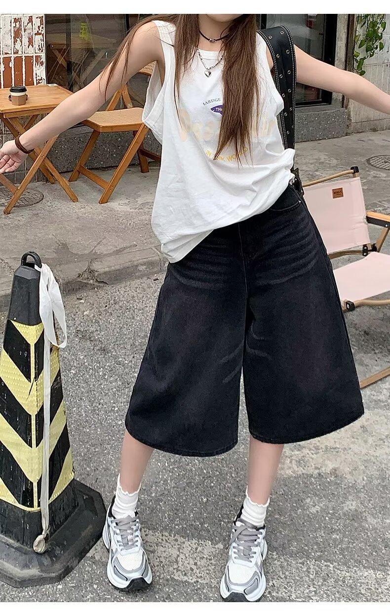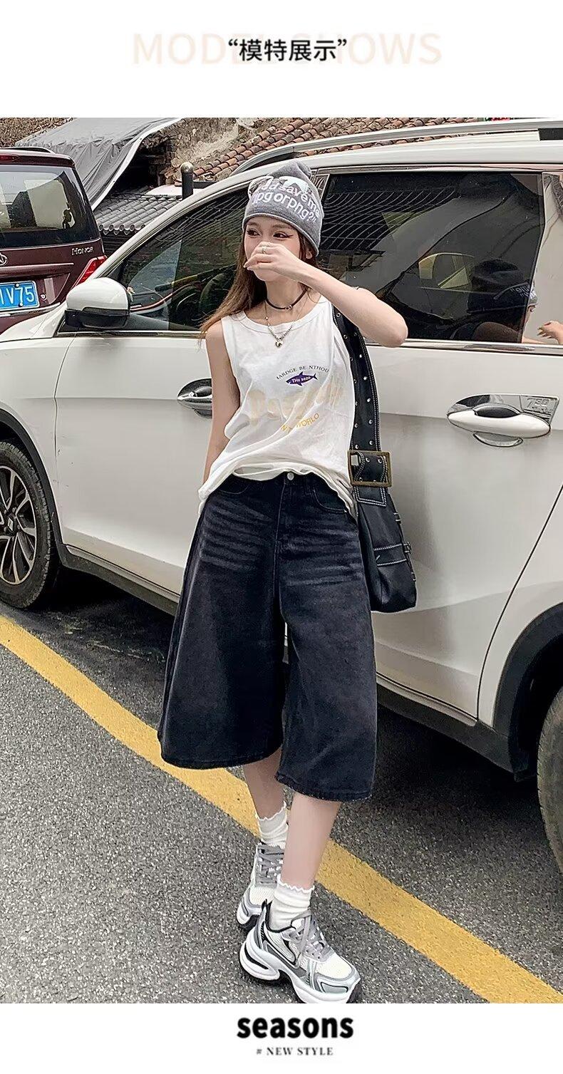 Jeans rectos cropped de color claro para mujer, Verano 2025 Nuevo Cintura alta Suelto Adelgazante Casual Versátil Shorts de pierna ancha