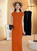 Vestido de manga corta estilo coreano para mujer, primavera y verano 2025, nuevo, sencillo, informal, con base adelgazante, temperamento, vestido largo de alta gama.