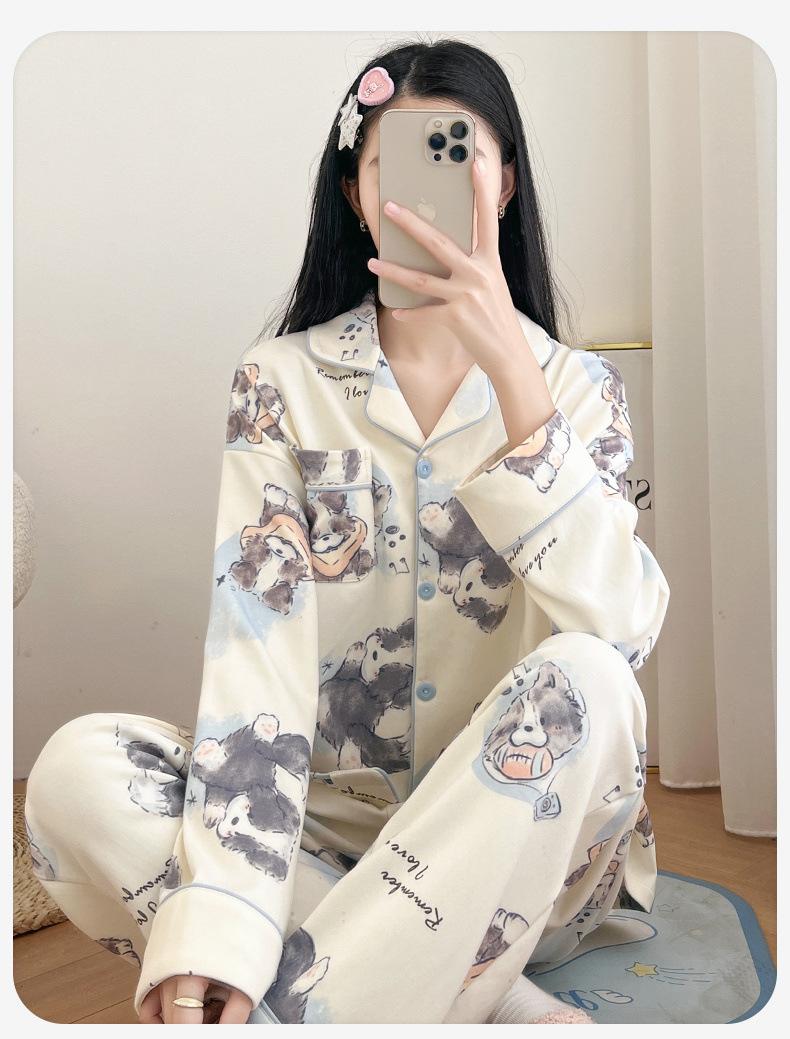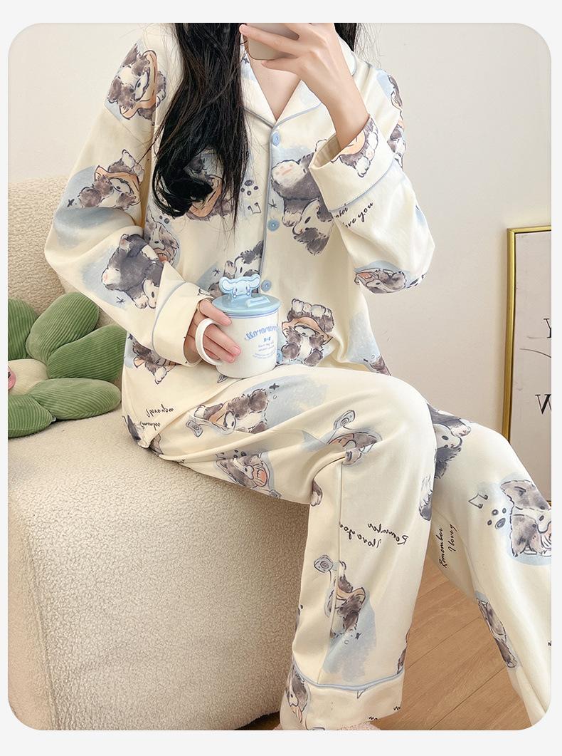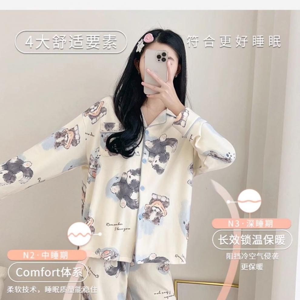 Cárdigan de Dibujos Animados para Mujer para Estar en Casa Nuevo Pijama Conjunto de Dos Piezas para Mujer Primavera y Otoño Manga Larga Verano Dulce Talla Extra Traje