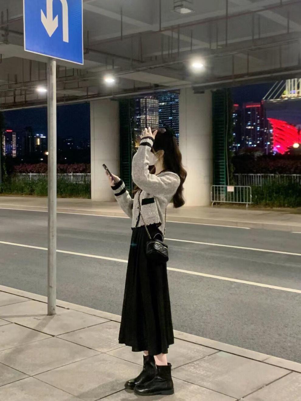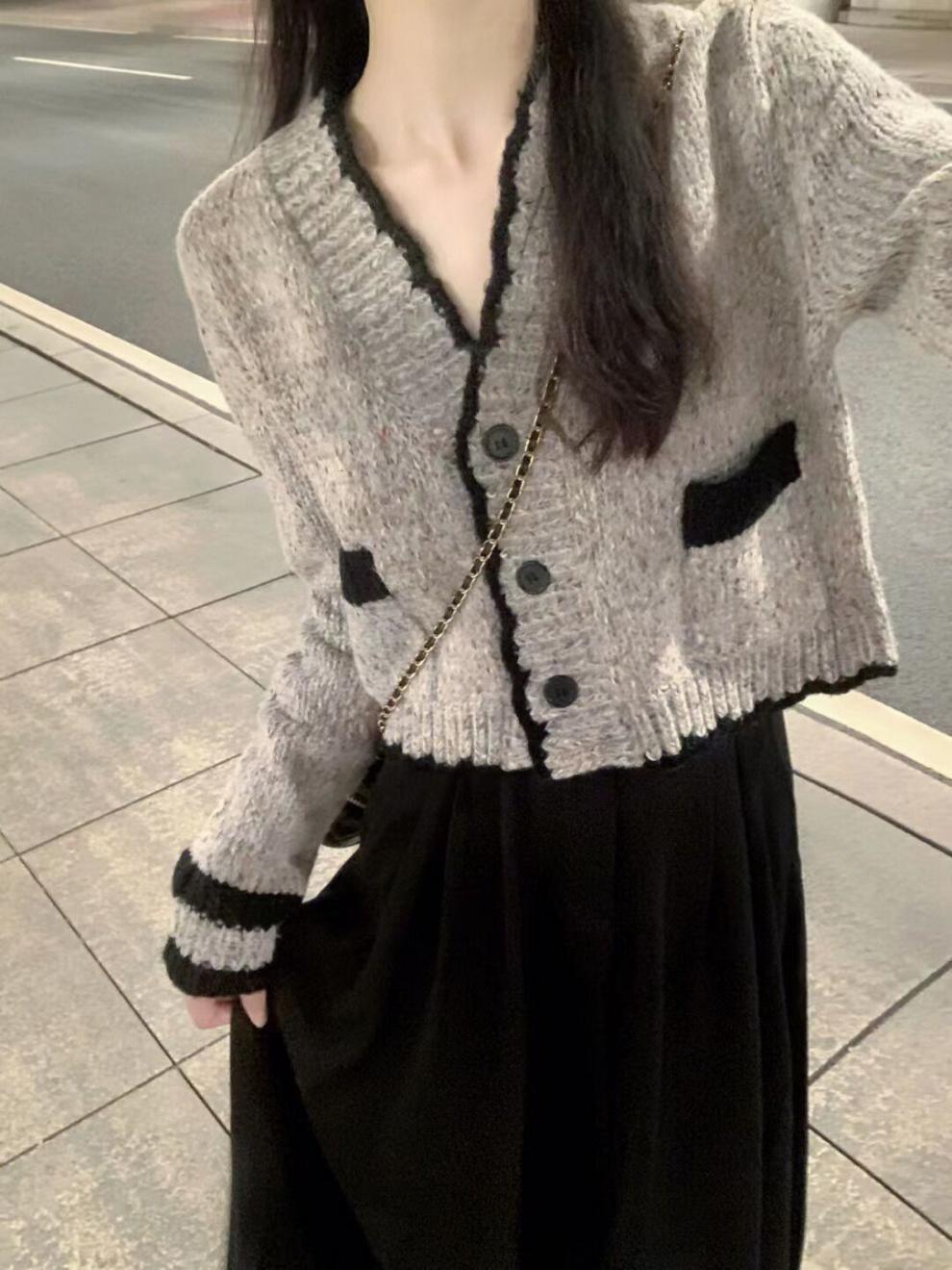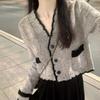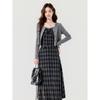Estilo Fragante de Primavera Reductor de Edad Estilo Occidental Vestido de Moda Cárdigan de Punto Salado para Mujer Falda Conjunto de Dos Piezas