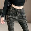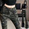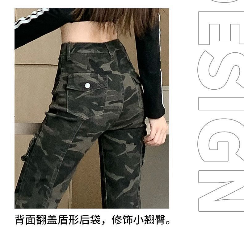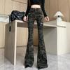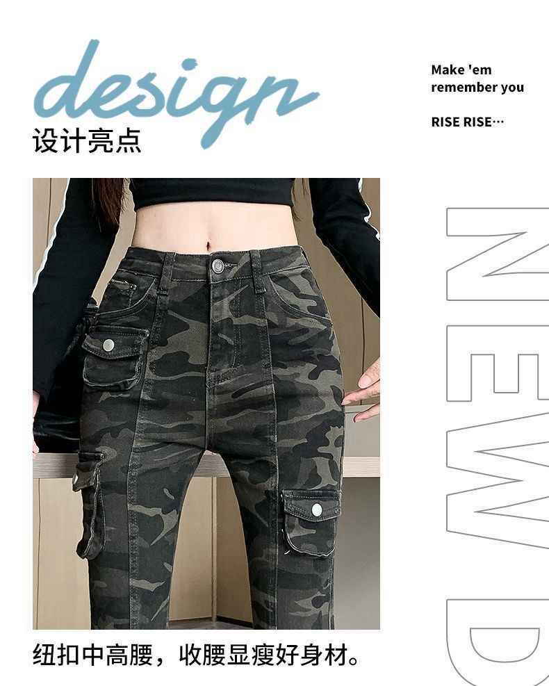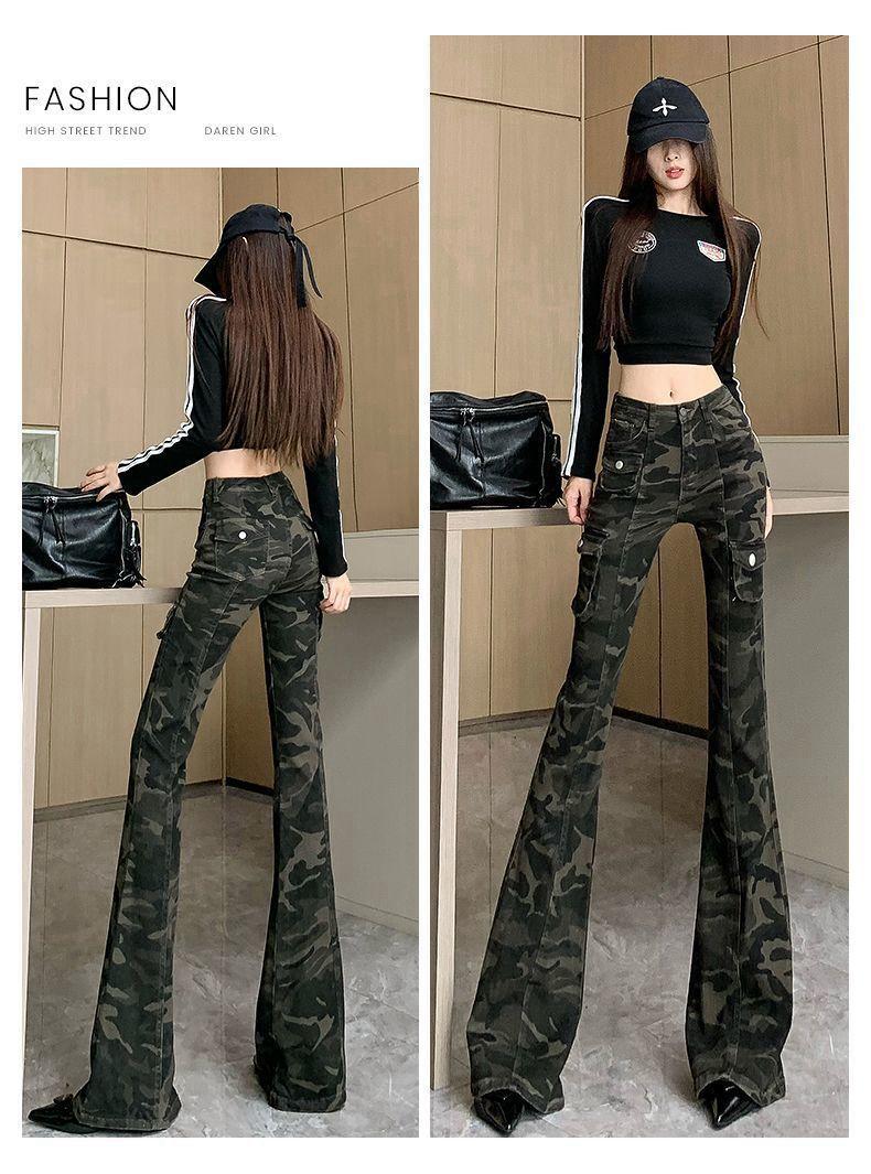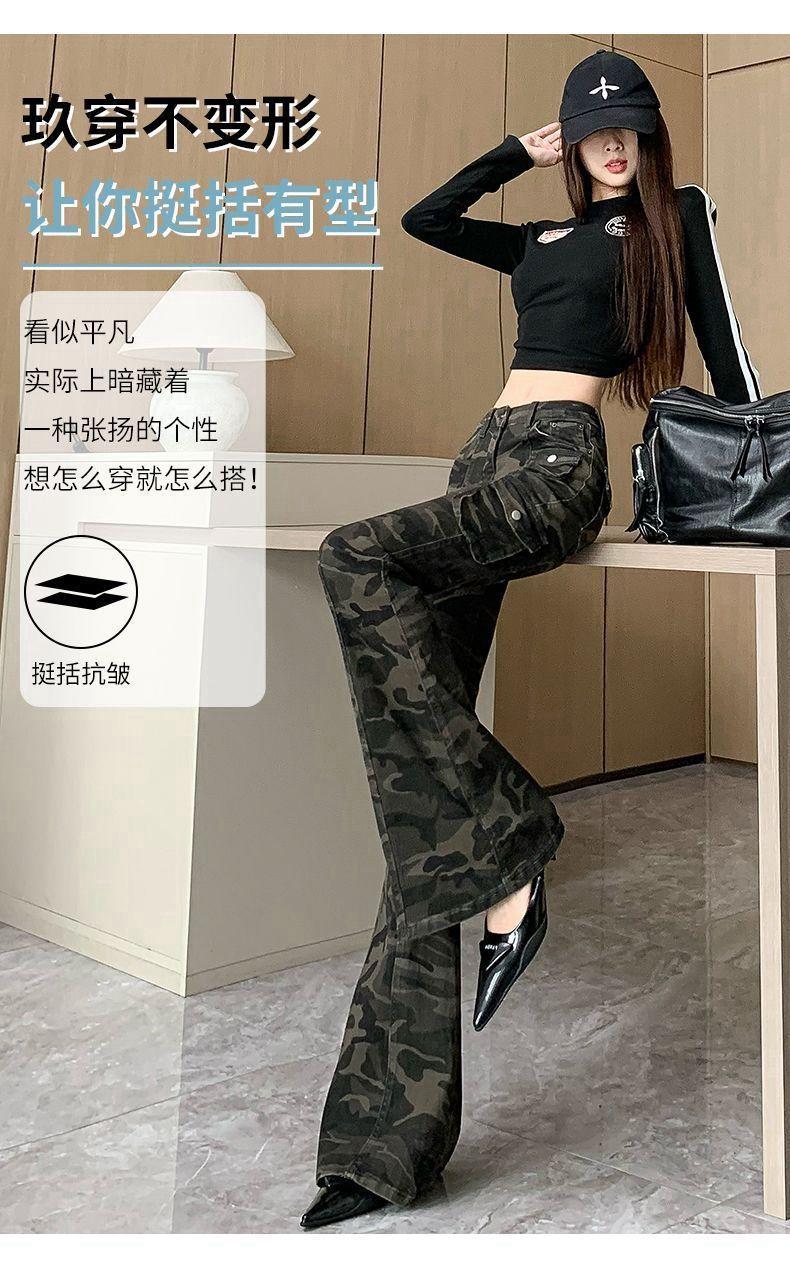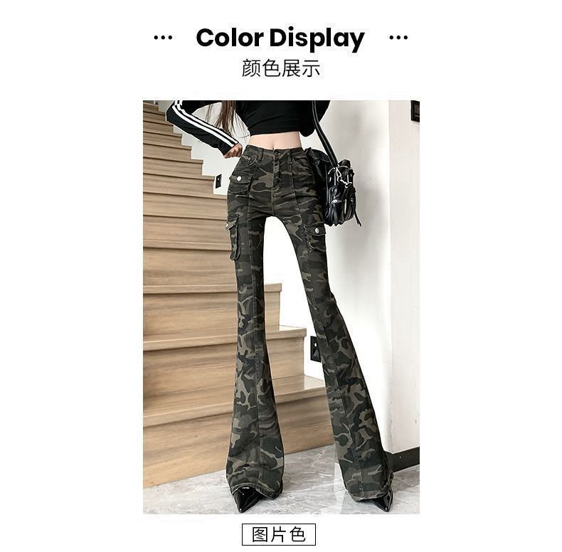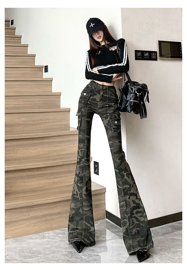 Camuflaje American High Street Jeans Microacampanados de Cintura Baja para Mujer con Pantalones Horseshoe Rectos Adelgazantes de Cintura Alta