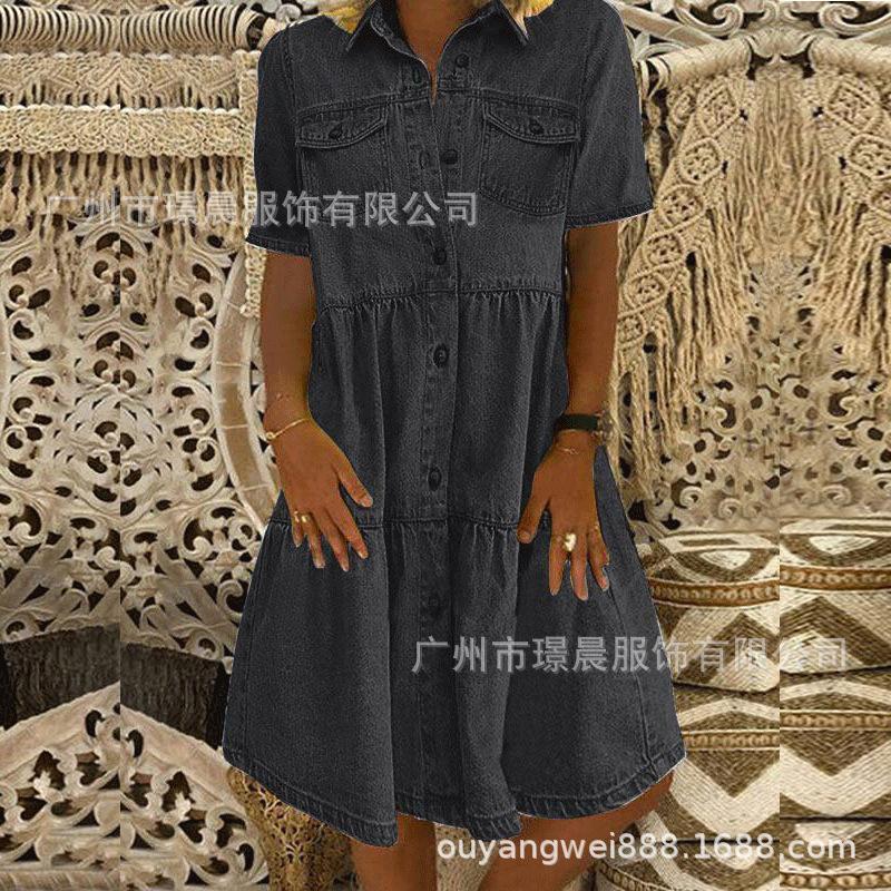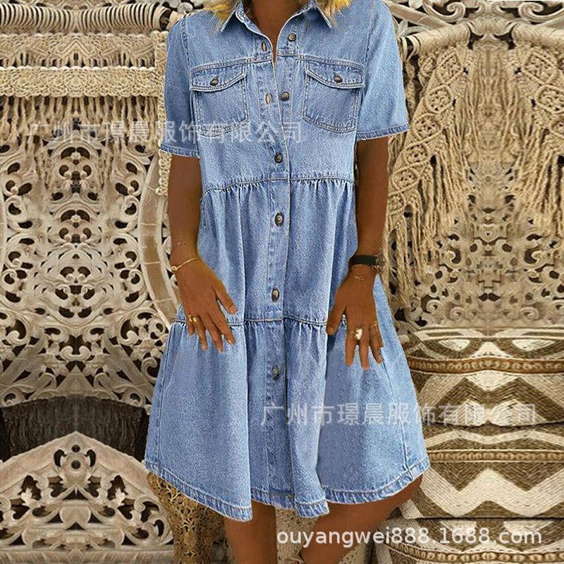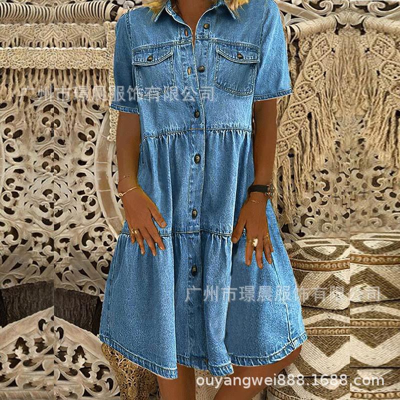 Amazon Explosiones 2023 Verano Transfronterizo Nuevo Comercio Exterior Costuras Manga Larga Corta Costuras Vestido Holgado para Mujer