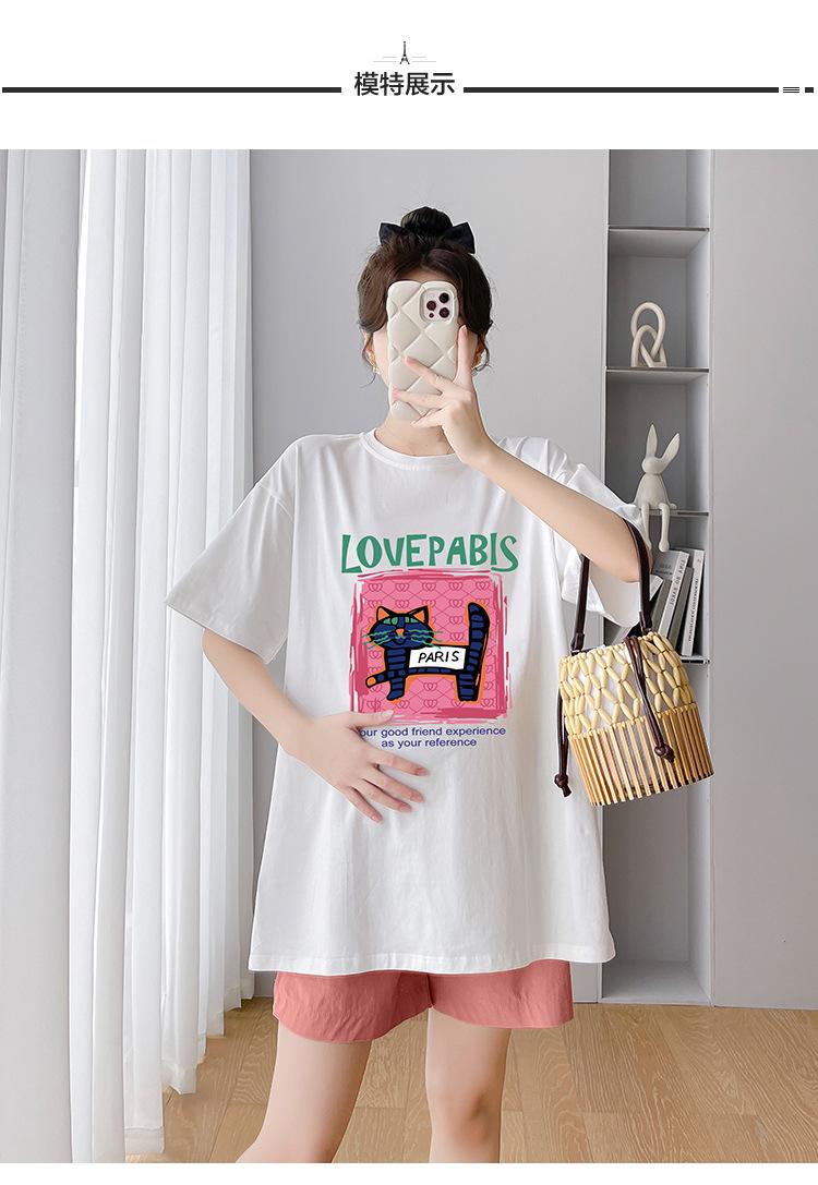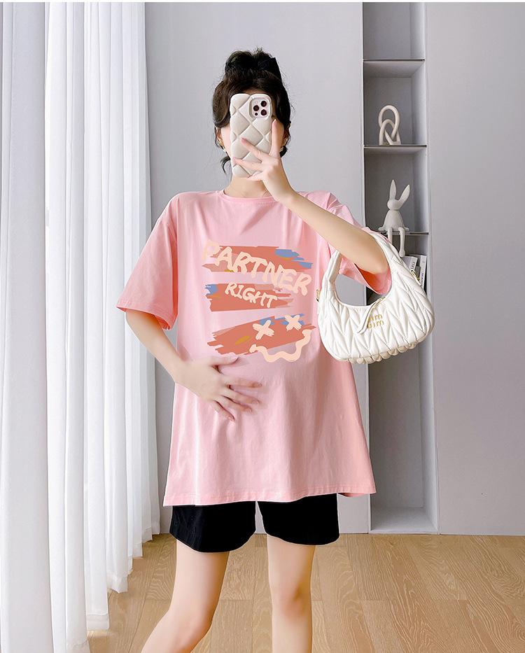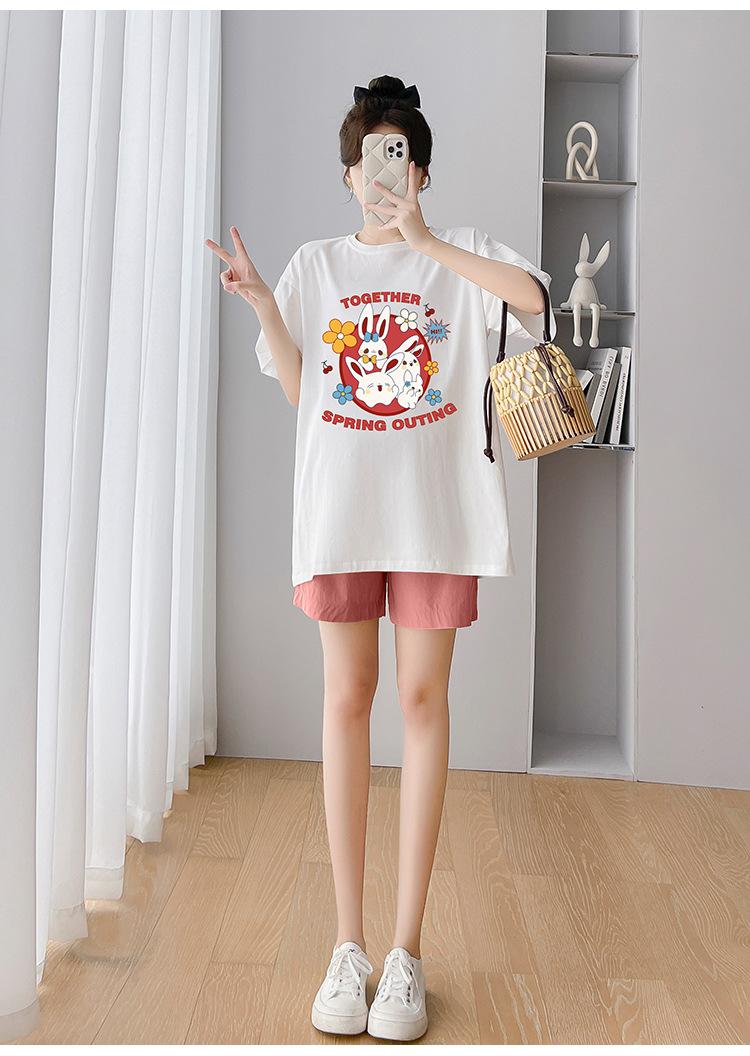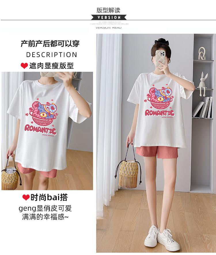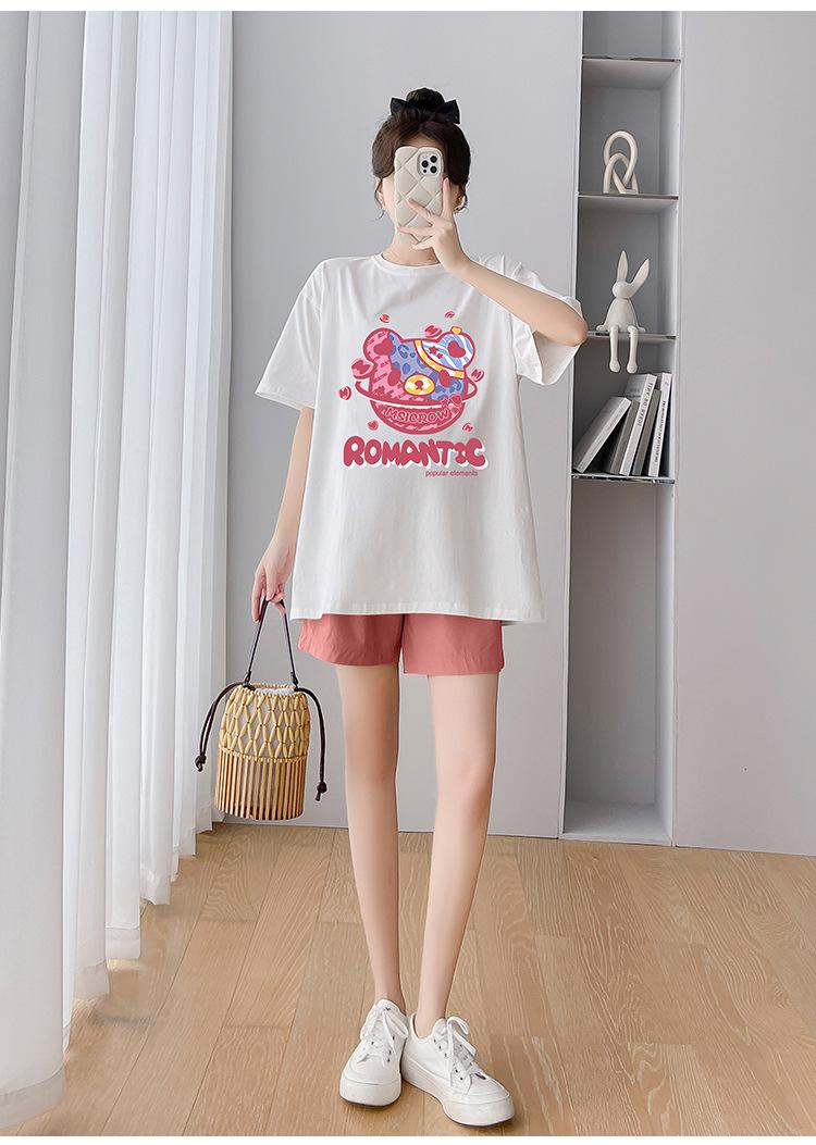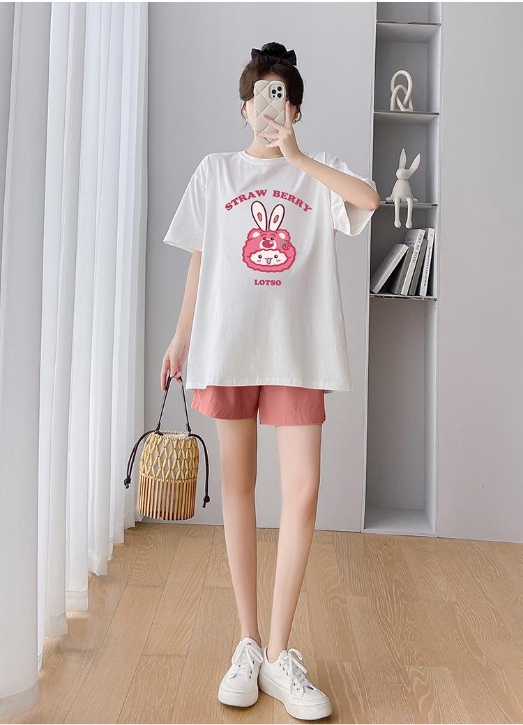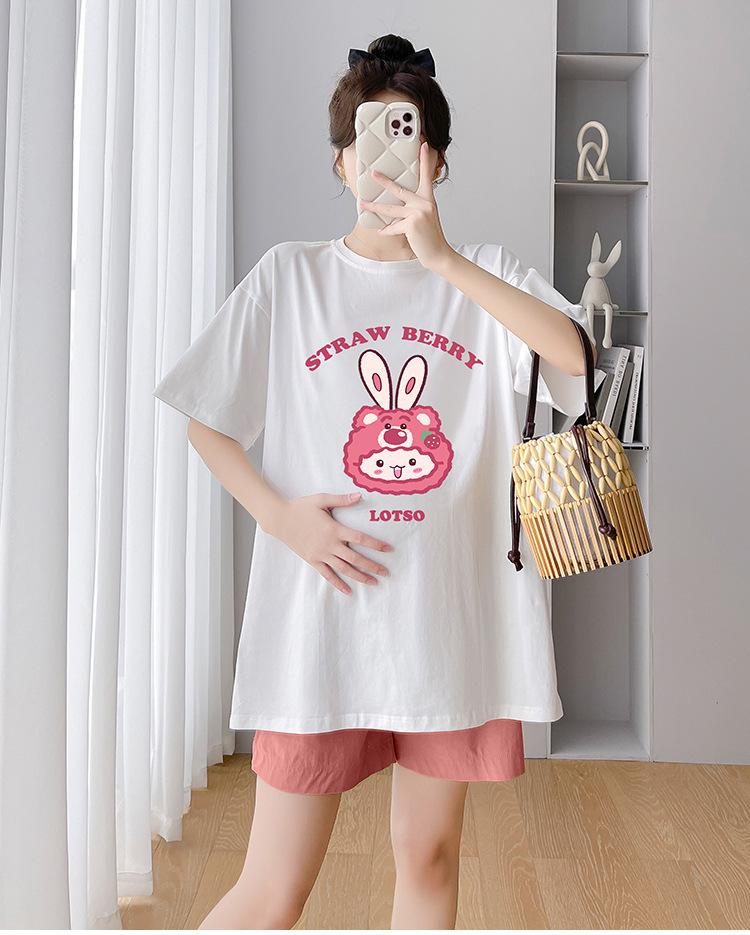 Ropa de Maternidad Verano 2025 Nueva Camiseta de Manga Corta de Algodón Puro Estilo Coreano Holgada Cubre Vientre Estampado de Oso Ropa de Verano