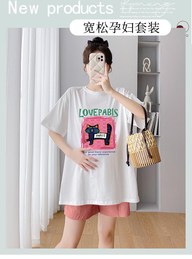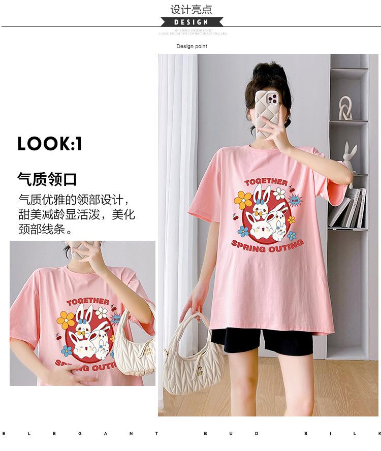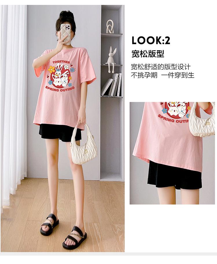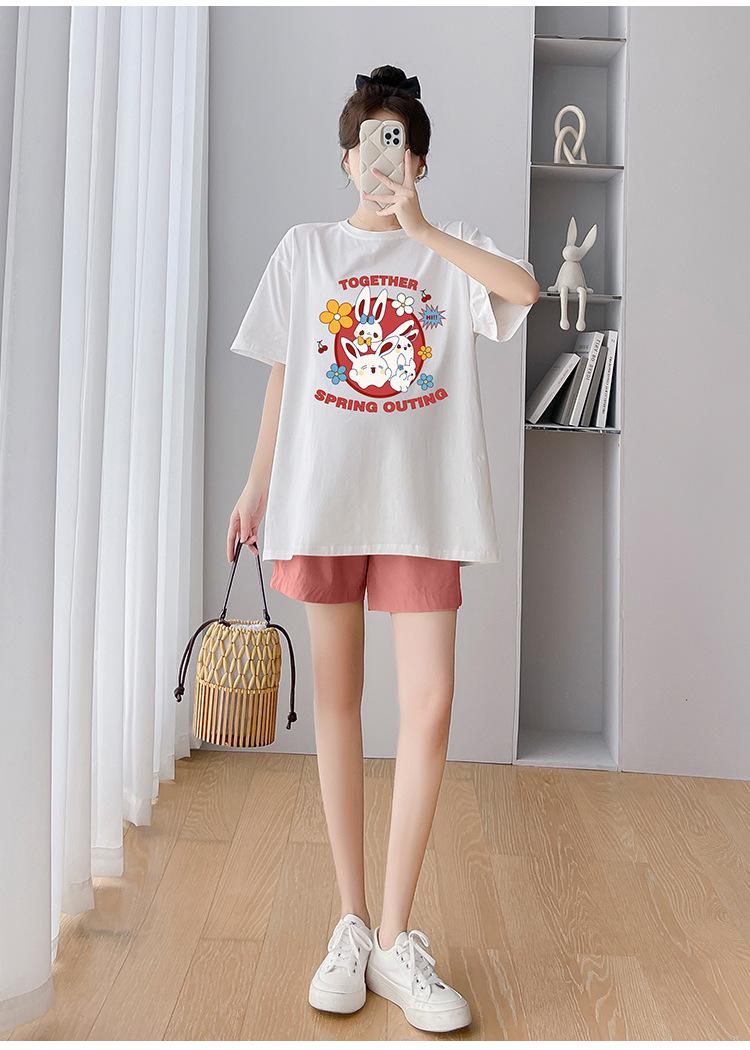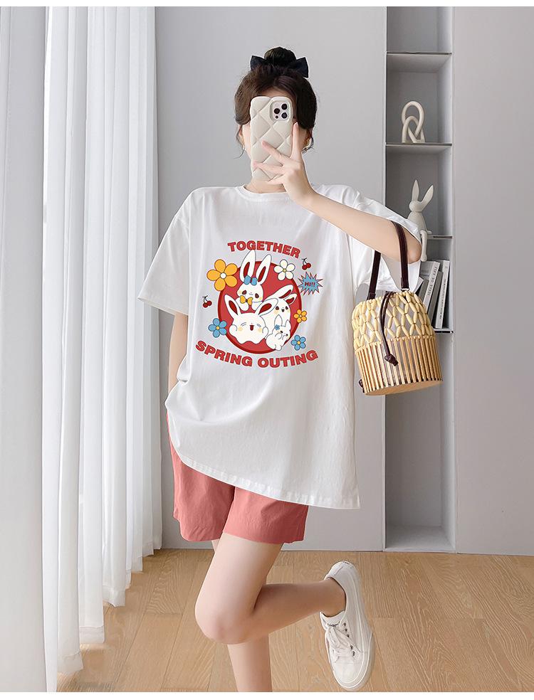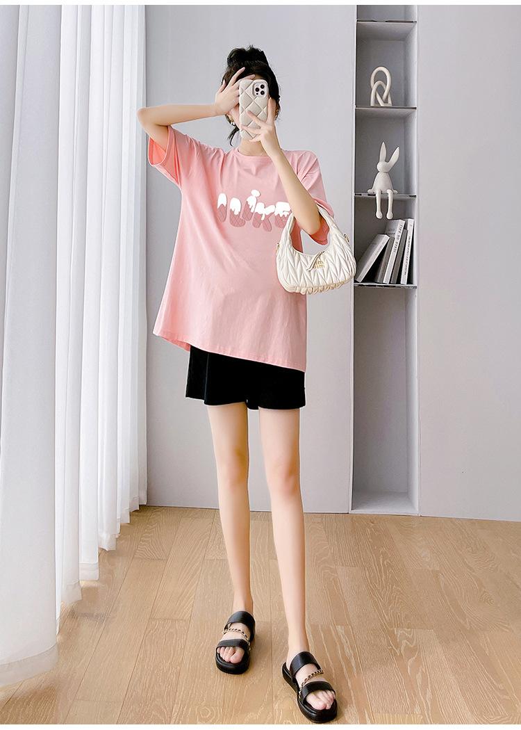 Ropa de Maternidad Verano 2025 Nueva Camiseta de Manga Corta de Algodón Puro Estilo Coreano Holgada Cubre Vientre Estampado de Oso Ropa de Verano