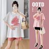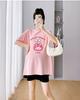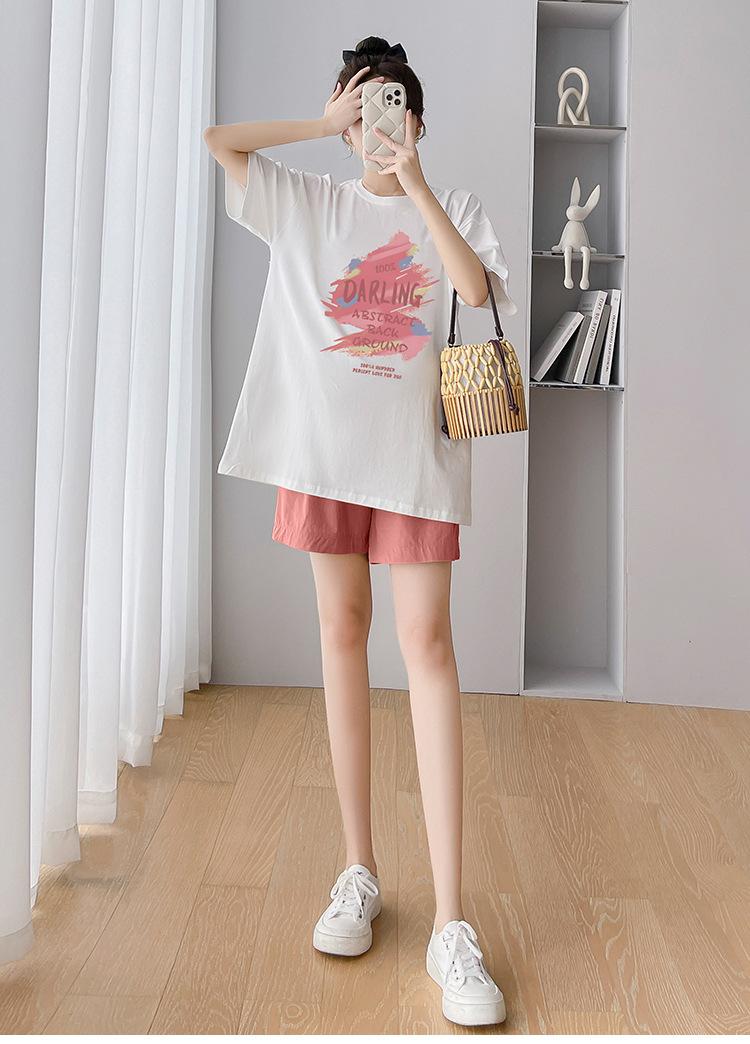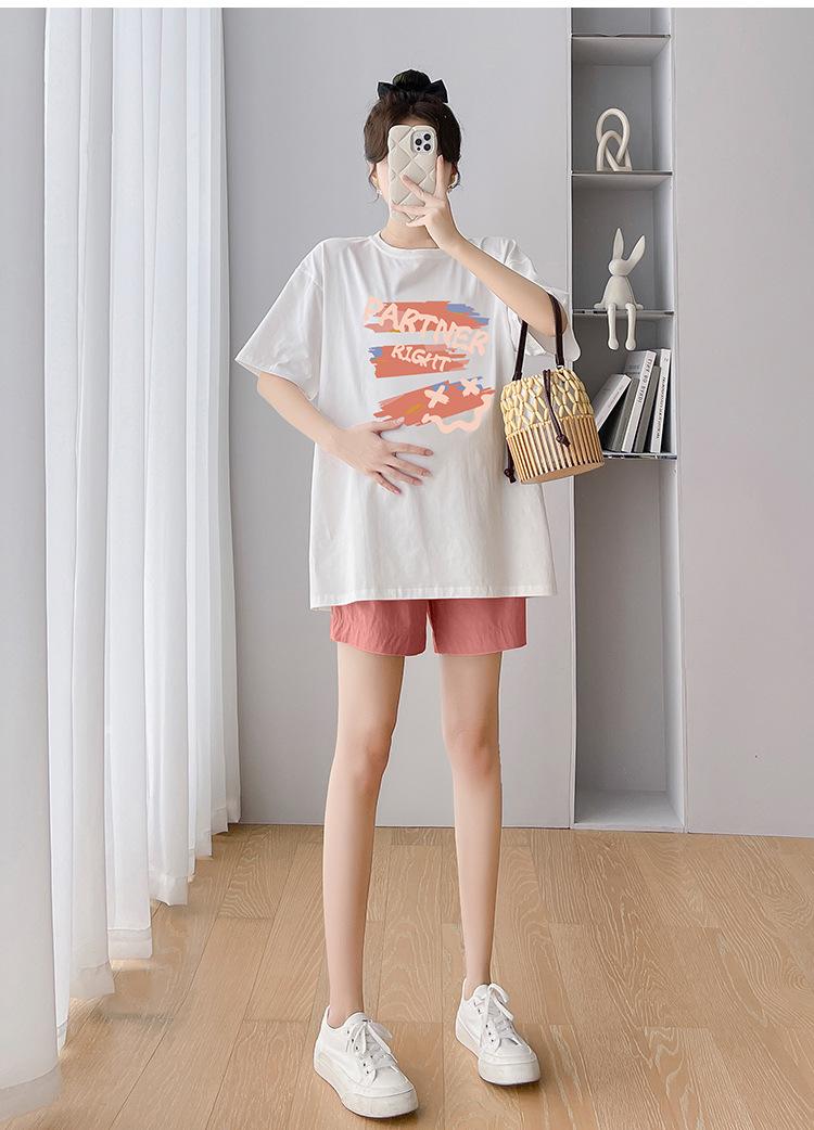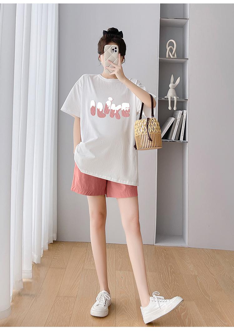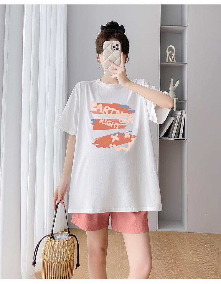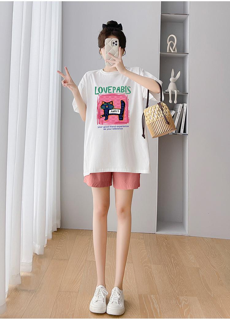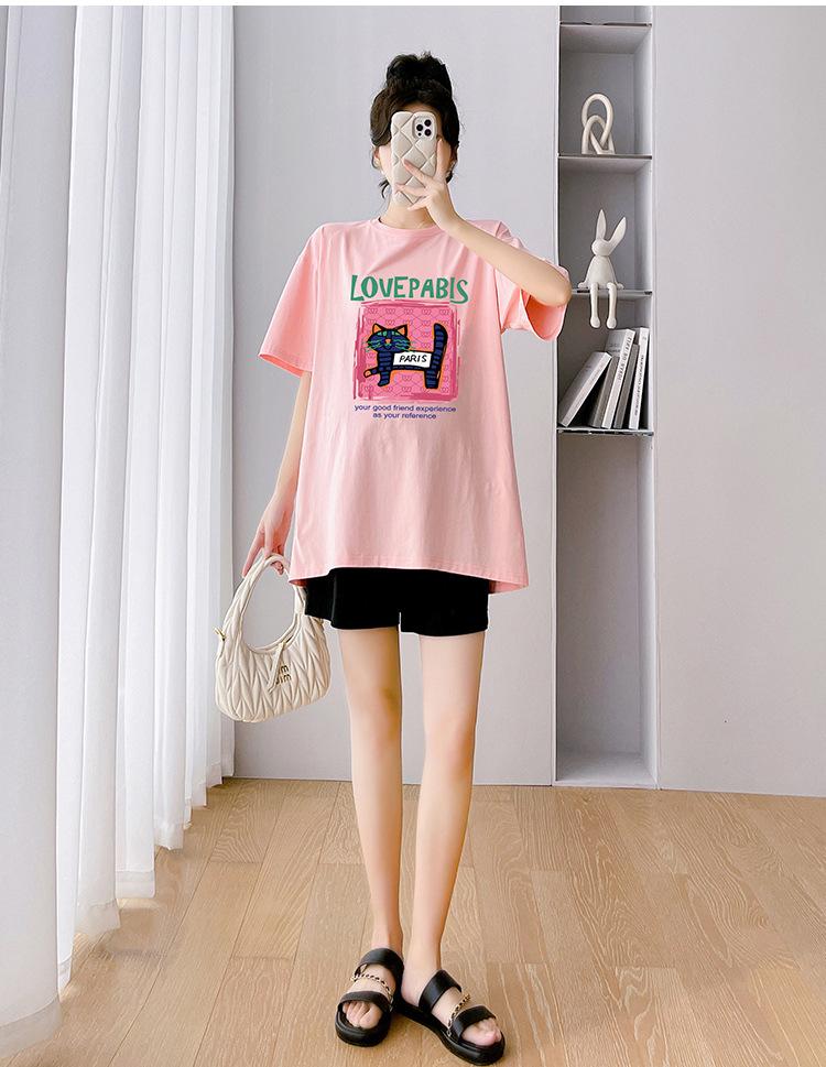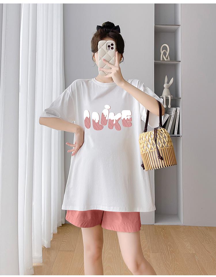 Ropa de Maternidad Verano 2025 Nueva Camiseta de Manga Corta de Algodón Puro Estilo Coreano Holgada Cubre Vientre Estampado de Oso Ropa de Verano