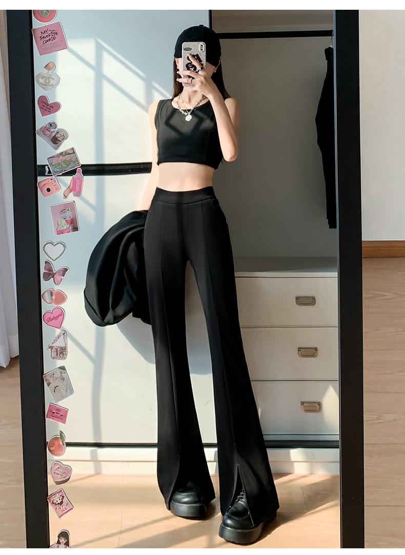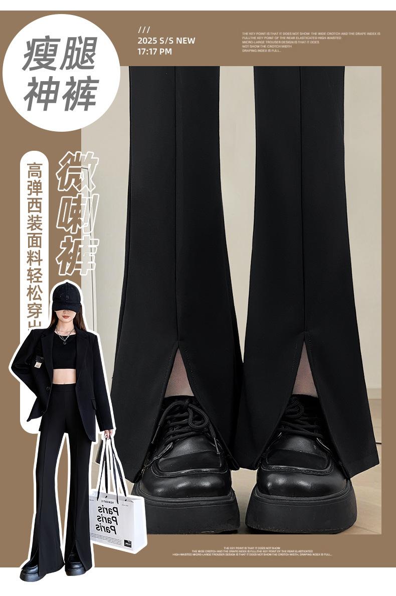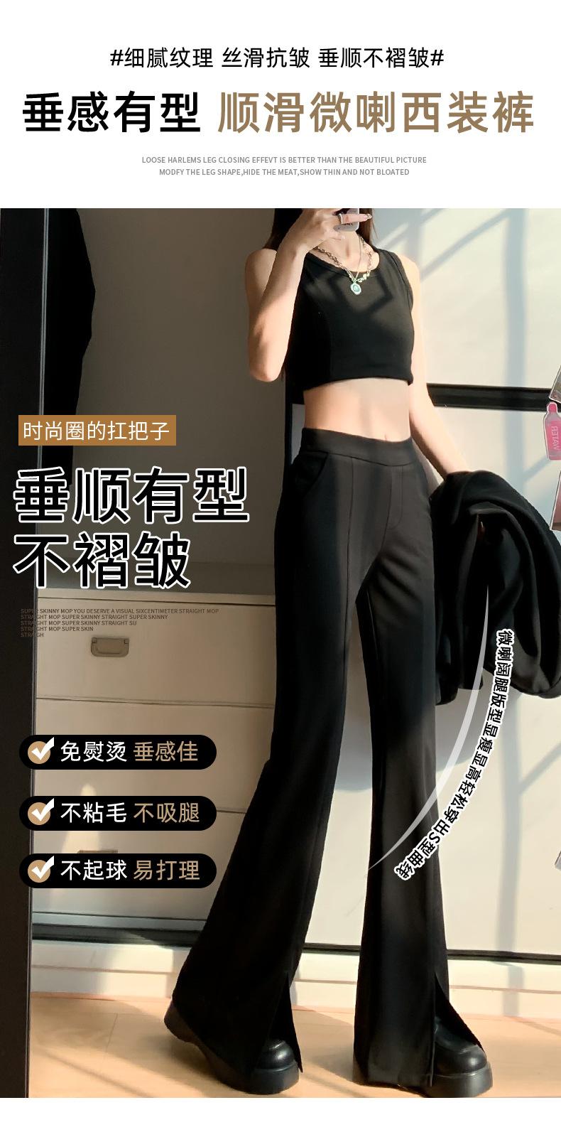 Pantalones Acampanados Negros para Mujer, Estilo Delgado de Verano 2025 Nuevo Adelgazantes de Cintura Alta Petite con Abertura Ajustados Tipo Traje Pantalones Microacampanados