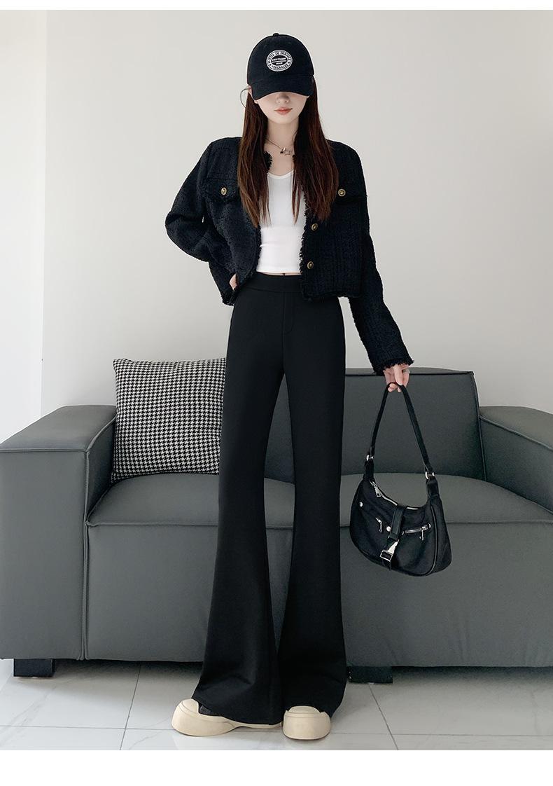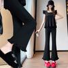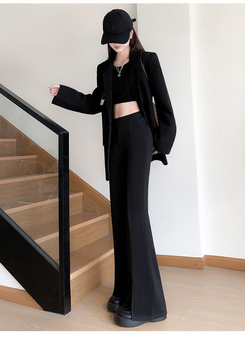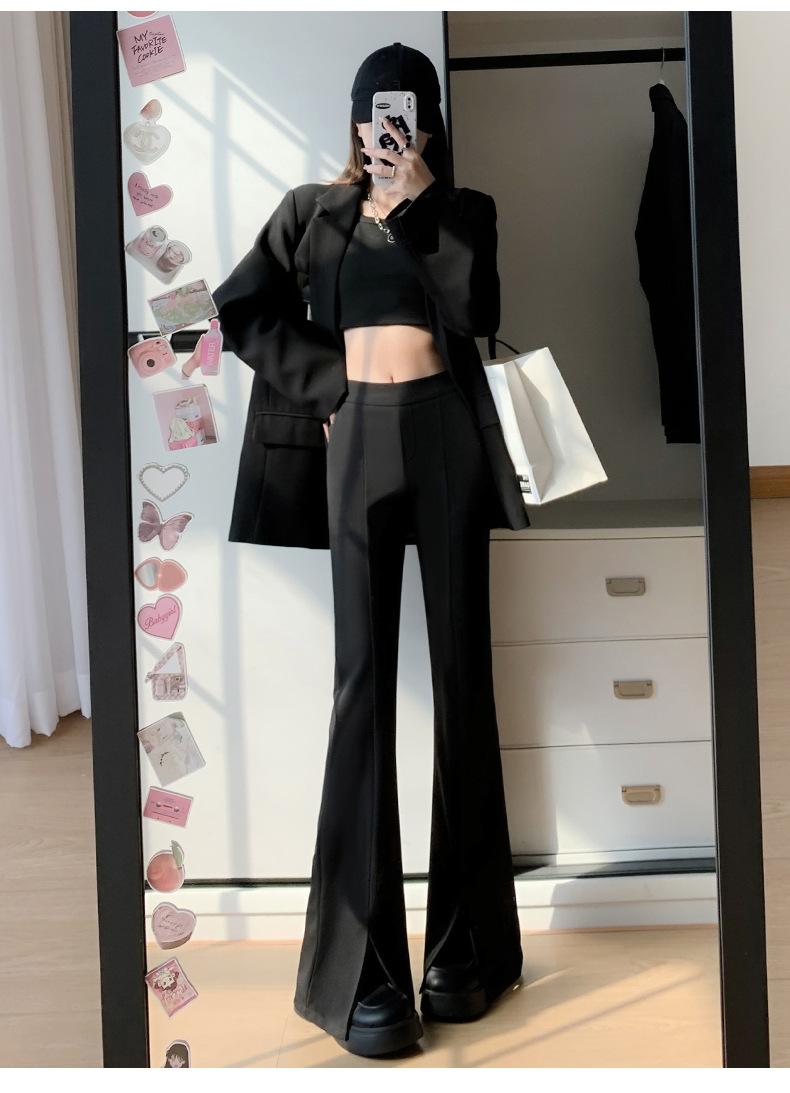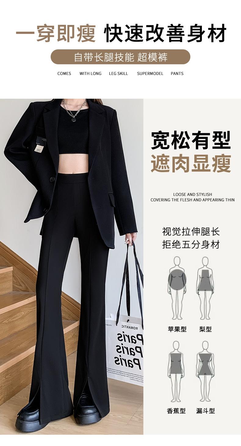 Pantalones Acampanados Negros para Mujer, Estilo Delgado de Verano 2025 Nuevo Adelgazantes de Cintura Alta Petite con Abertura Ajustados Tipo Traje Pantalones Microacampanados