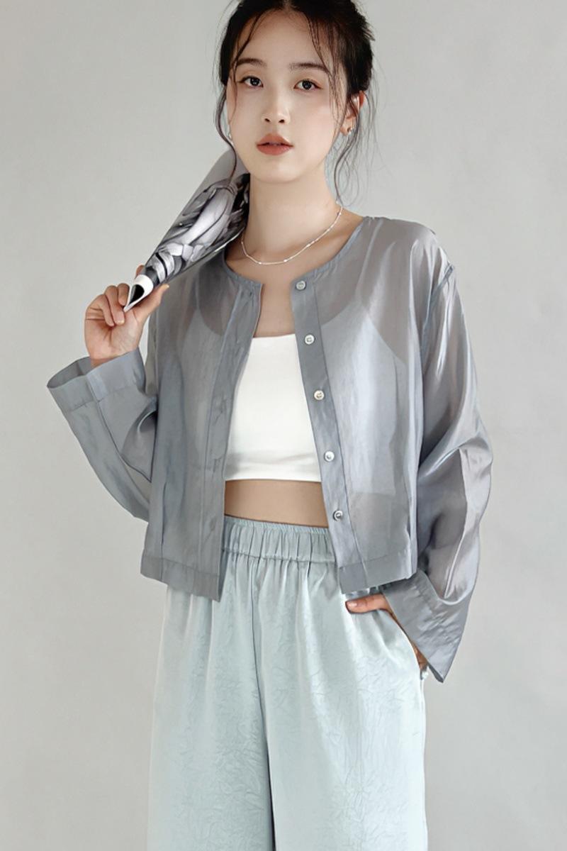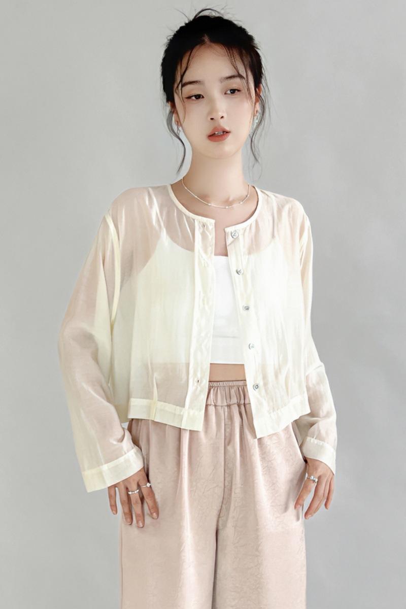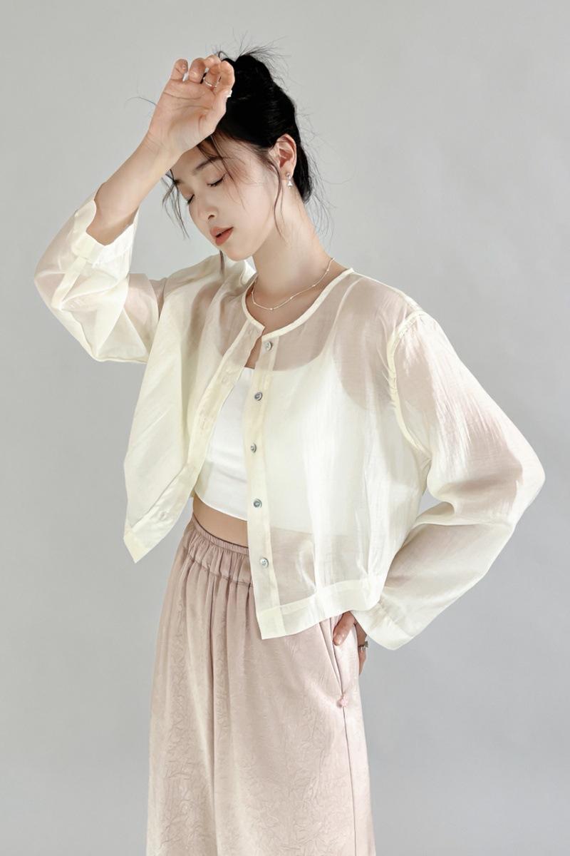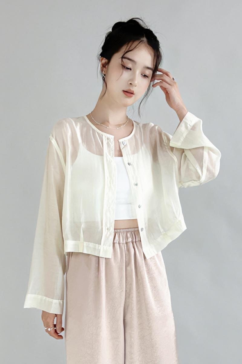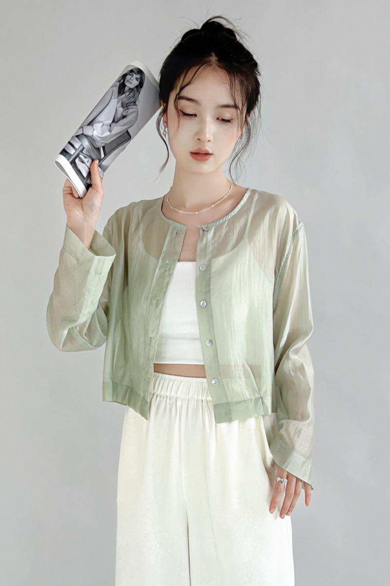 Cárdigan ligero y elegante con protección solar para mujer, chaqueta tipo chal pequeño, camisa de estilo fresco de verano nueva 2025, chaqueta corta elegante