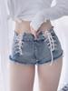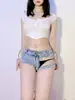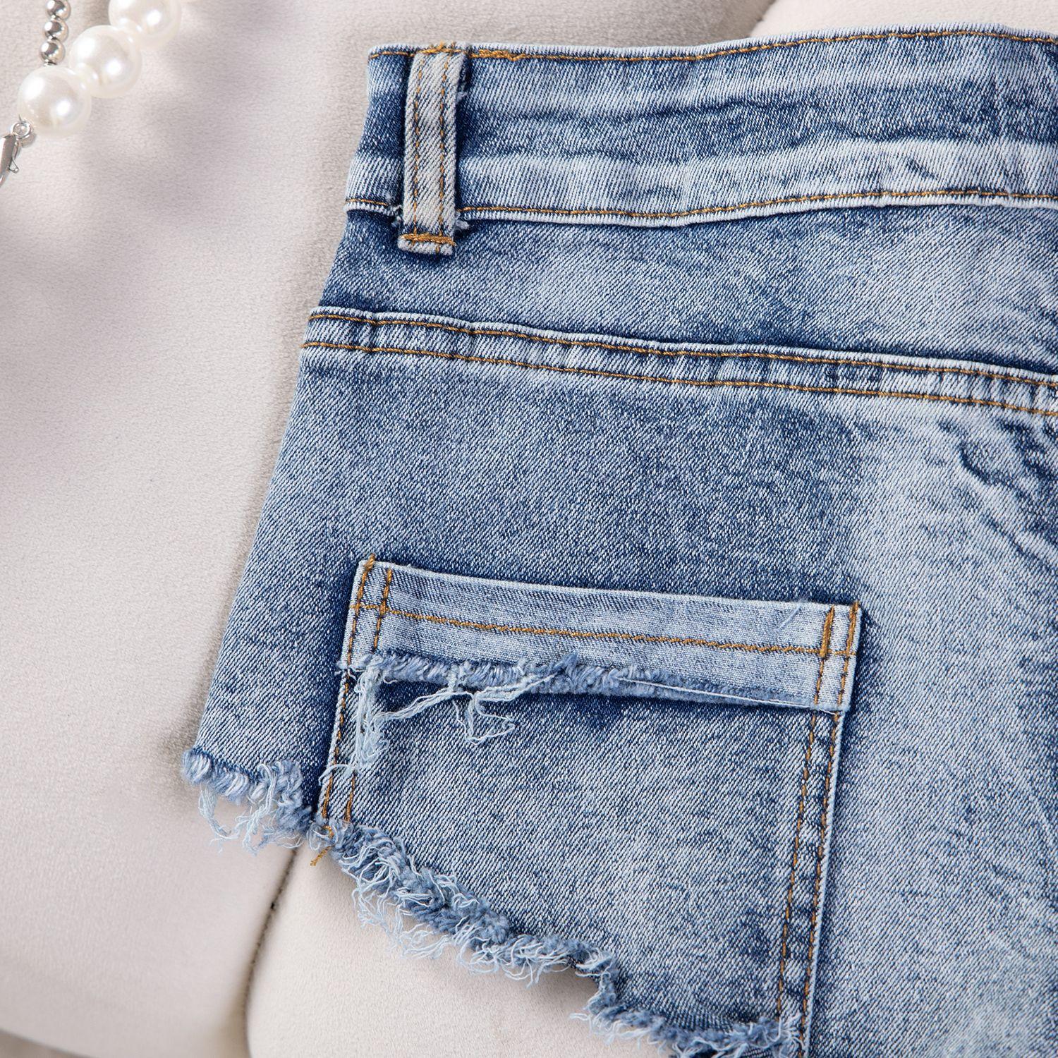 9028 Amazon - Pantalones cortos vaqueros elásticos sexys de estilo europeo y americano para mujer, pantalones vaqueros de cintura alta, talla grande