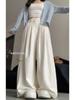 Pantalones de traje blancos para mujer, primavera y otoño 2025, nuevos pantalones de cintura alta con sensación colgante, pantalones rectos sueltos, pantalones casuales pequeños de pierna ancha