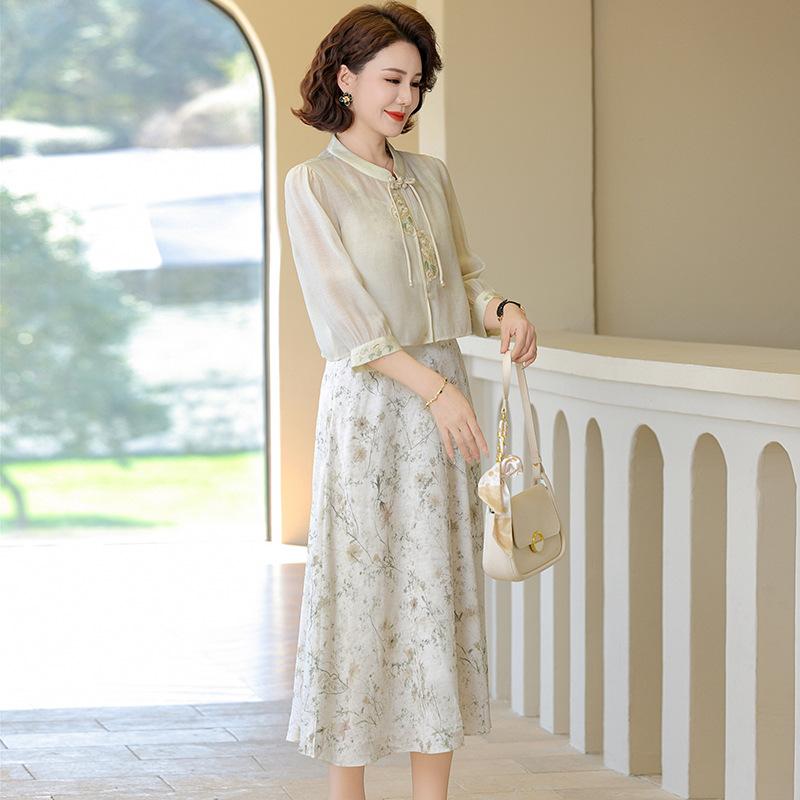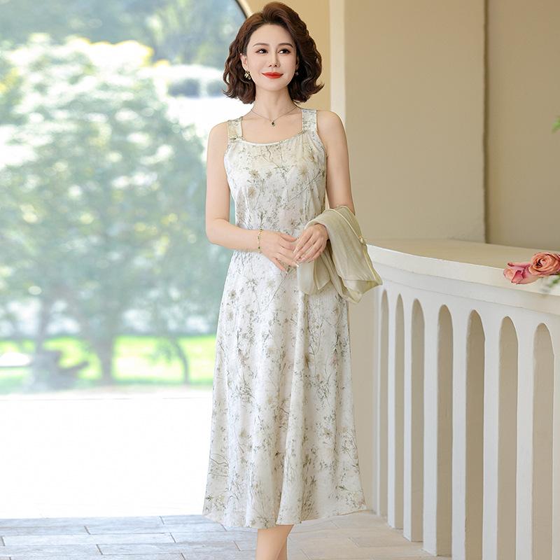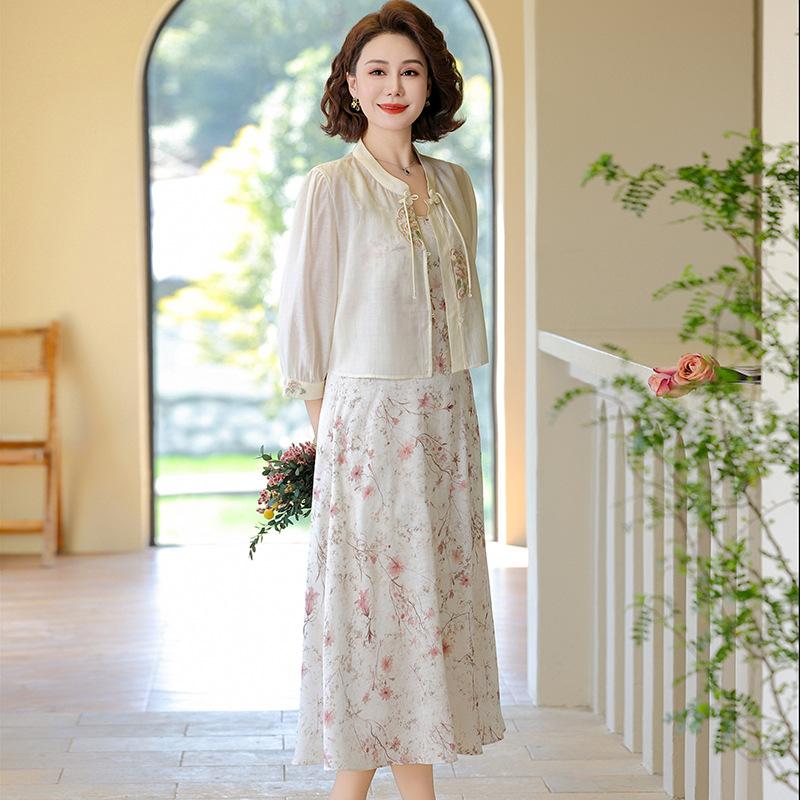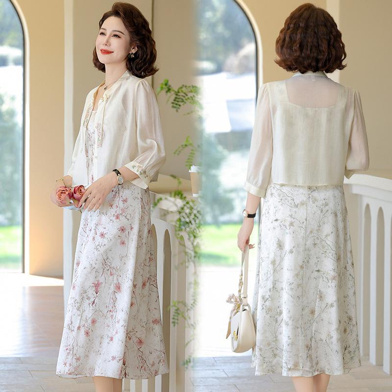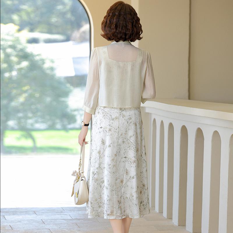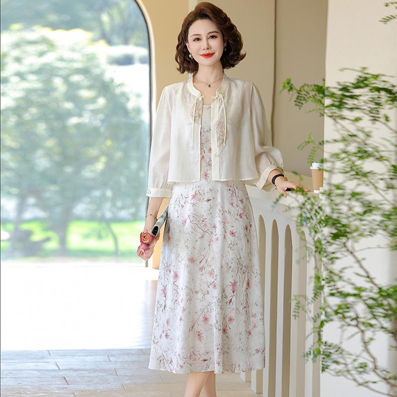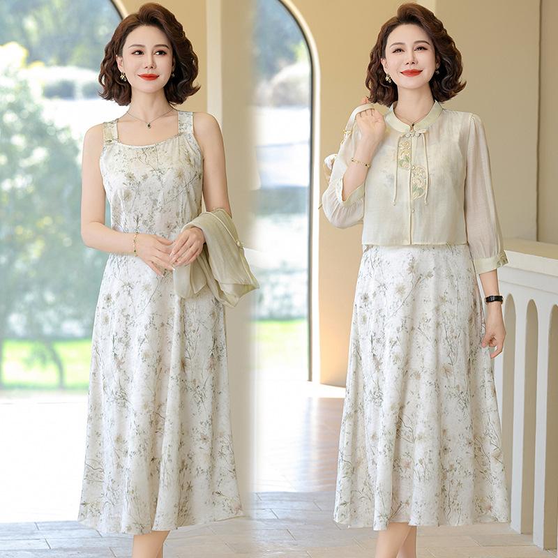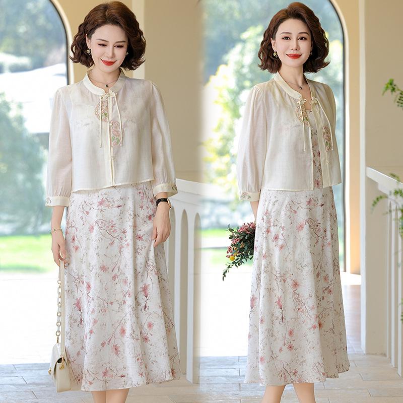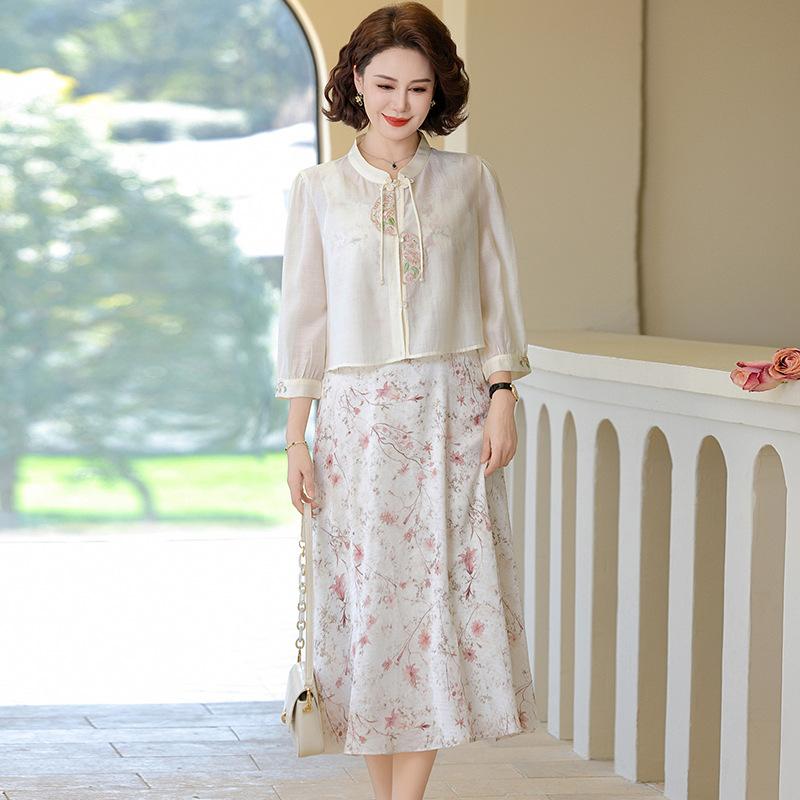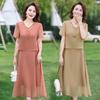 Nuevo vestido de gasa para madre verano ropa de mujer para mujeres de mediana edad y mayores de 40 a 60 años falda de dos piezas