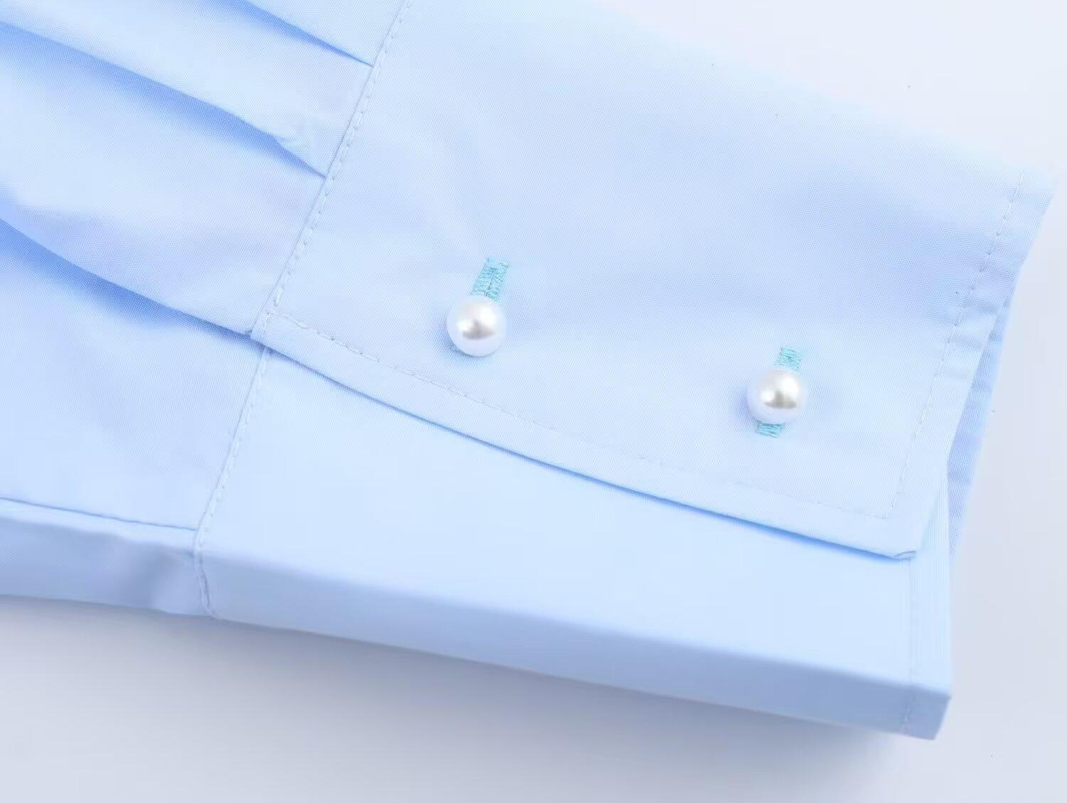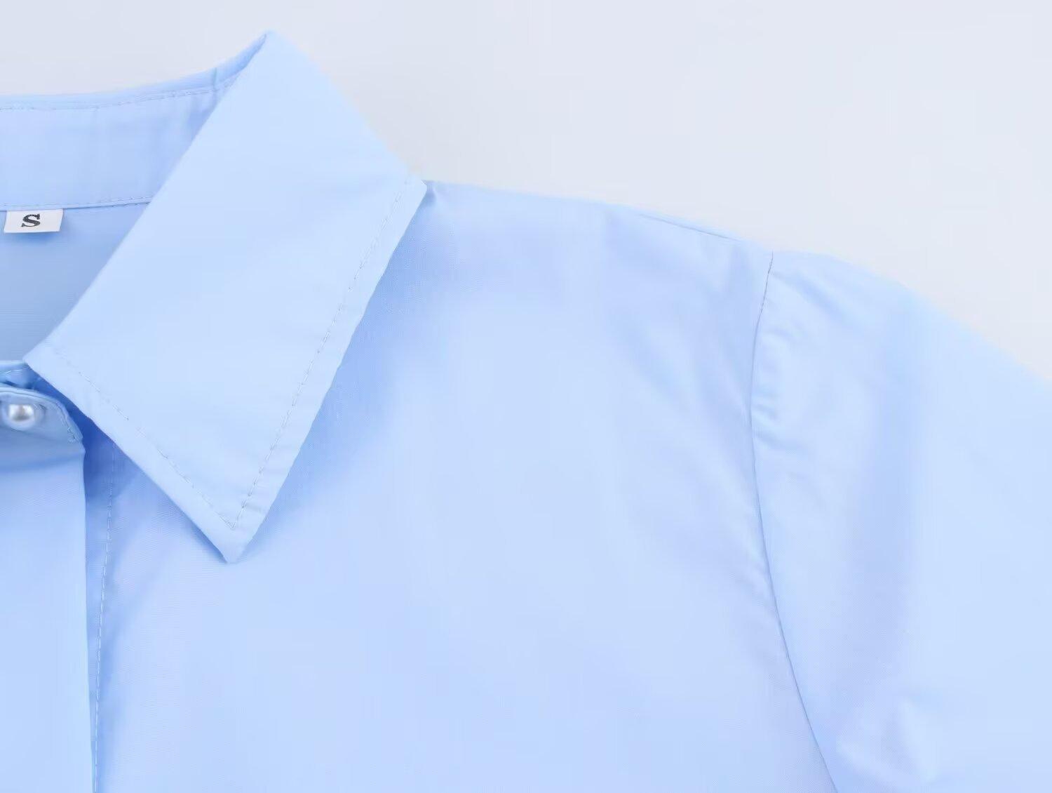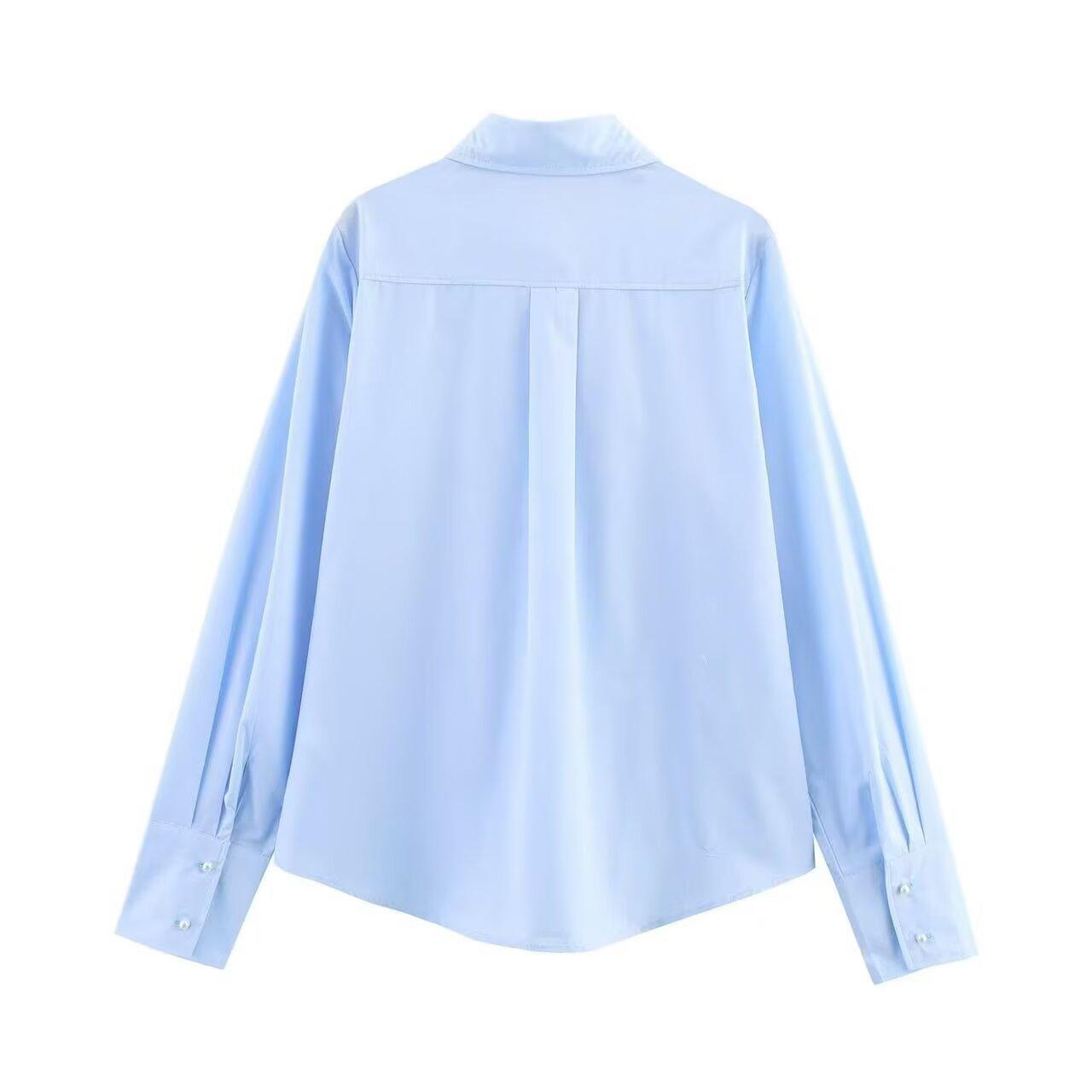 Comercio Exterior Ropa Europea y Americana al por Mayor 2025 Verano Nuevo Estilo Camisa Casual Sencilla y a la Moda Decorada con Lazo de Perla Artificial