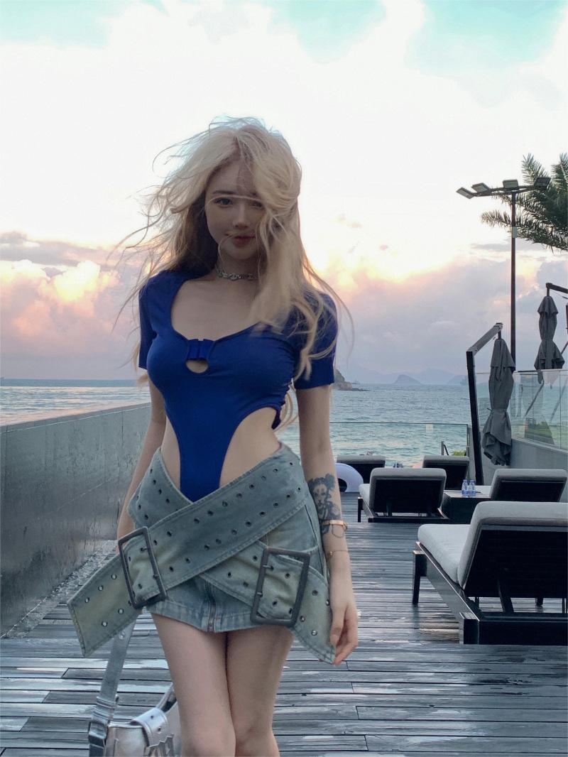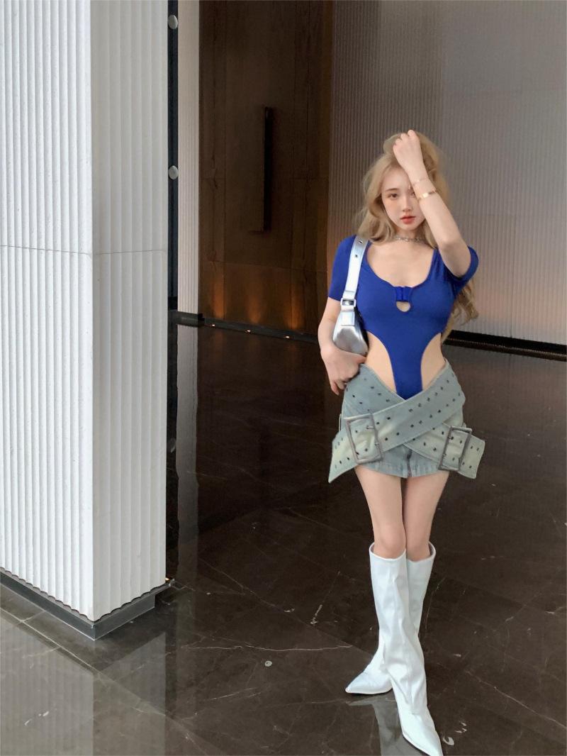 Ropa de mujer estilo europeo y americano verano nueva moda sexy cintura calado corte ajustado manga corta mono de mujer venta al por mayor hot