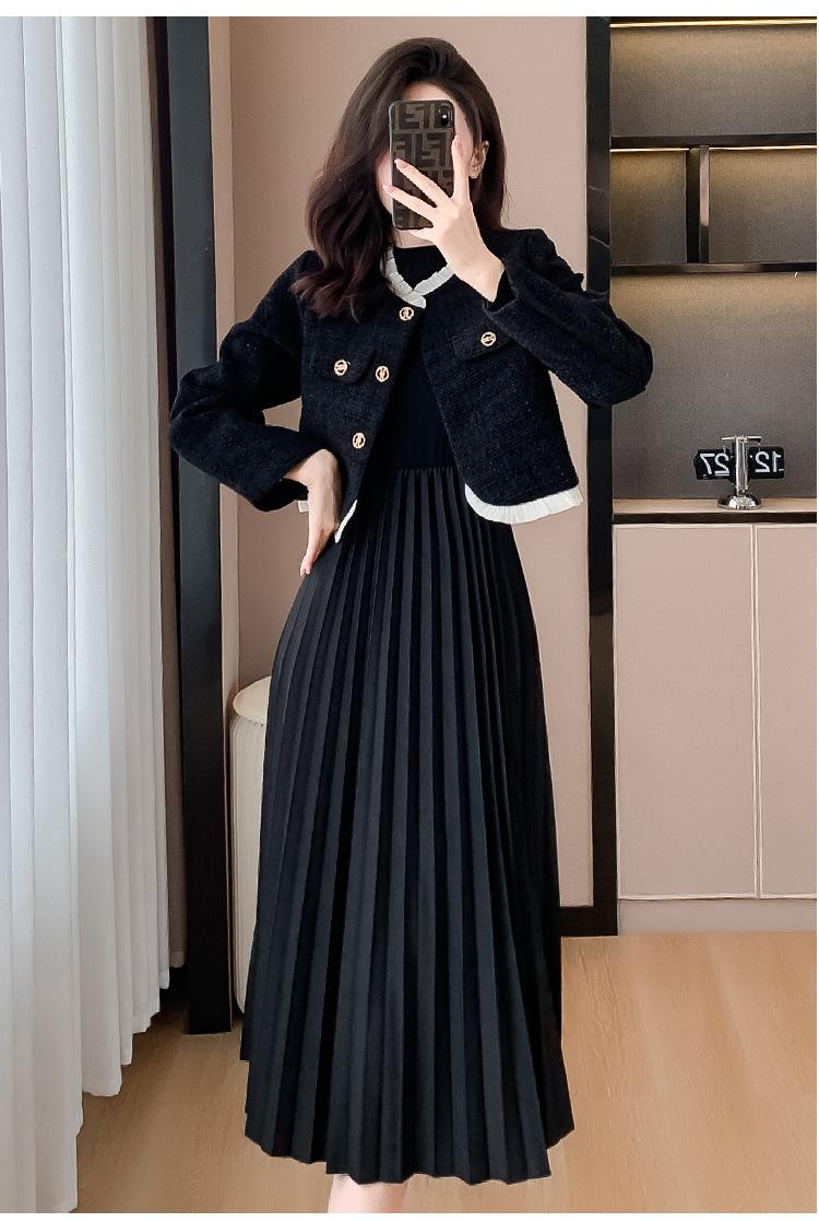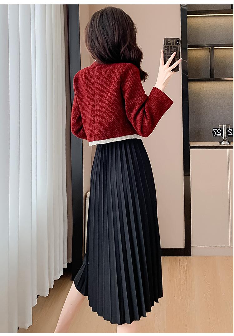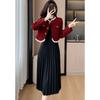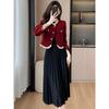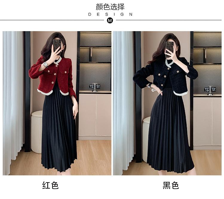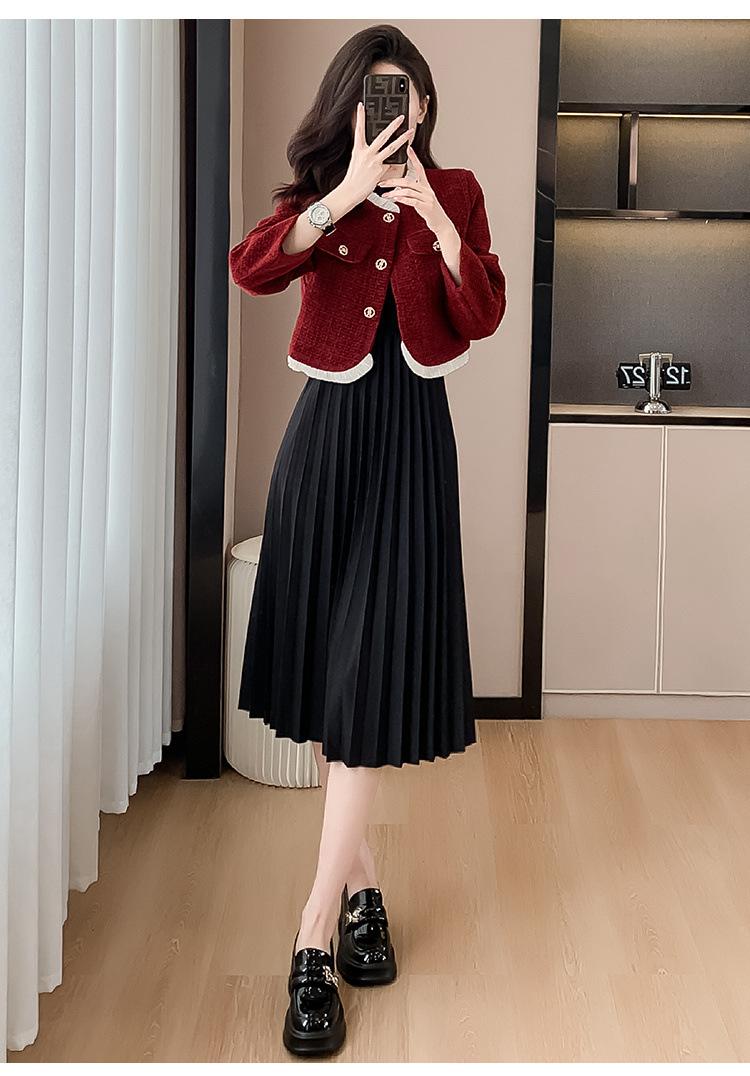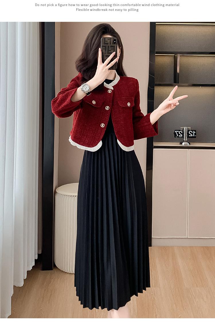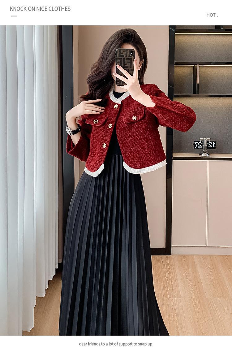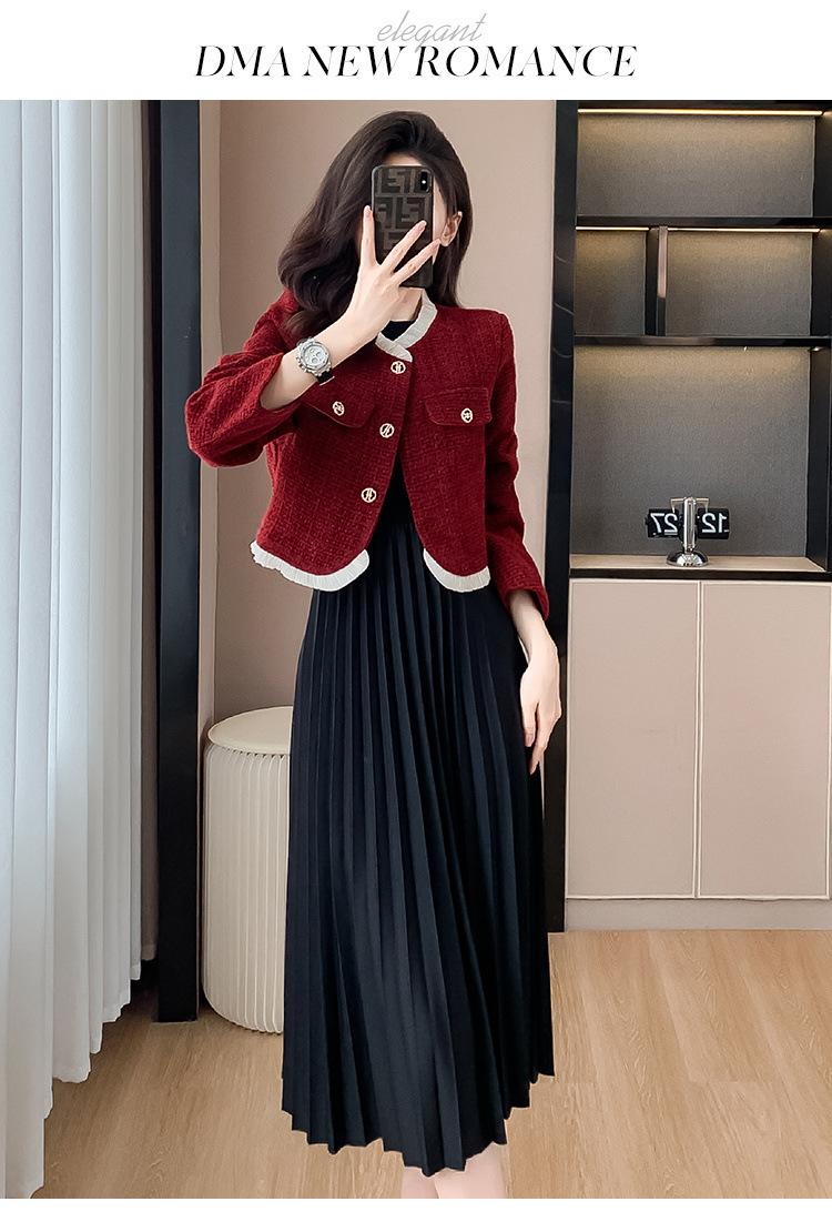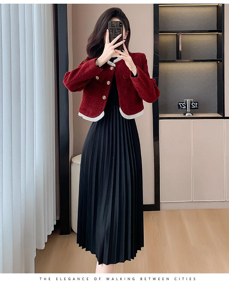 Burgundy [xiaoxiangfeng jacket], Black [xiaoxiangfeng jacket], Black [pleated dress], Burgundy [jacket + pleat...