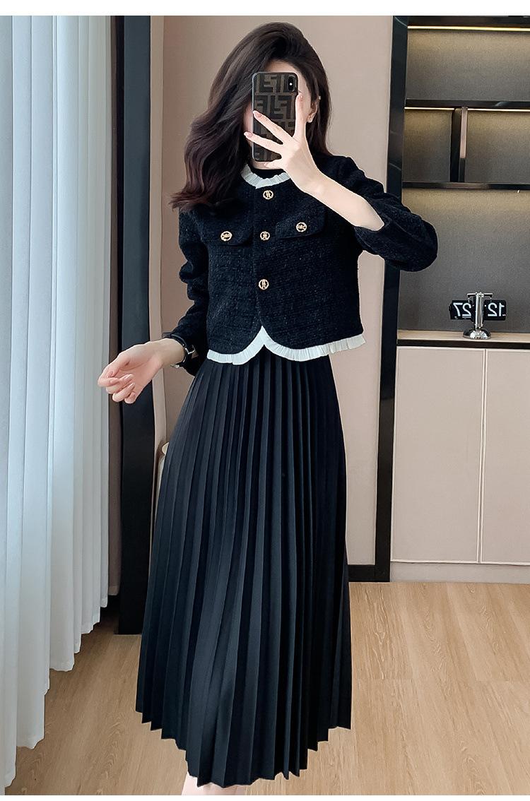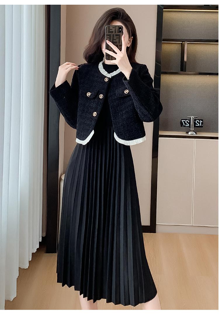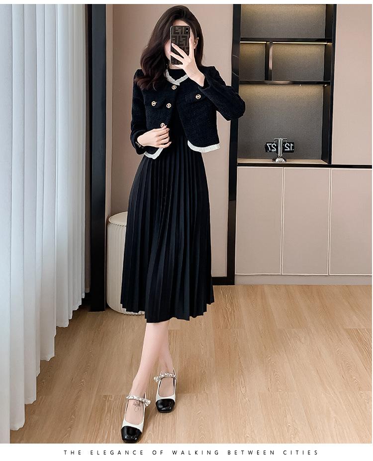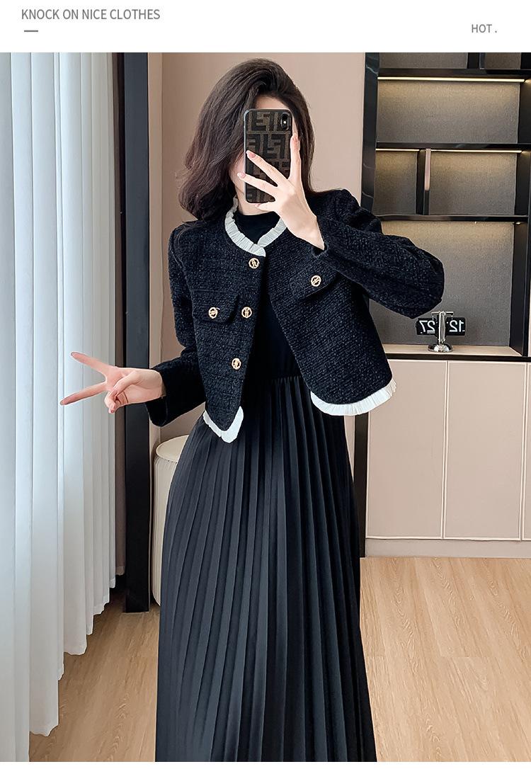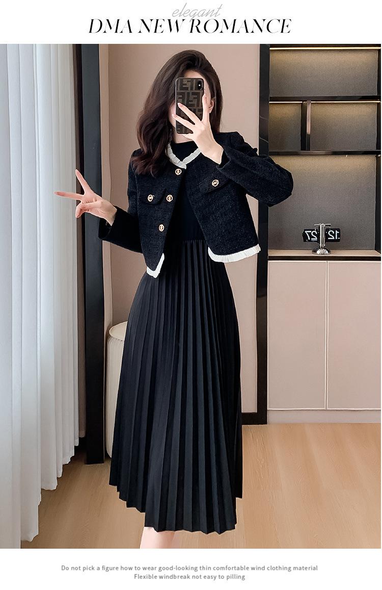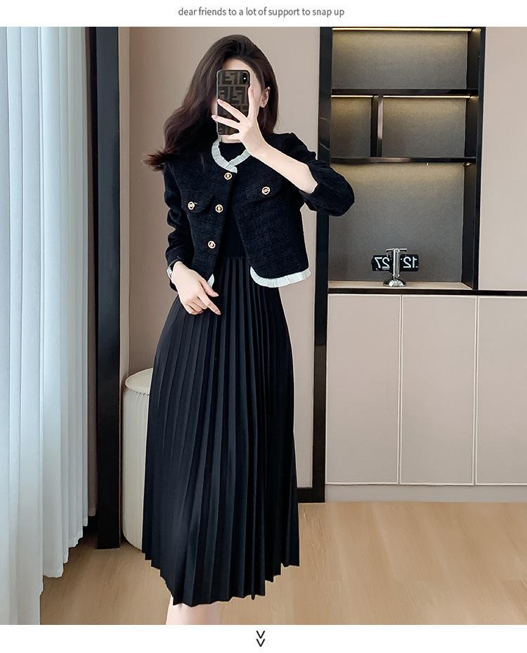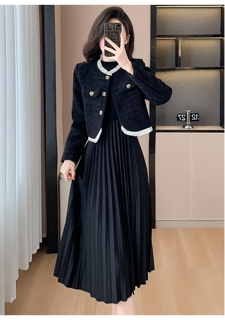 Burgundy [xiaoxiangfeng jacket], Black [xiaoxiangfeng jacket], Black [pleated dress], Burgundy [jacket + pleat...
