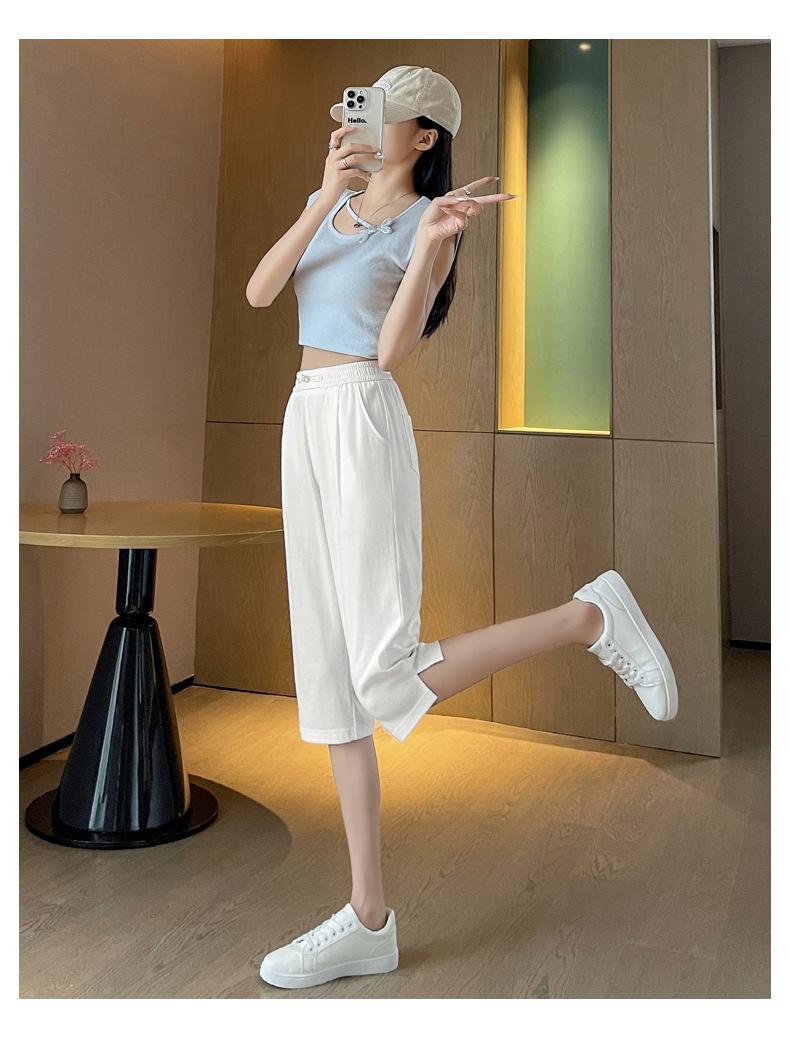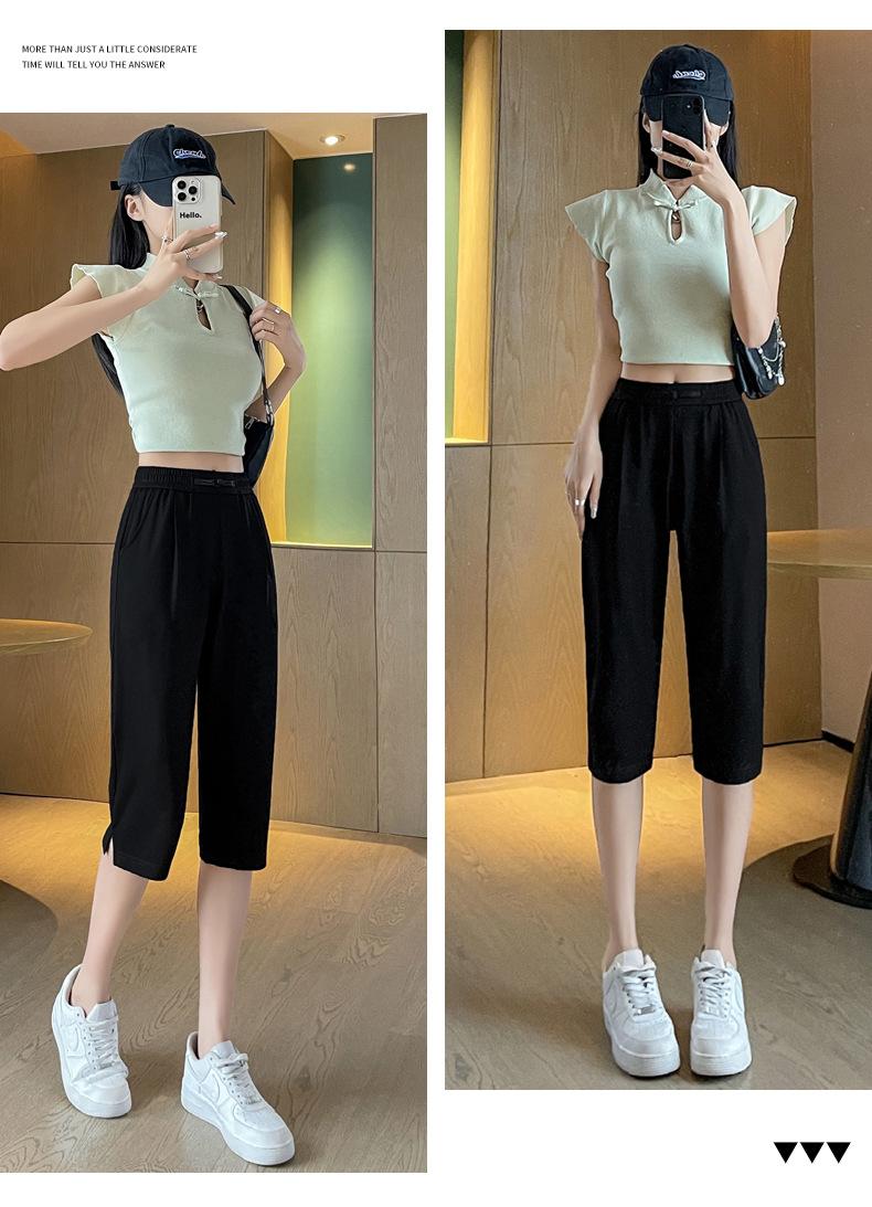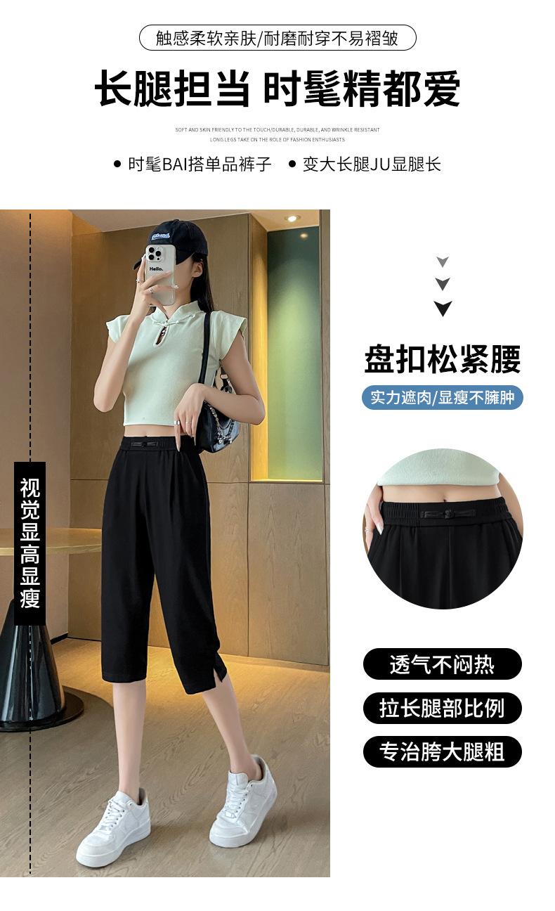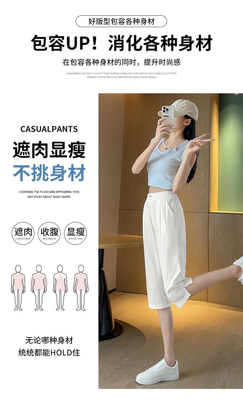 Pantalones Cortos de Seda Helada Transfronterizos para Mujer, Estilo Delgado de Verano 2025 Nuevo Petite Recto Drapeado Harem Casual Pierna Ancha