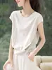 Diseño Casual Adelgazante de Cintura Camiseta Jersey de Cuello Redondo 2025 Verano Nuevo Estilo Sencillo e Intelectual Camiseta con Abertura Trasera
