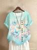 2025Temu Verano Nuevo Transfronterizo Camisa de Botones con Estampado de Mariposas y Cuello Redondo para Mujer