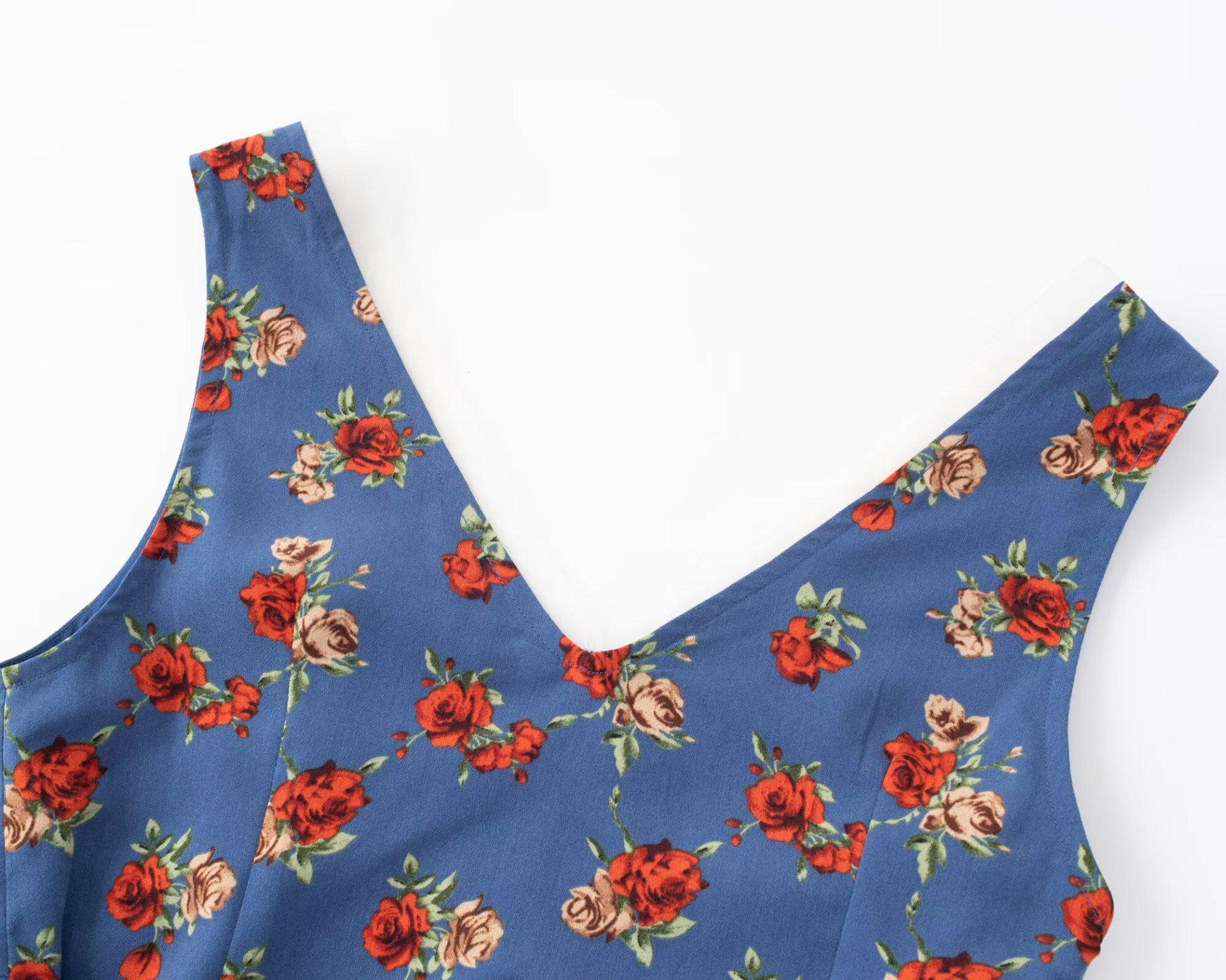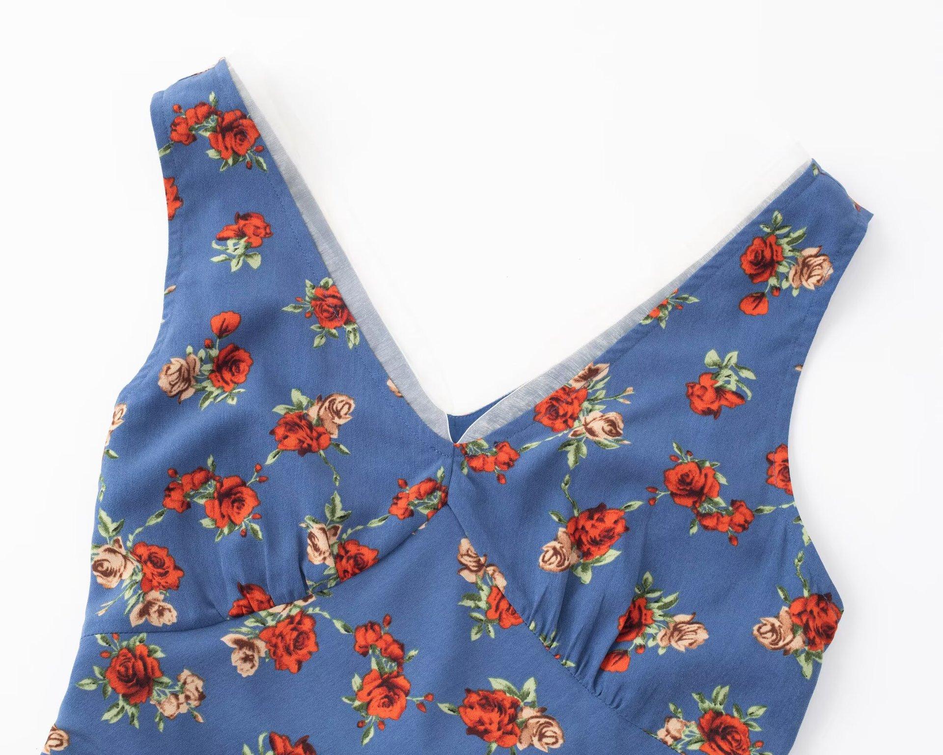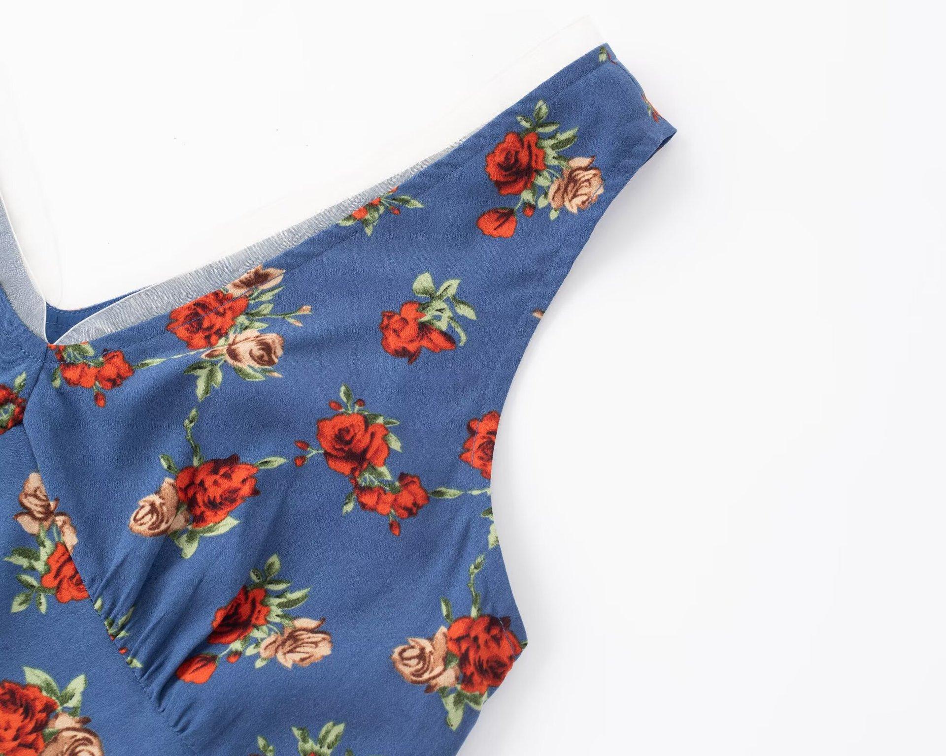 25148-Vestido Sexy Sexy sin Mangas Estilo Europeo y Americano para Mujer 2025 Nuevo Cuello en V Floral Ajustado Falda de Cadera