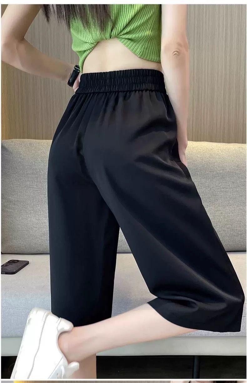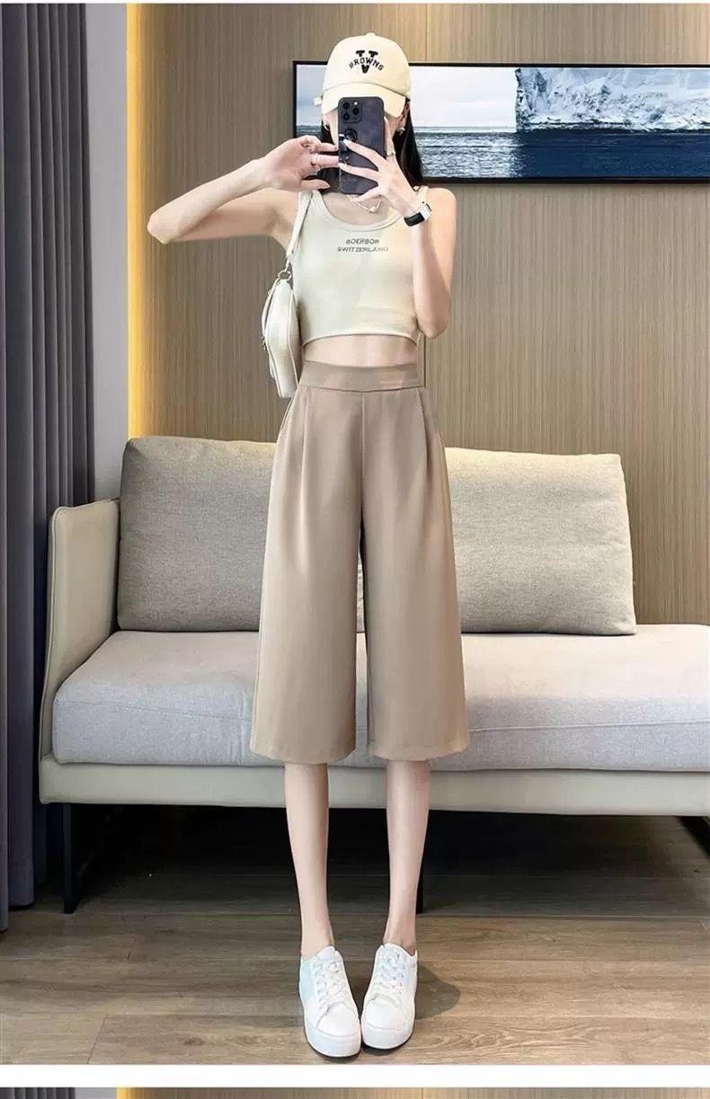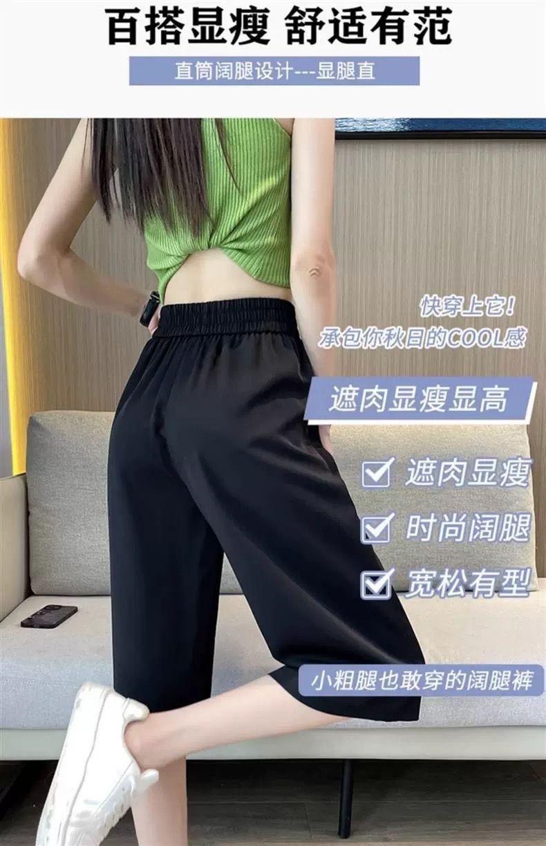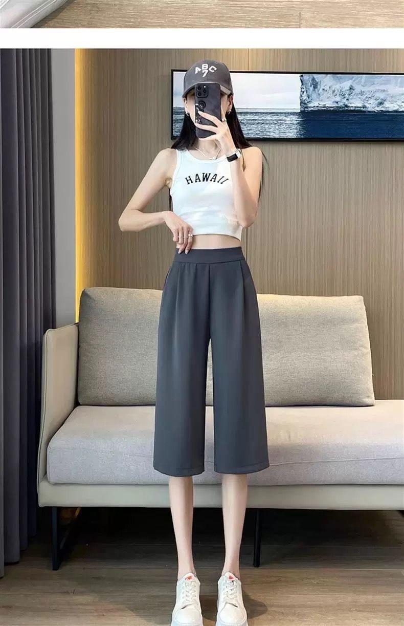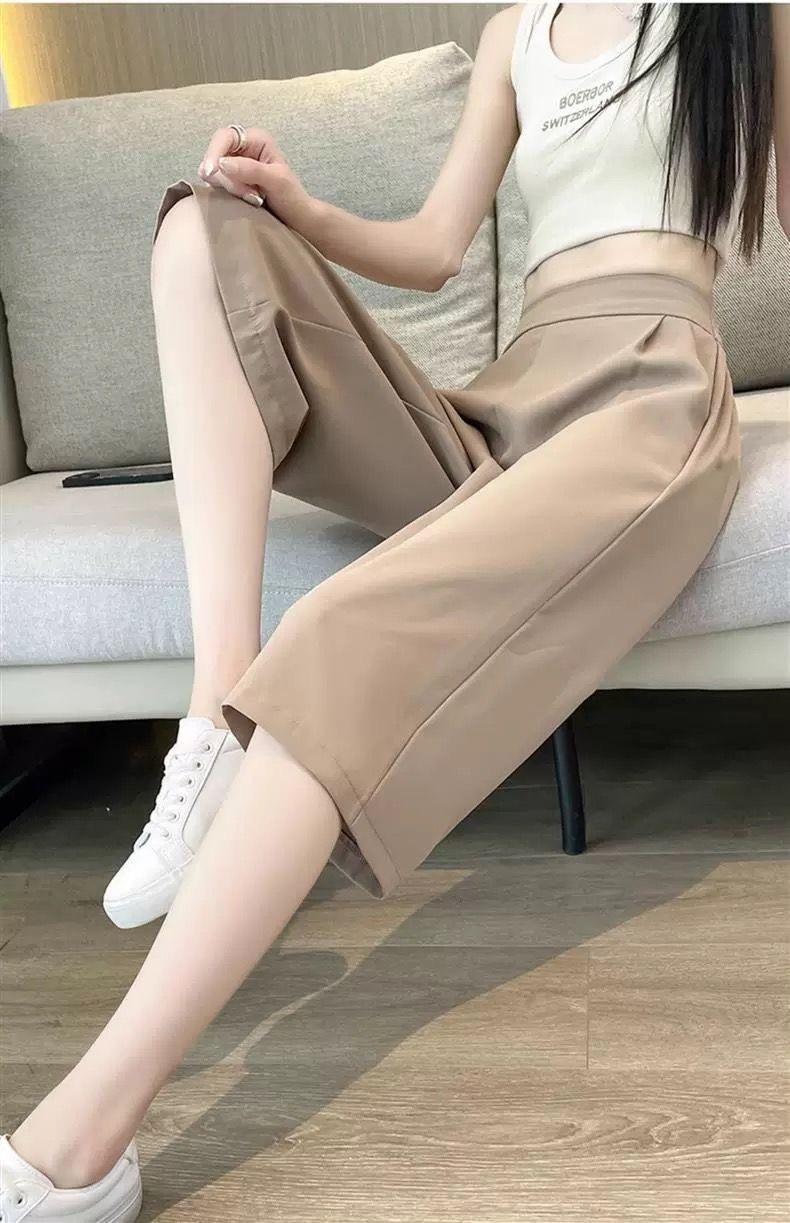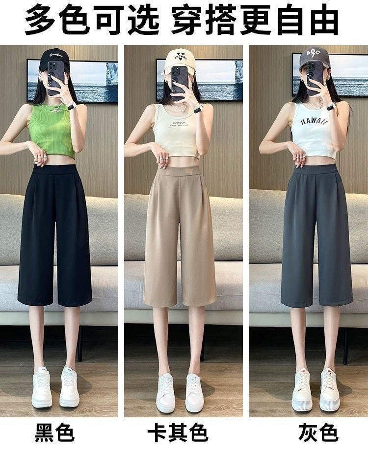 Traje de Seda de Hielo Pantalones Capri para Mujer Verano Delgados 2024 Nuevo Cintura Alta Frescos Pantalones de Pierna Ancha Sueltos Casuales Rectos