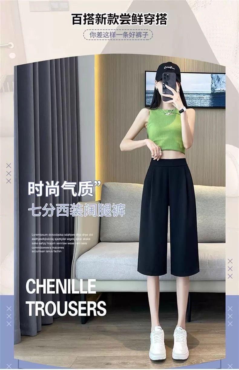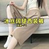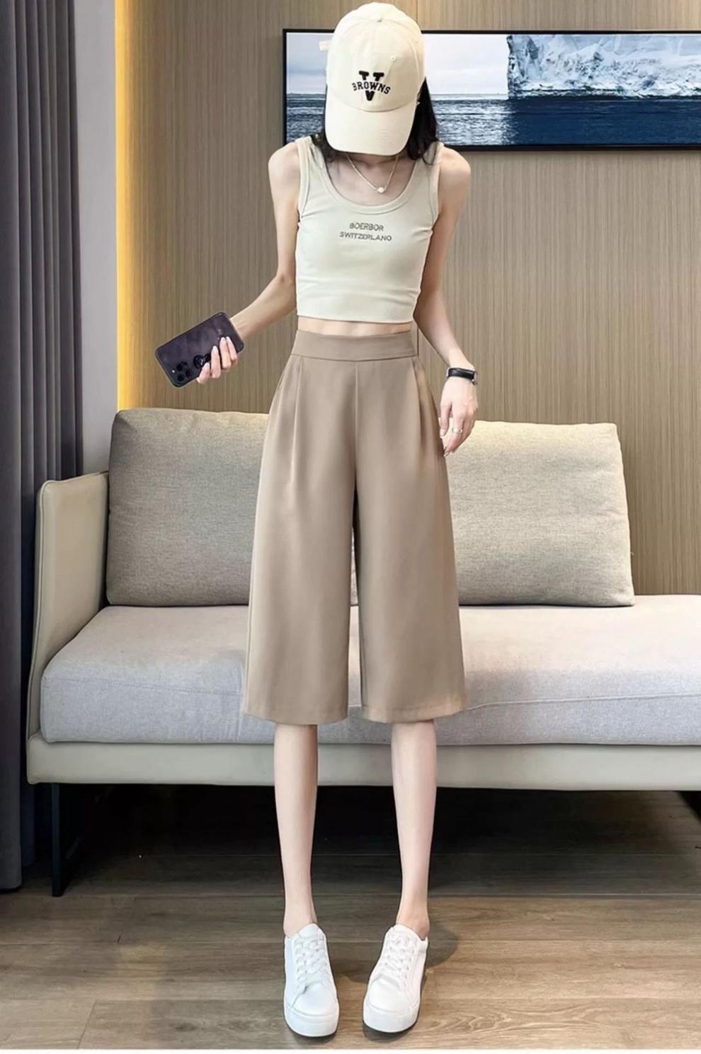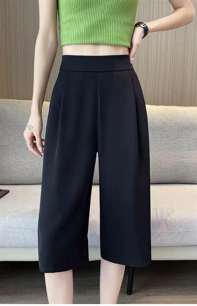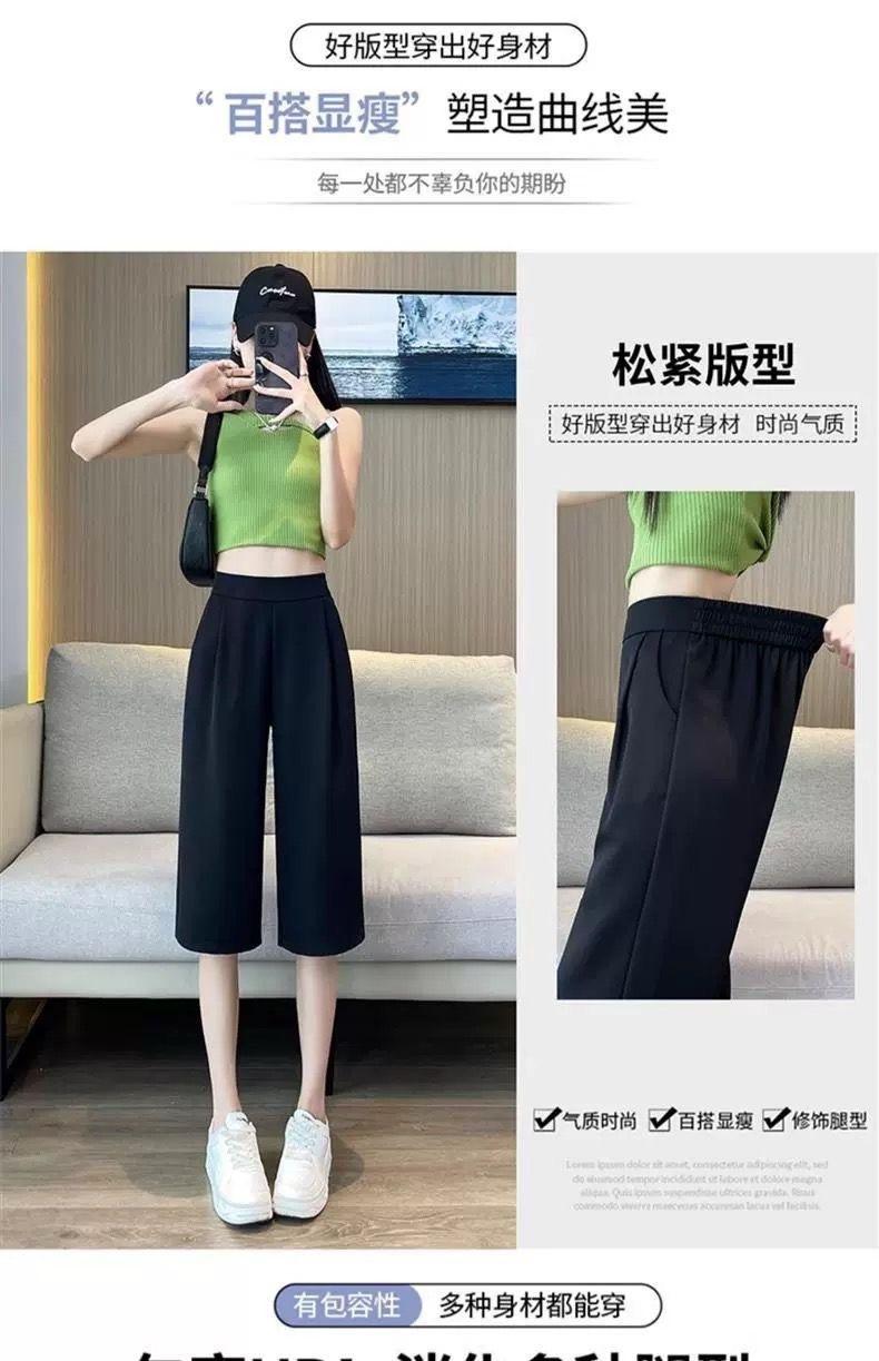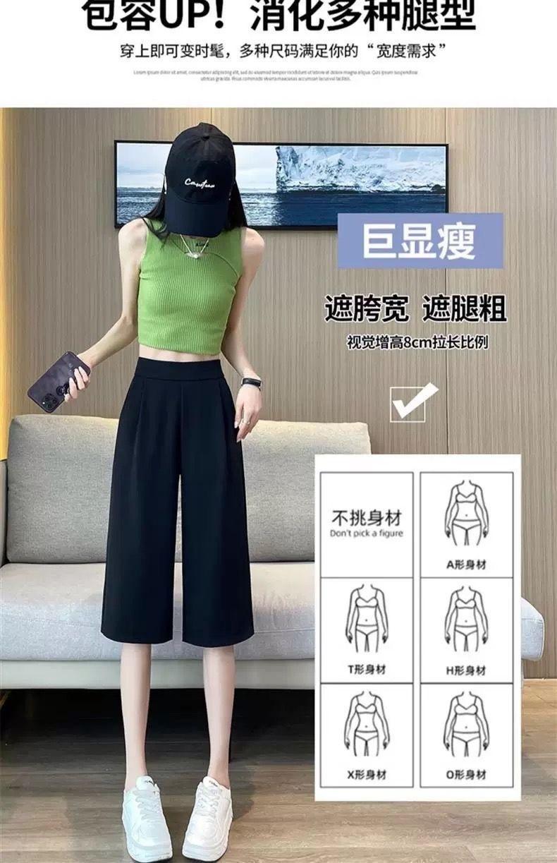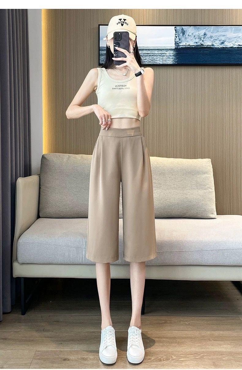 Traje de Seda de Hielo Pantalones Capri para Mujer Verano Delgados 2024 Nuevo Cintura Alta Frescos Pantalones de Pierna Ancha Sueltos Casuales Rectos