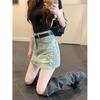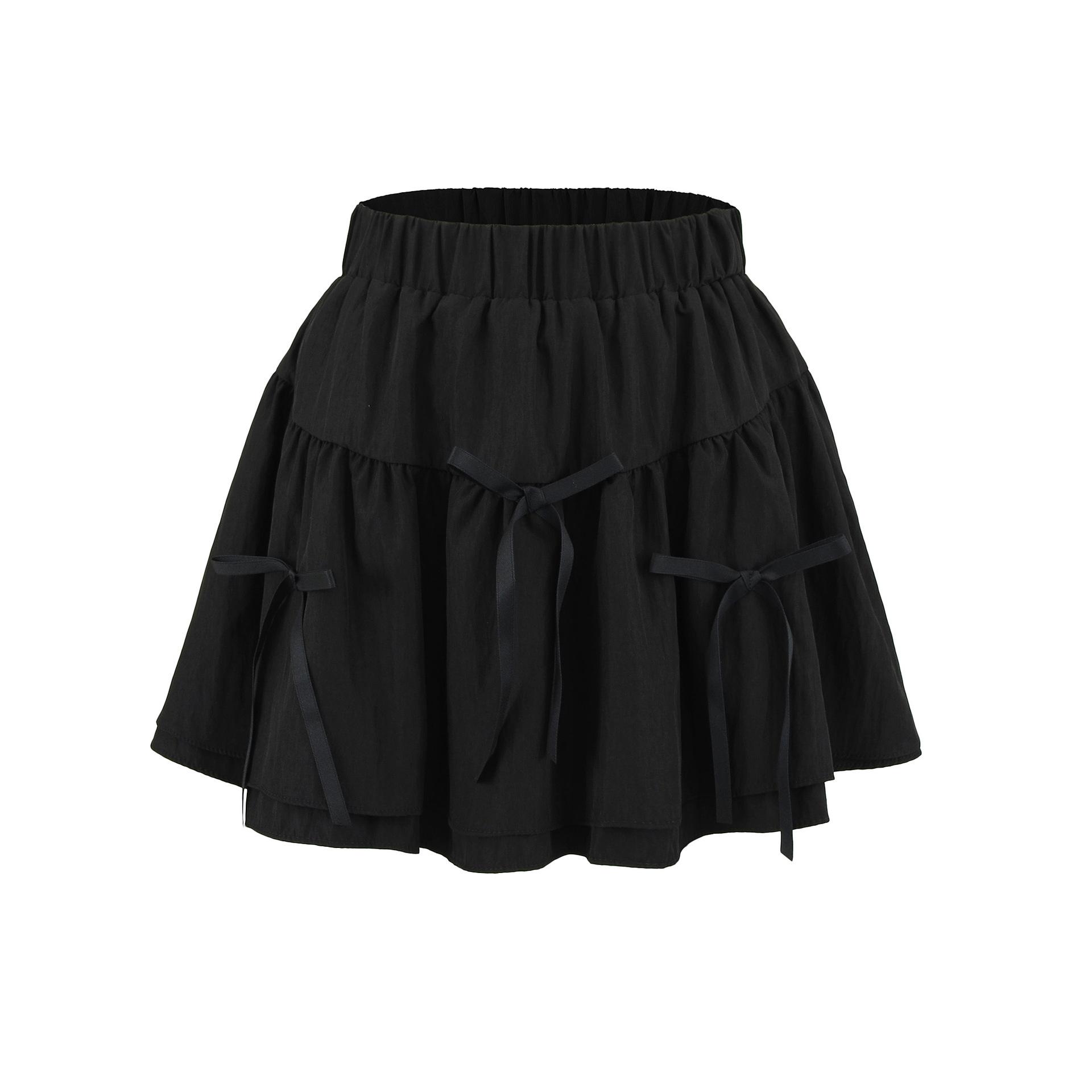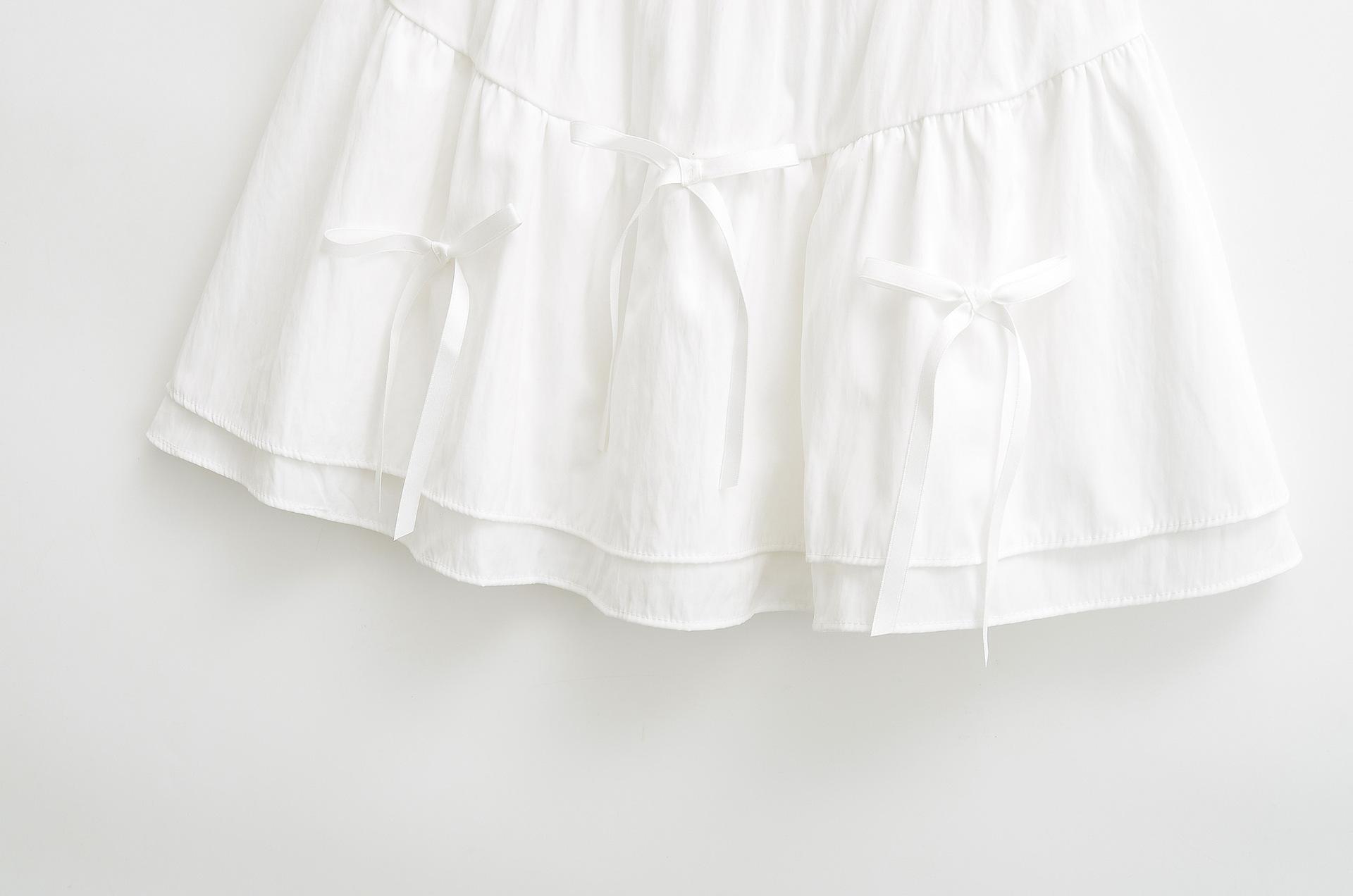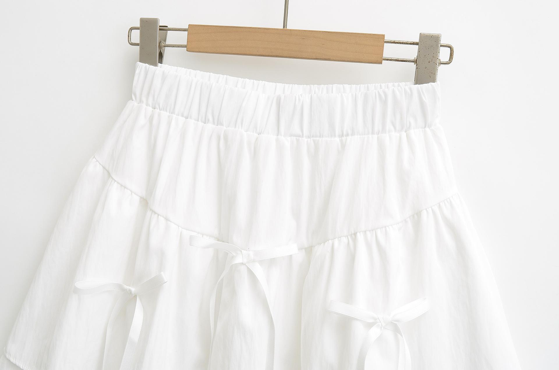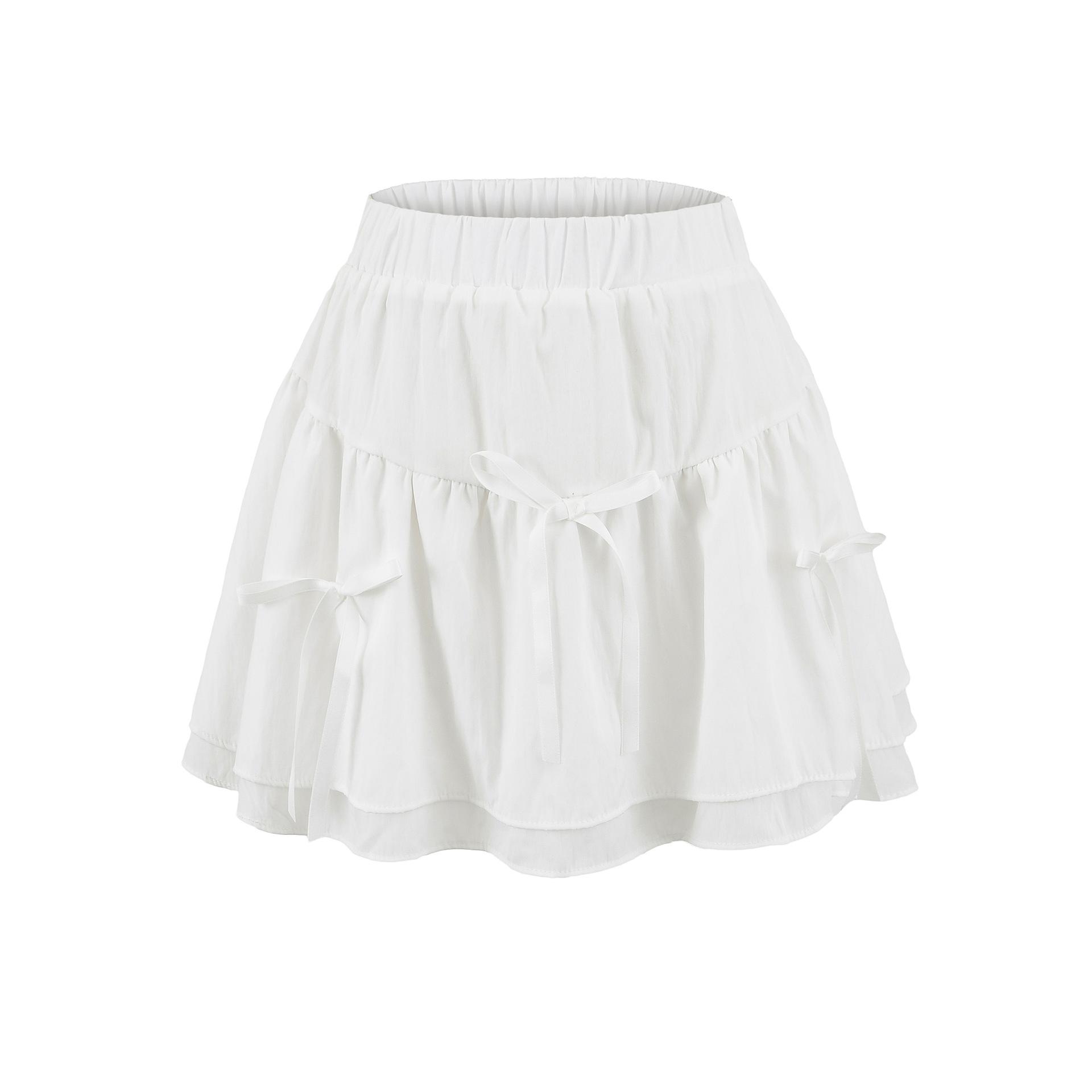 Falda Blanca Corta con Lazo Empalmado 2025 Primavera y Verano Nueva Cintura Elástica Dulce Petite Falda Esponjosa