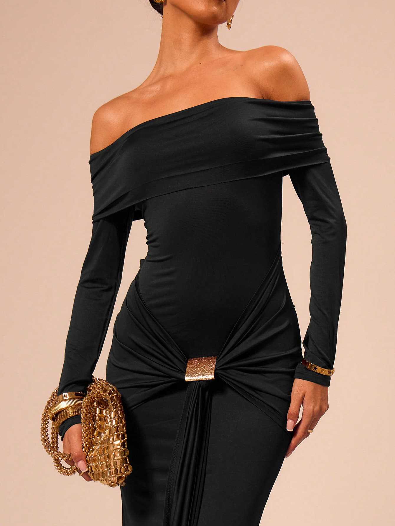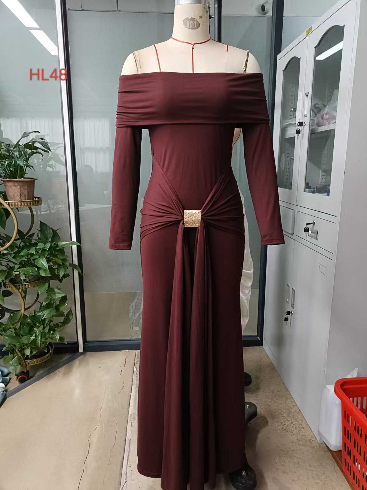 Nuevo Vestido Europeo y Americano Transfronterizo Sexy de Un Hombro Descubierto con Falda de Cola de Pez y Cinturón para Mujer