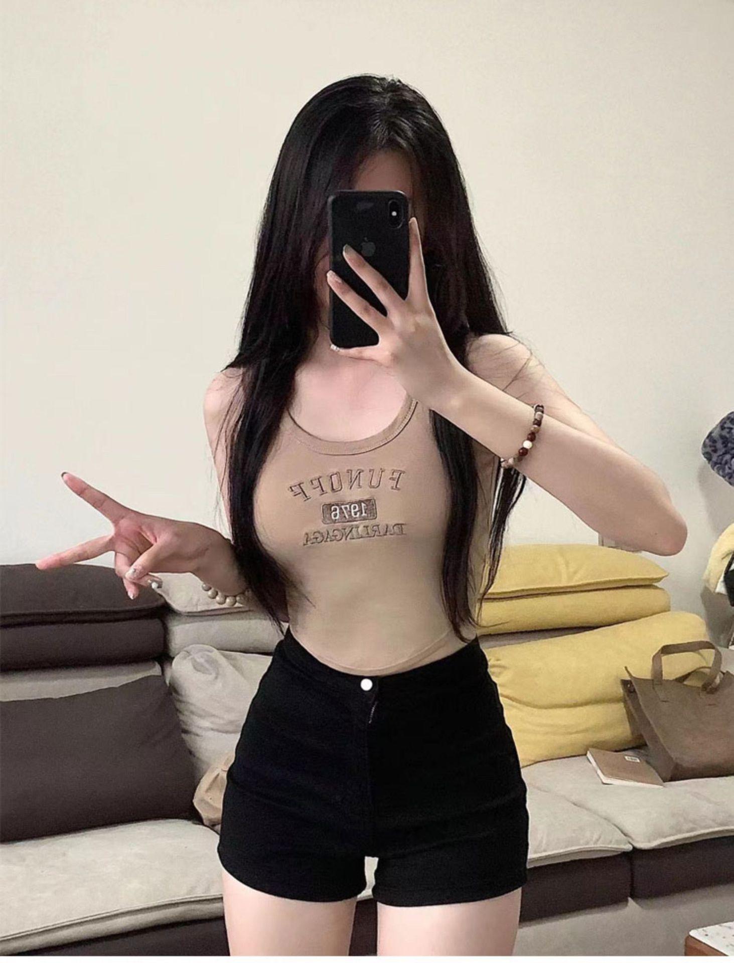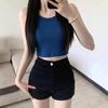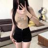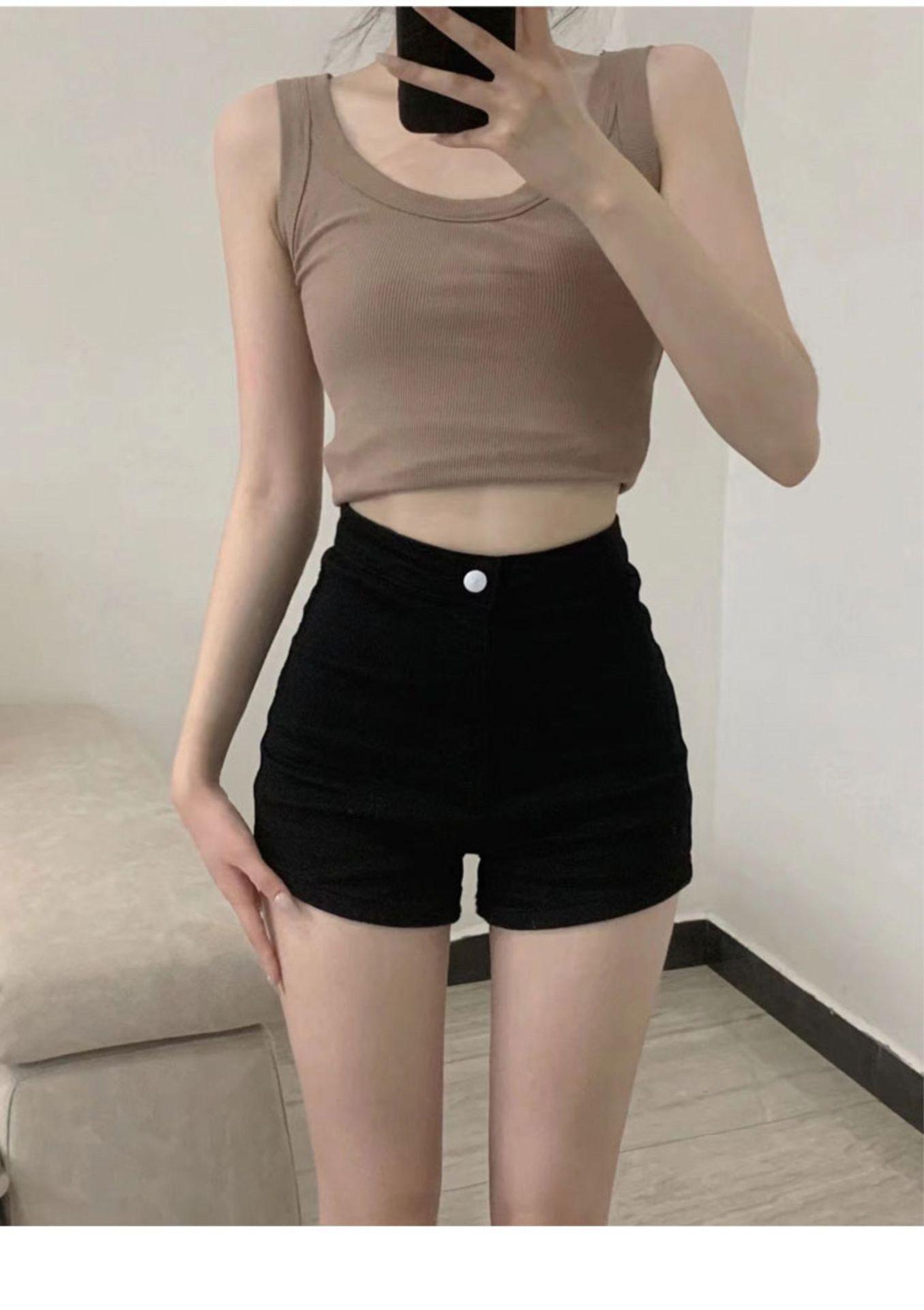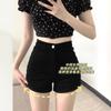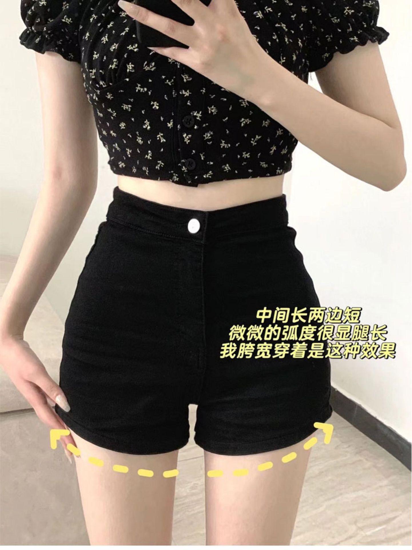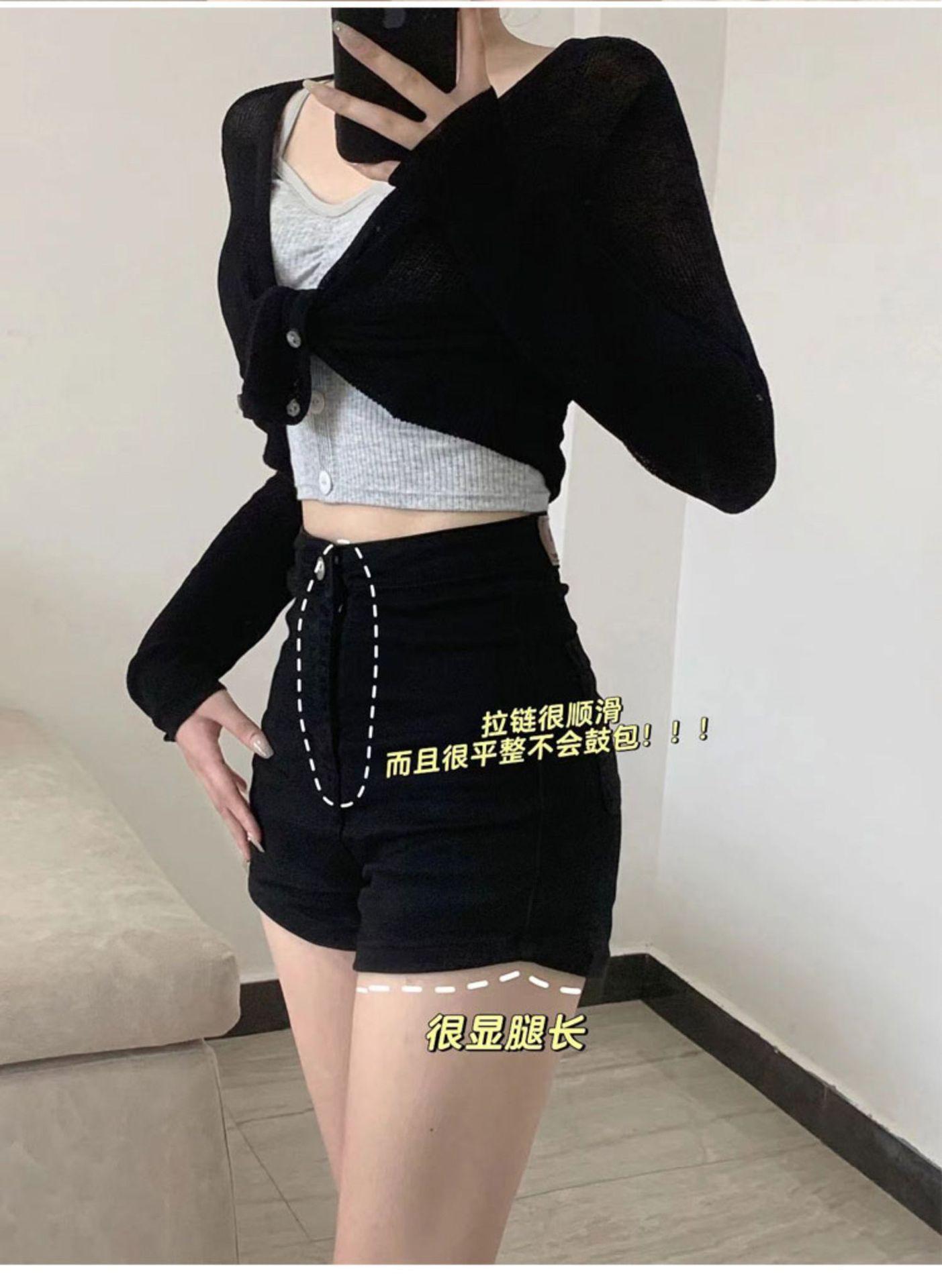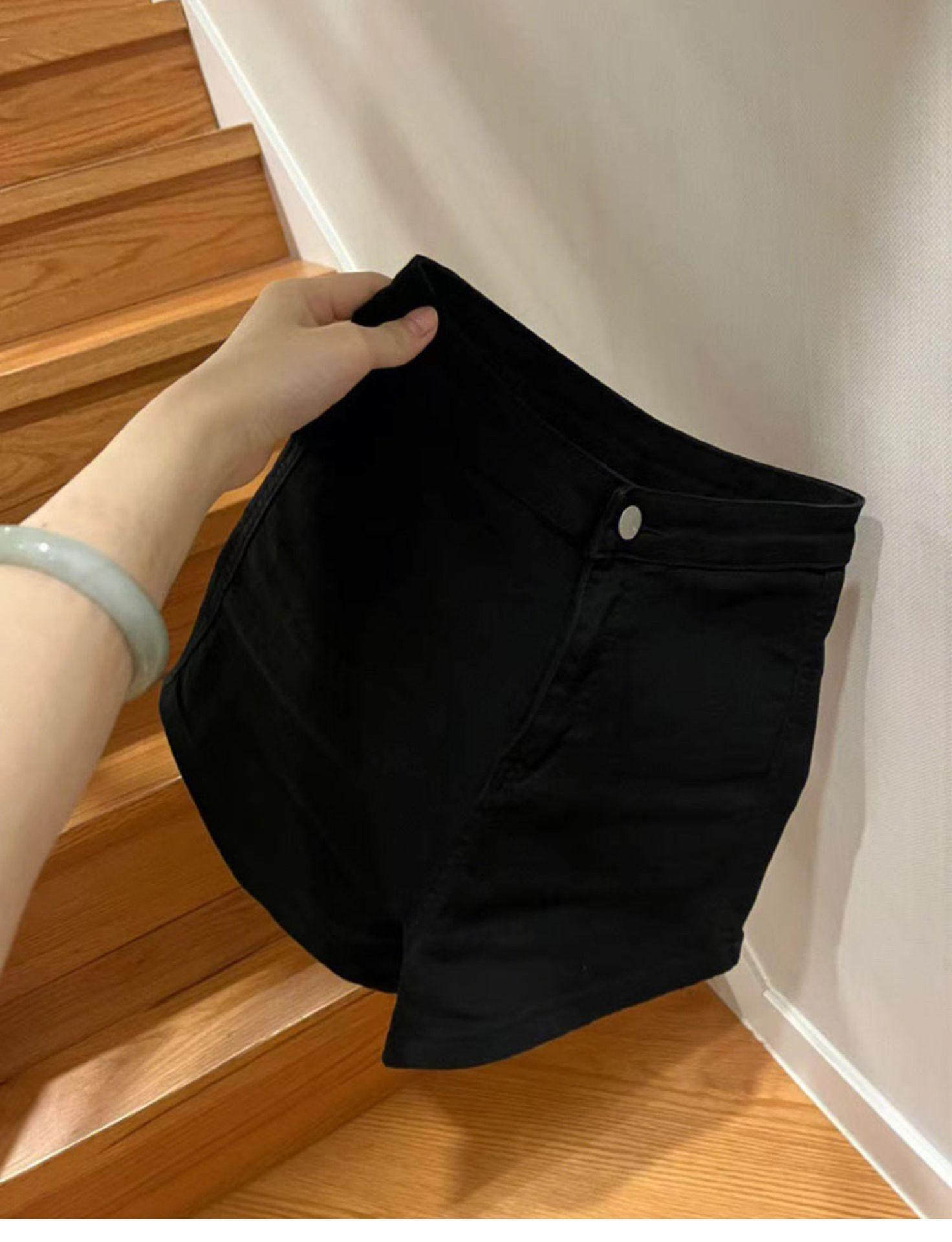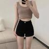 Shorts de Mezclilla Skinny Negros Petite para Mujer, Verano Cintura Alta Adelgazantes Hot Pants Línea A Estilo Americano