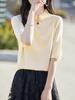 Primavera y Verano 25 Nuevo Estilo Chino Estilo Nacional Suéter de Punto Peinado Cuello Cheongsam Manga Media Tejido Jacquard Camisa Base