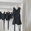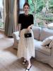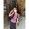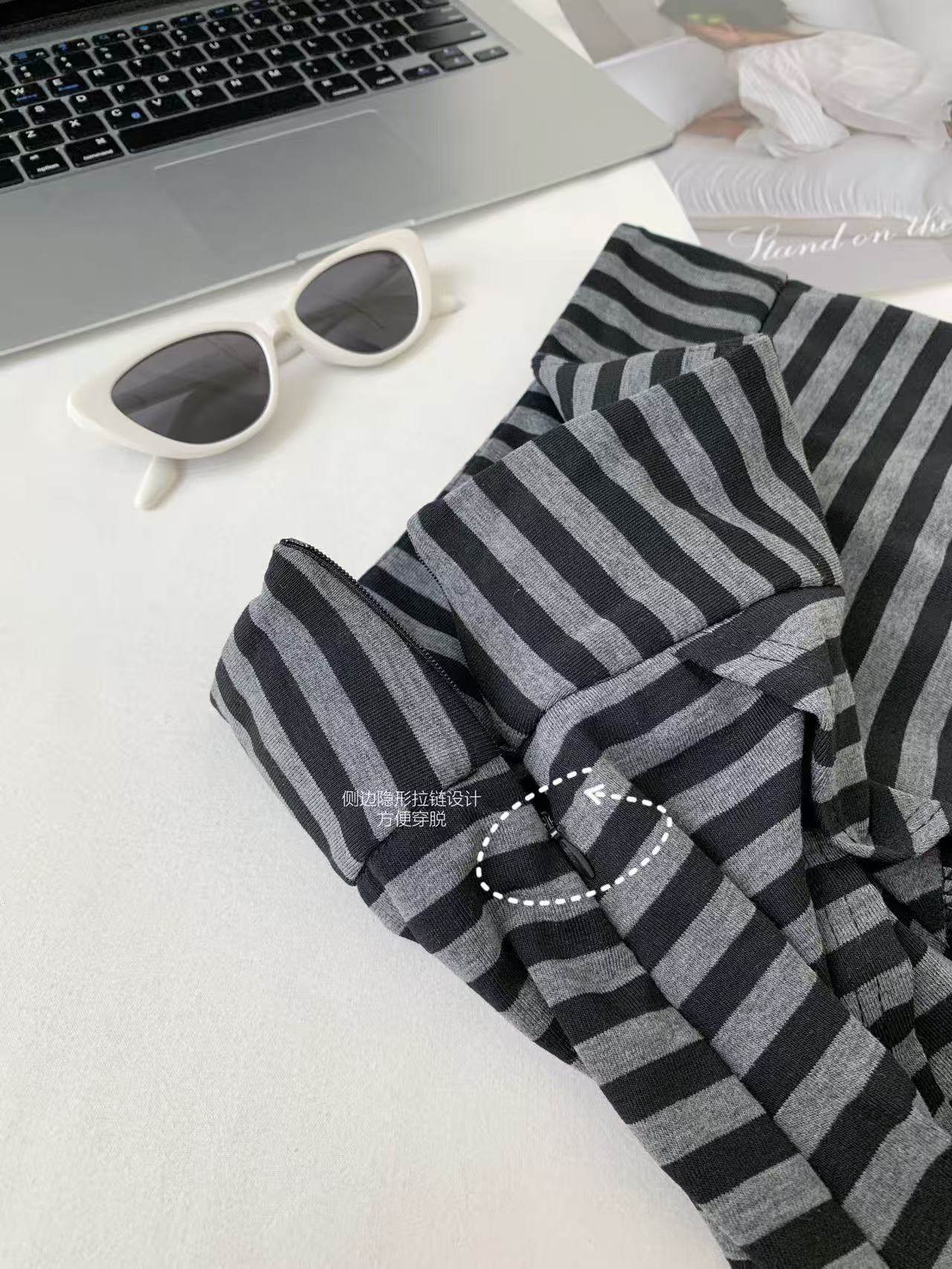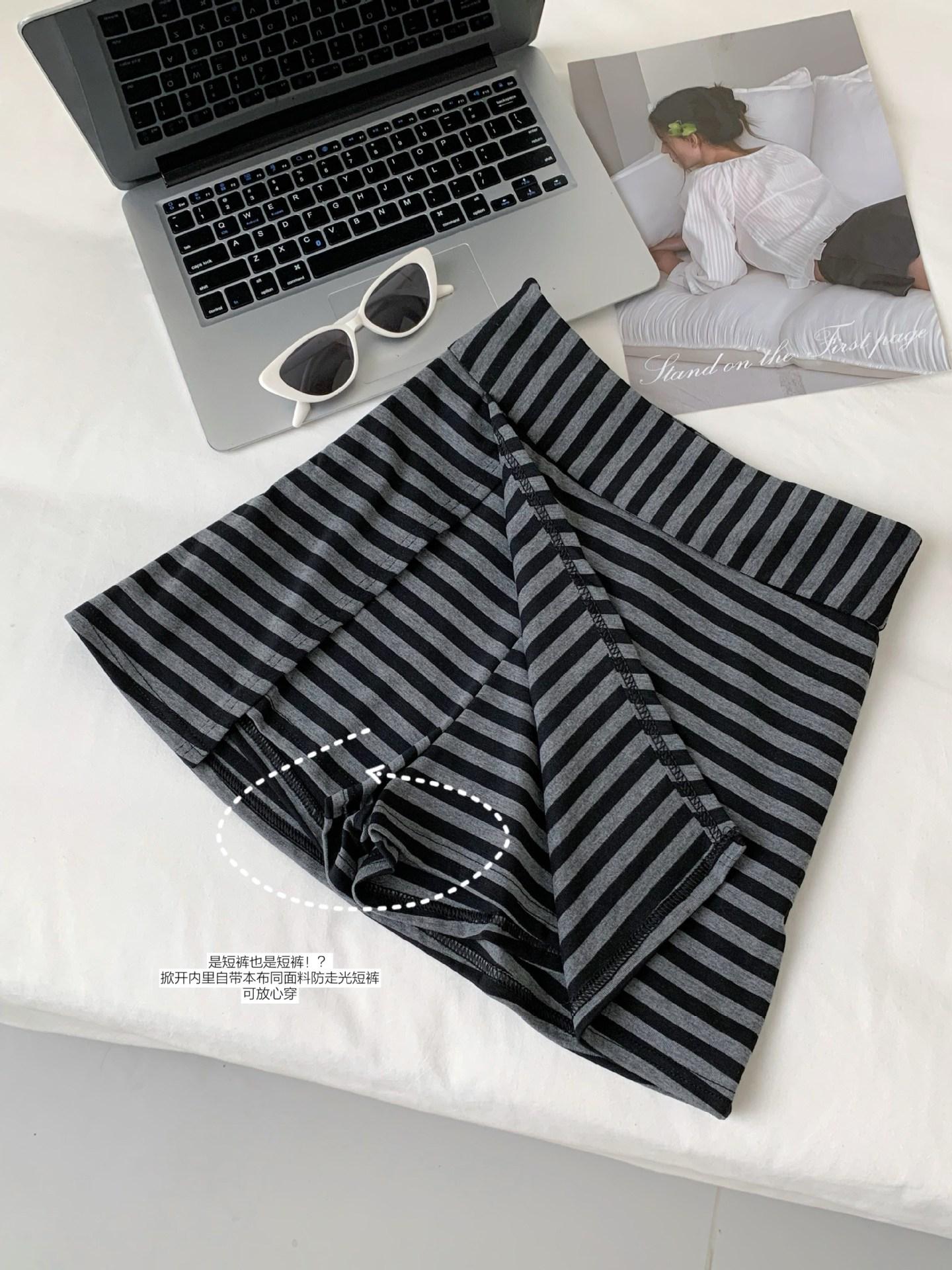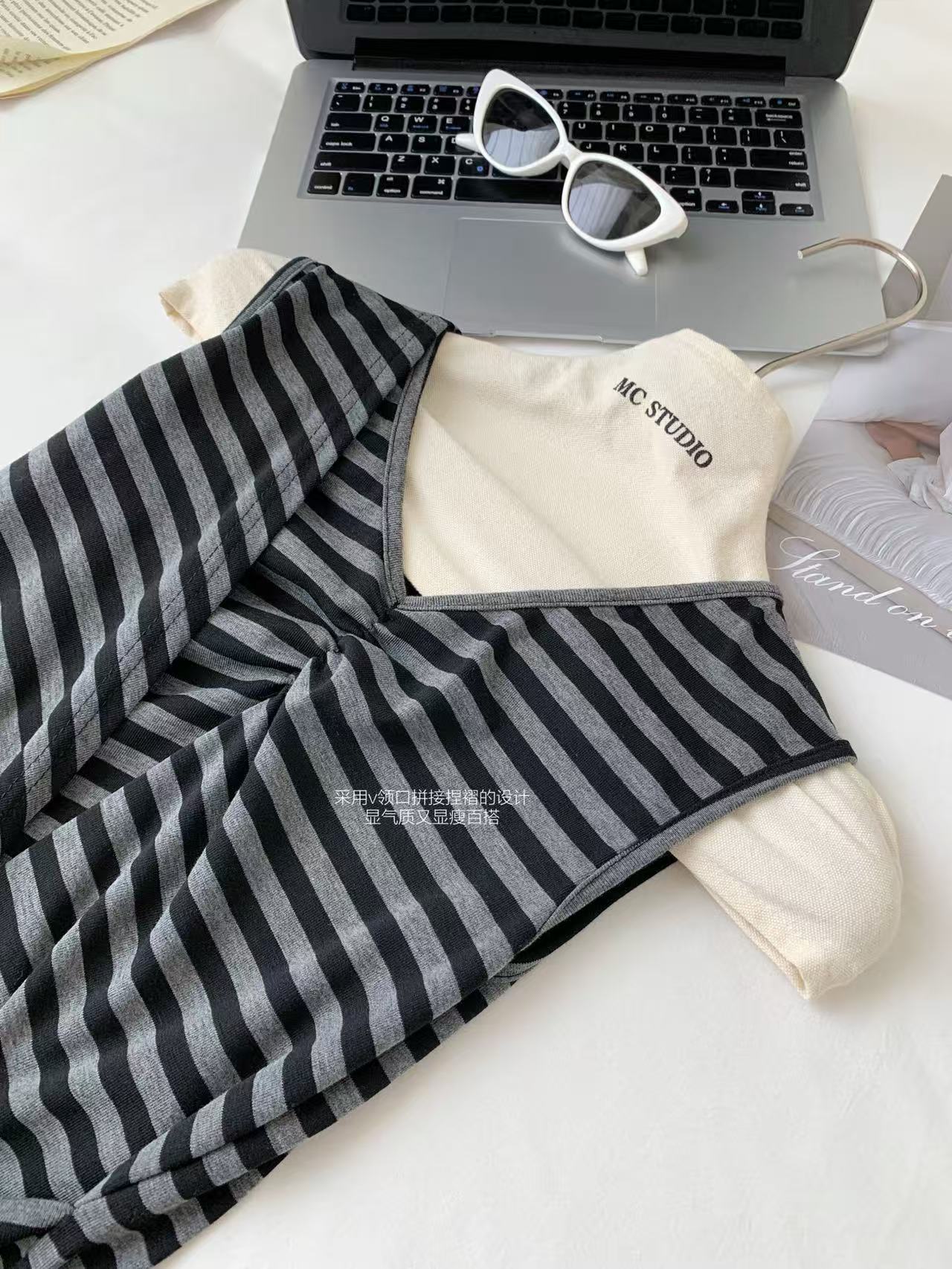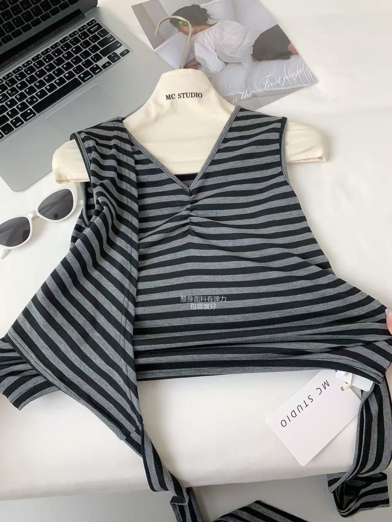 Conjunto de dos piezas de moda coreana para adelgazar con top sin mangas a rayas con cuello en V y lazo y falda de cintura alta para mujer