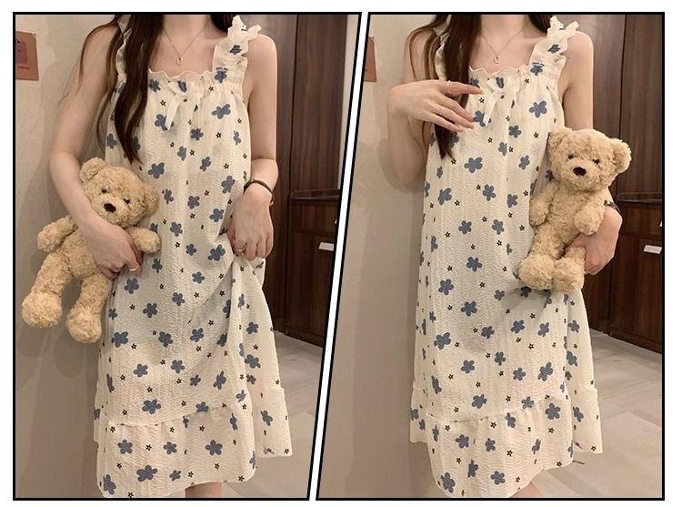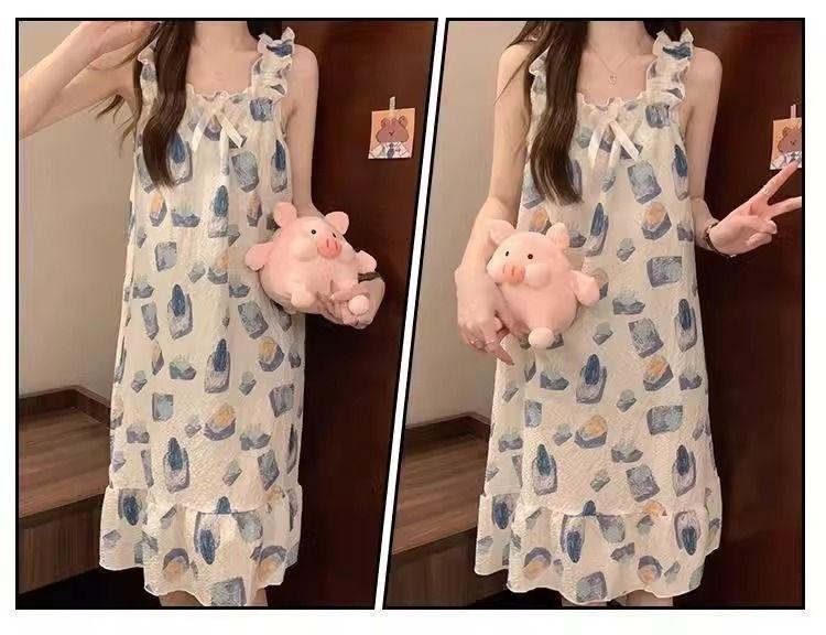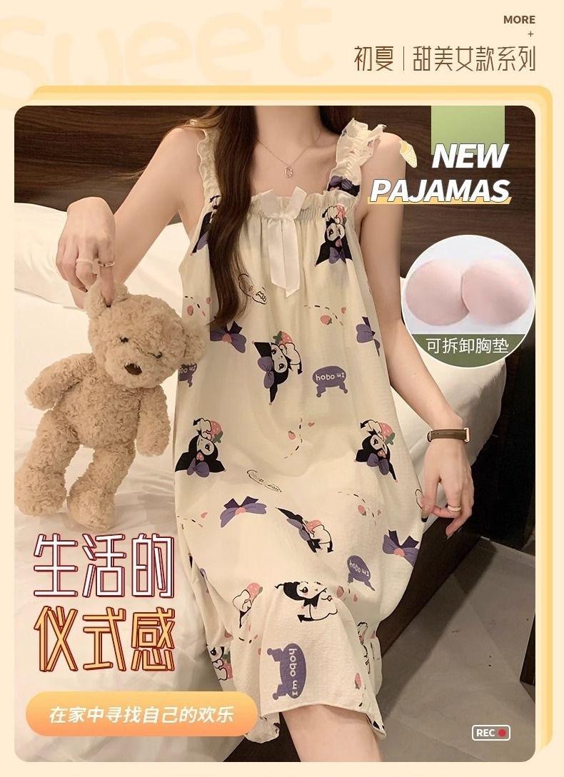 Pijamas de Verano de Dibujos Animados para Mujer, Verano Dulce, Ropa de Casa de Verano Holgada y Linda, Nuevo Estilo con Almohadillas de Pecho Removibles