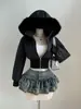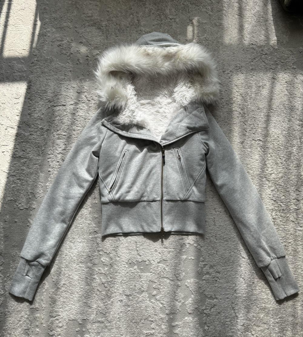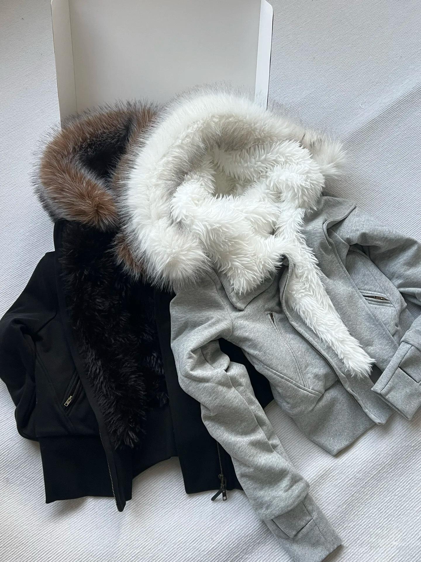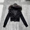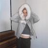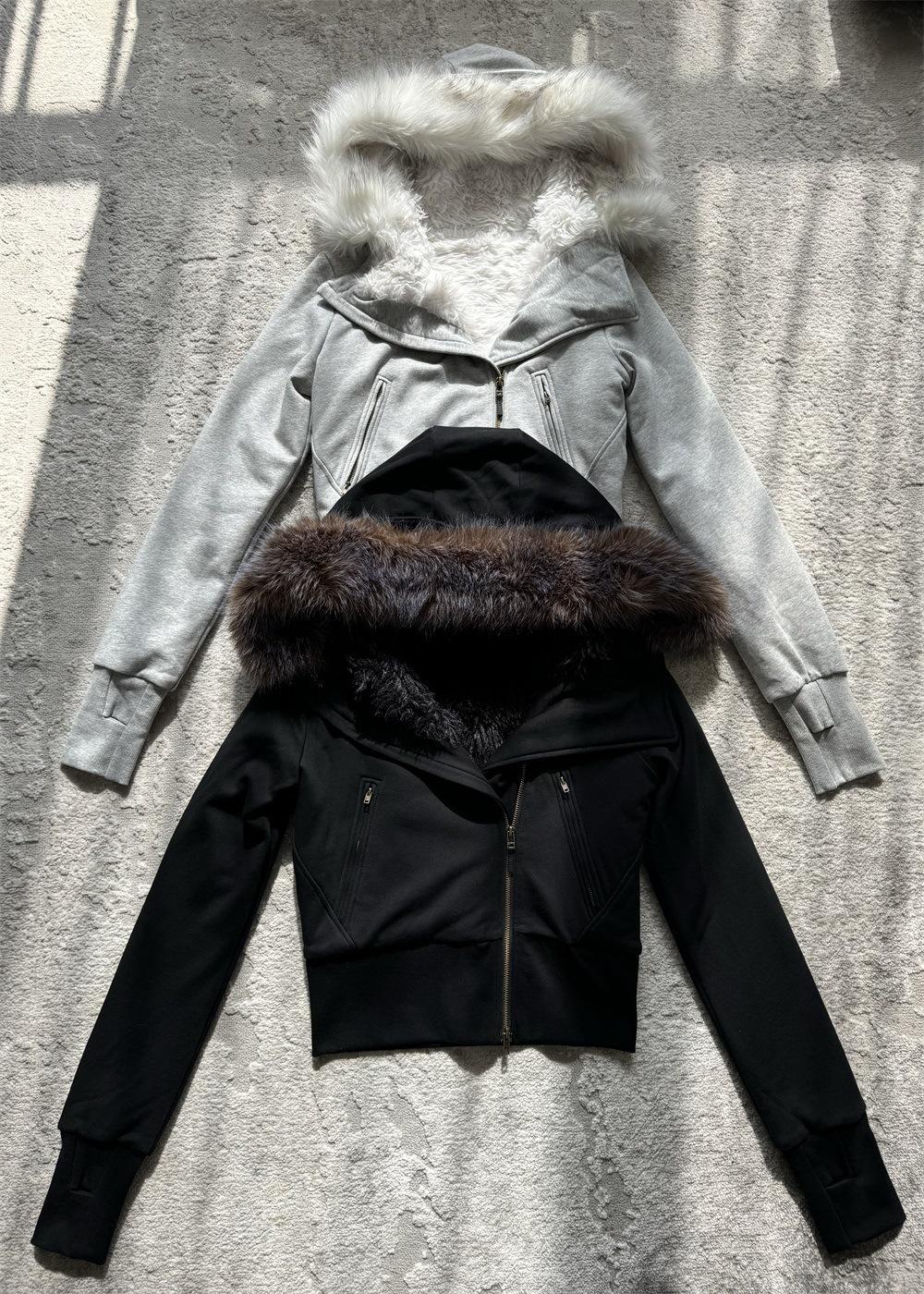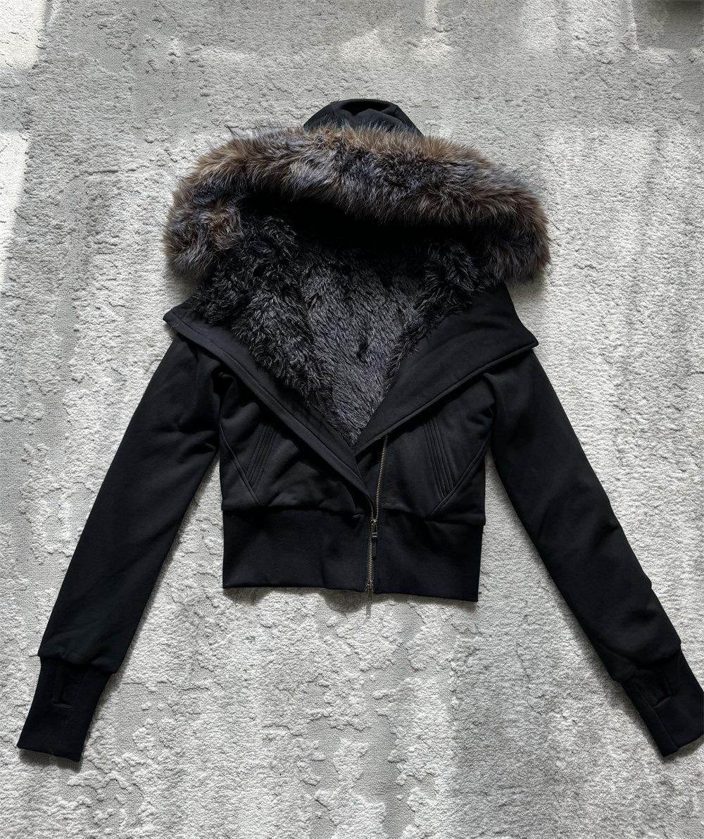 Sudadera corta con capucha y cuello de piel sintética para otoño e invierno, con forro de felpa, cremallera ajustada de algodón, cárdigan Y2K para mujer