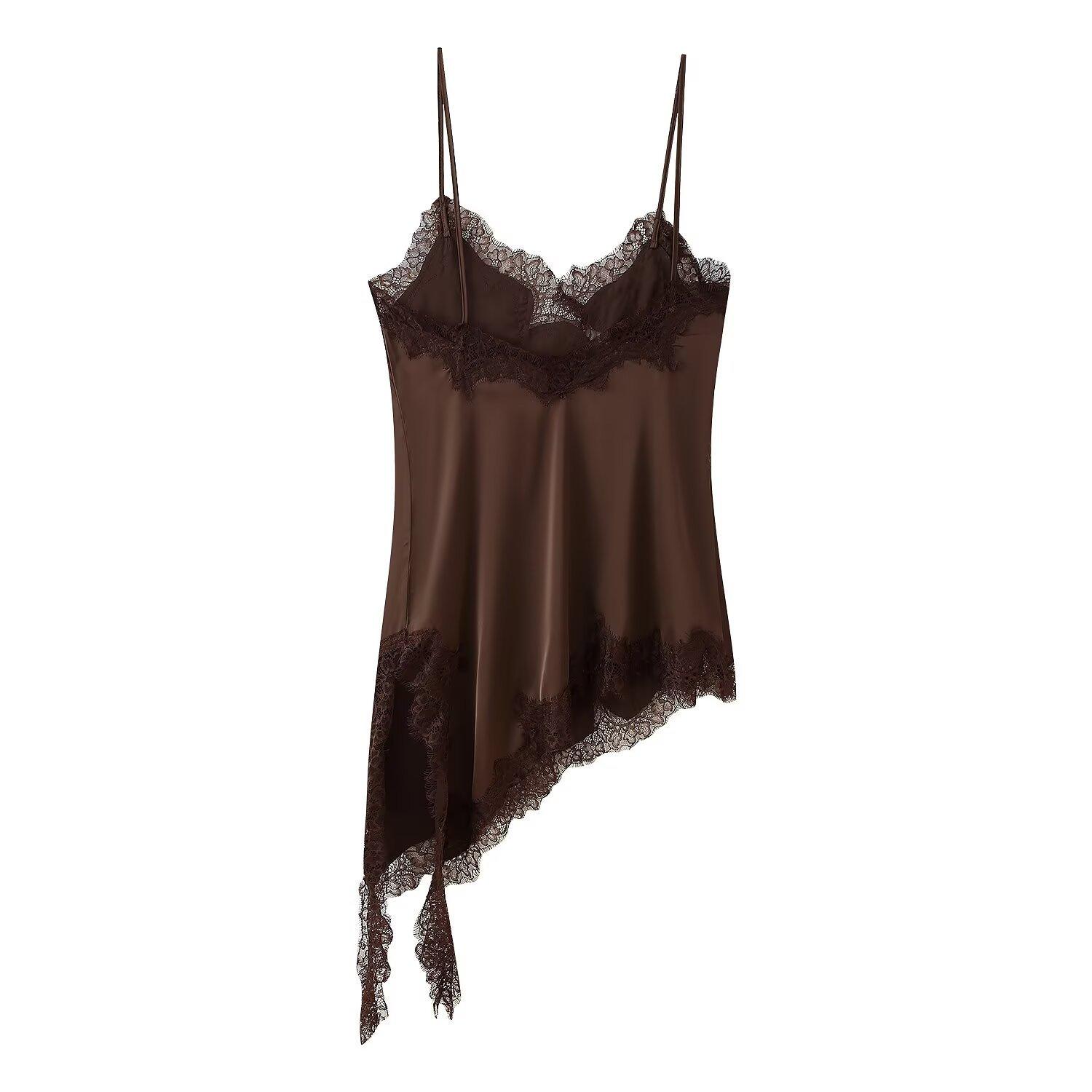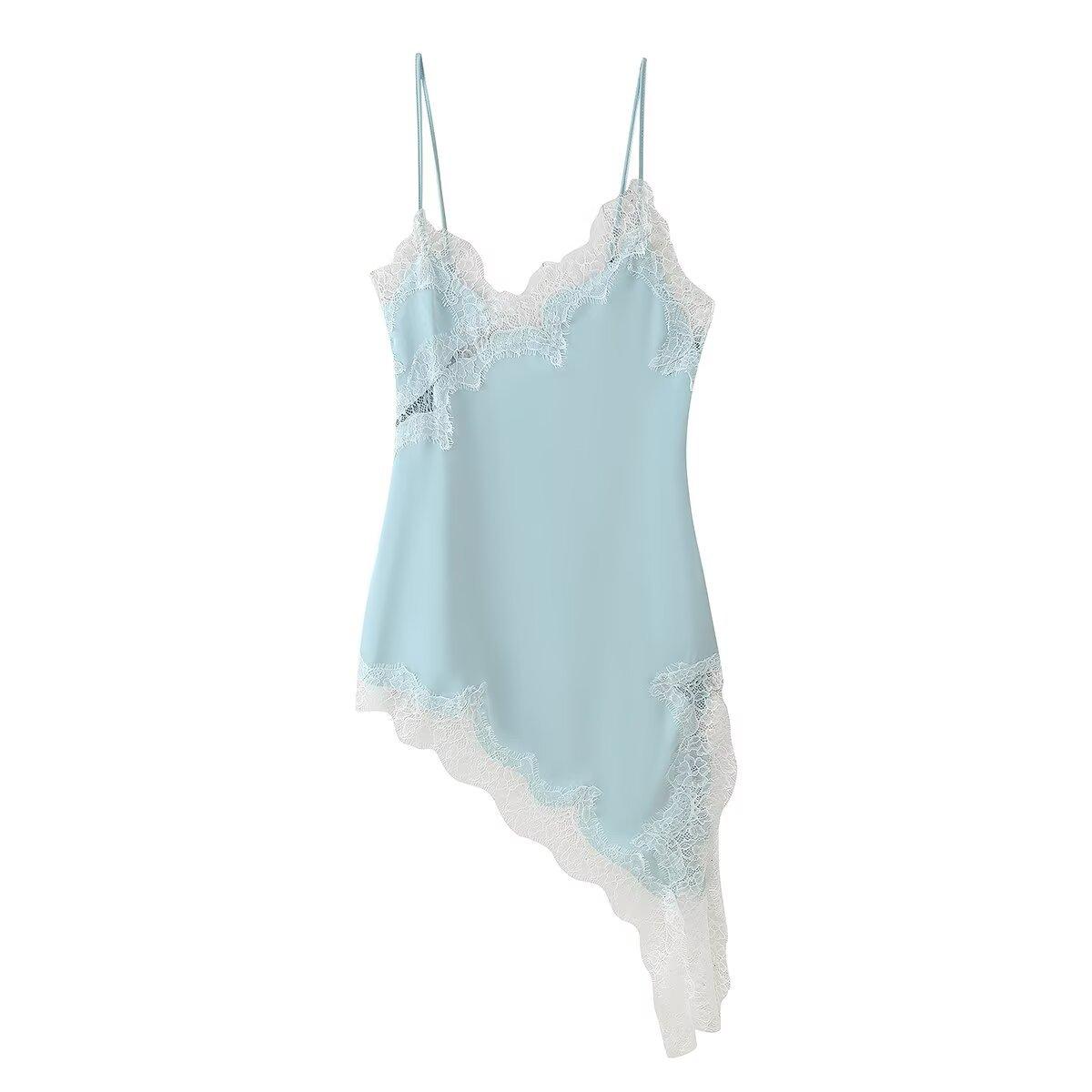 Ropa Europea y Americana Transfronteriza Aliexpress Popular Sexy Encaje Asimétrico Vestido de Tirantes