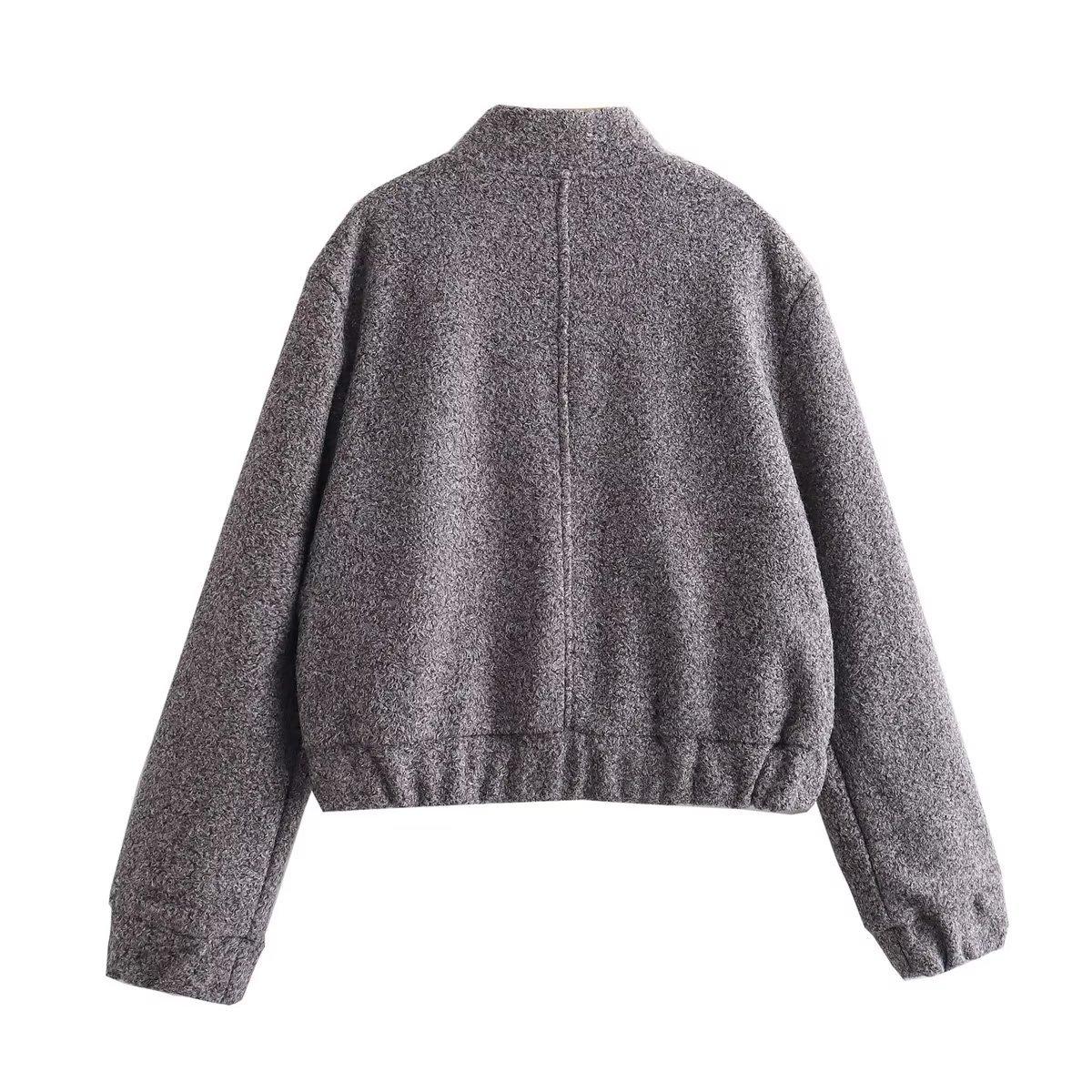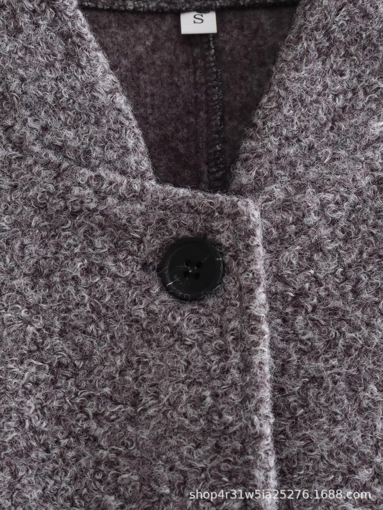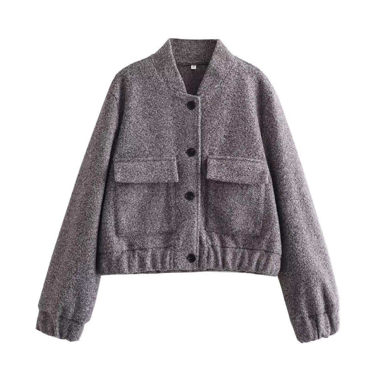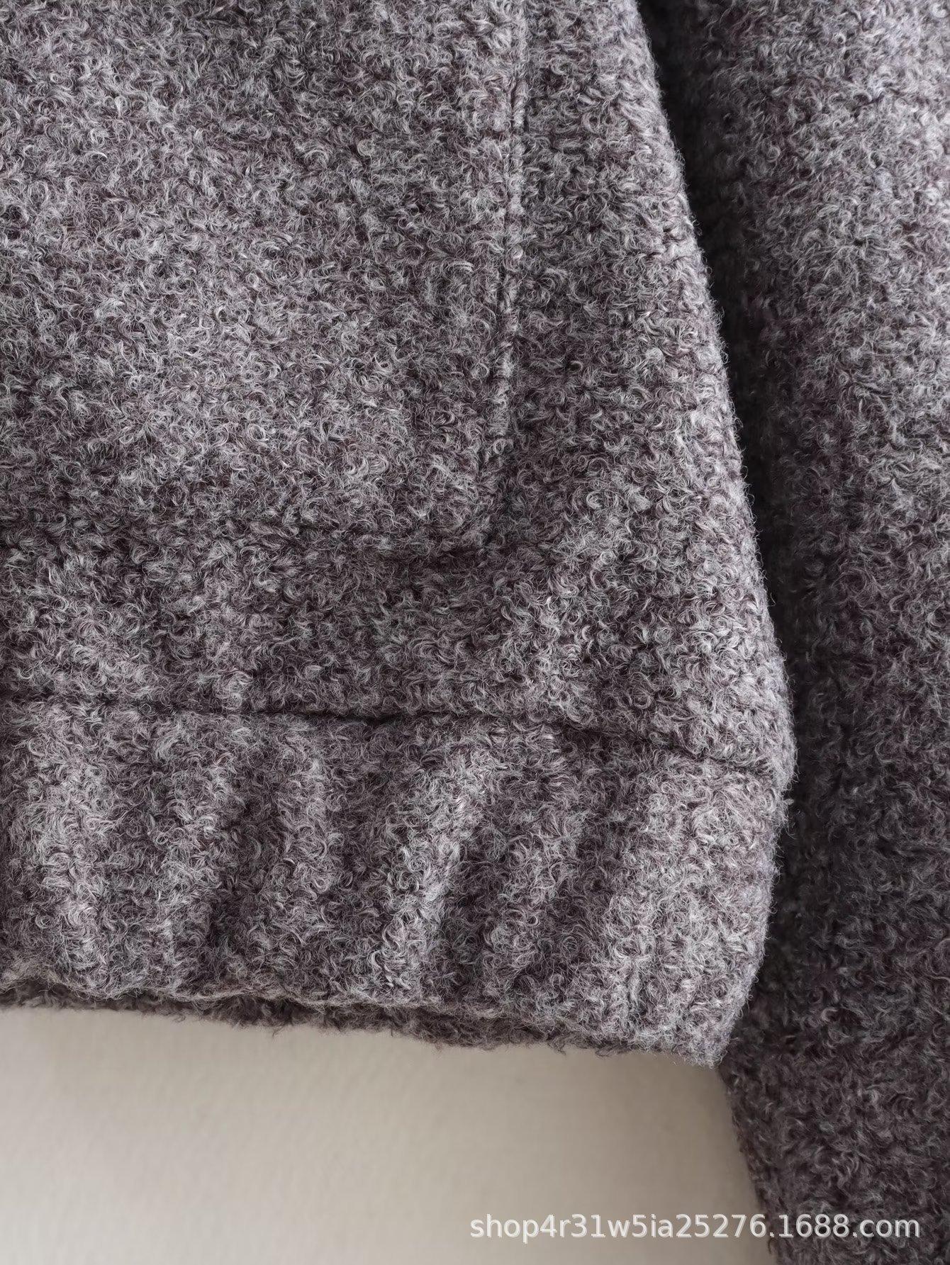 Venta al por mayor transfronteriza 2023 Otoño Nuevo Diseño de Cuello Alto Abrigo Corto de Lana Suelto Bolsillo Grande Top
