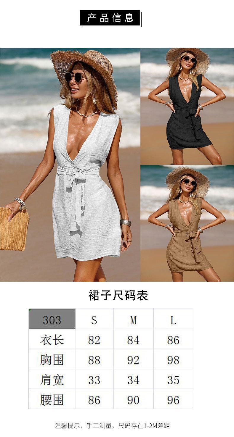 Abrigo europeo y americano transfronterizo 2024 vestido de playa para vacaciones duradero y fácil de llevar con cordones sin mangas bikini blusa falda