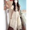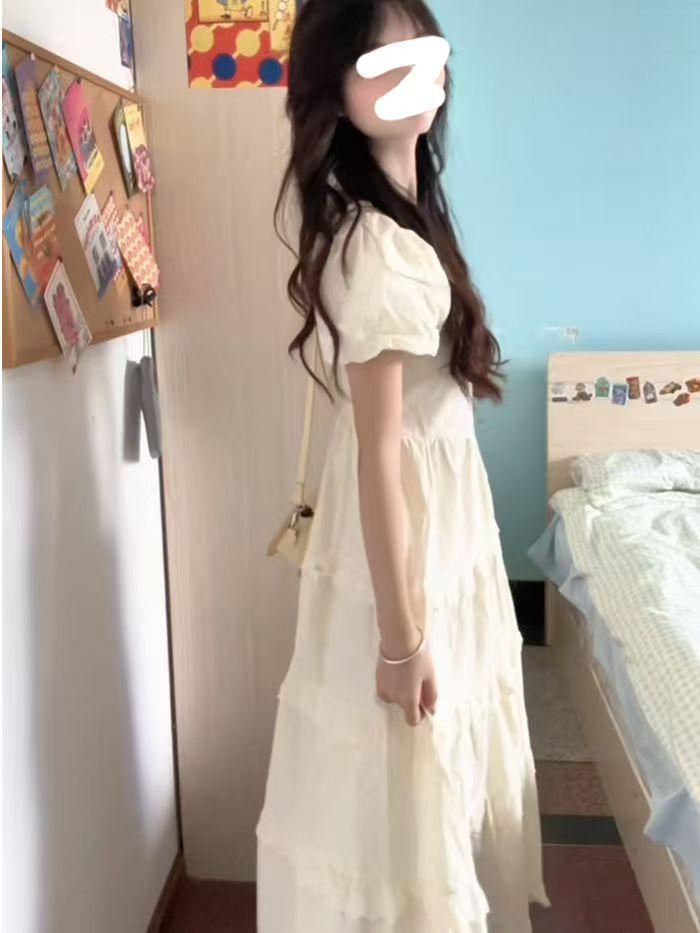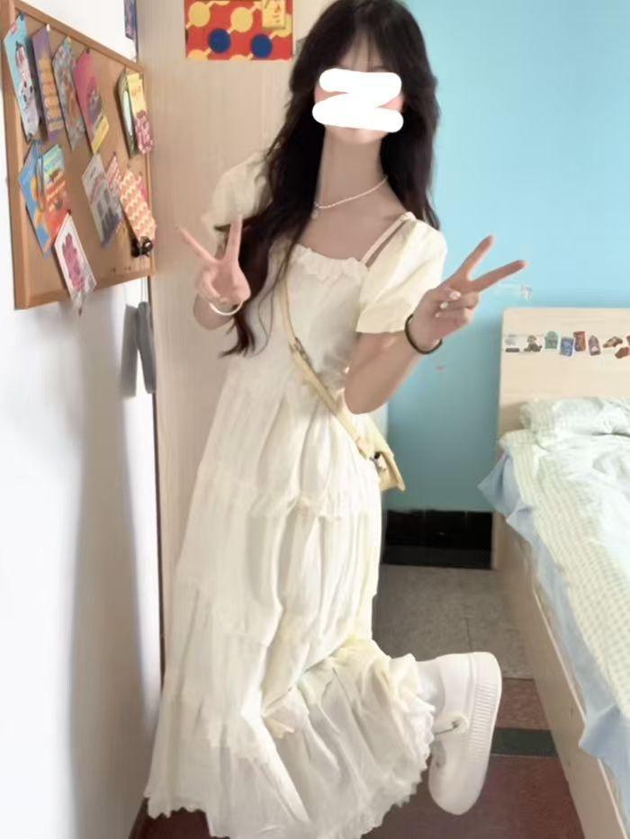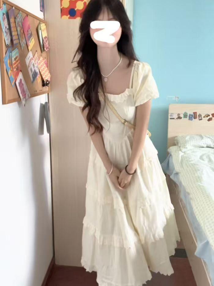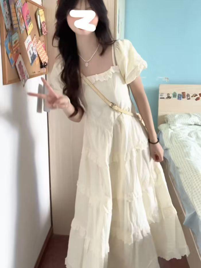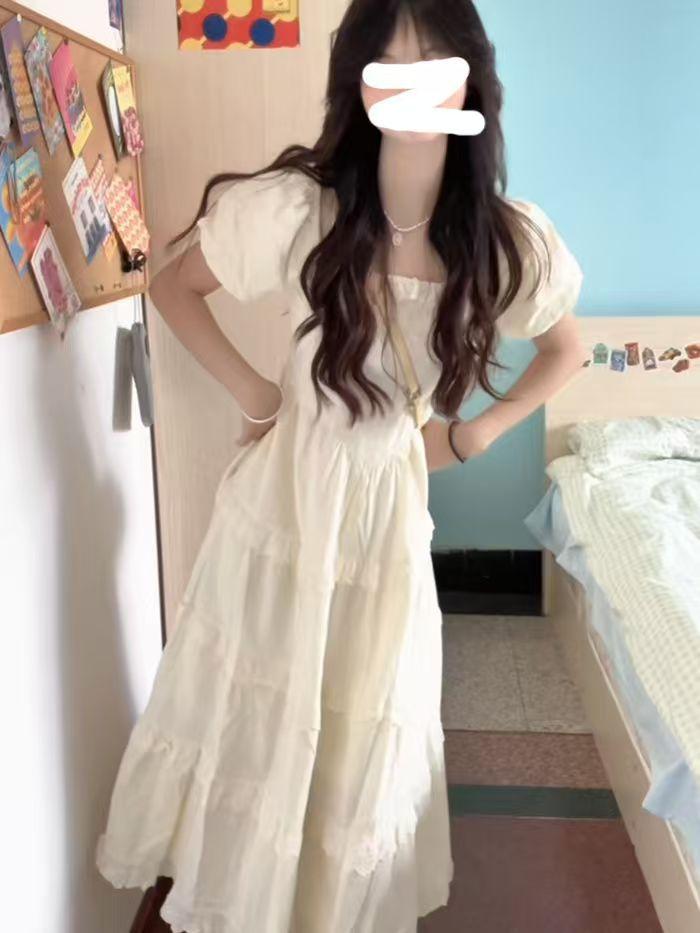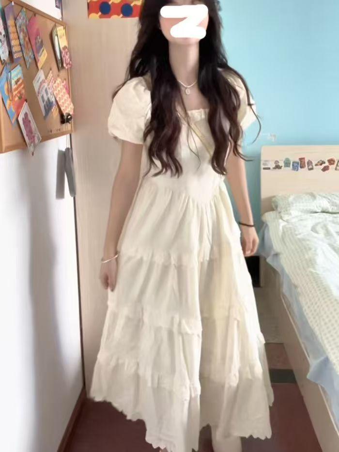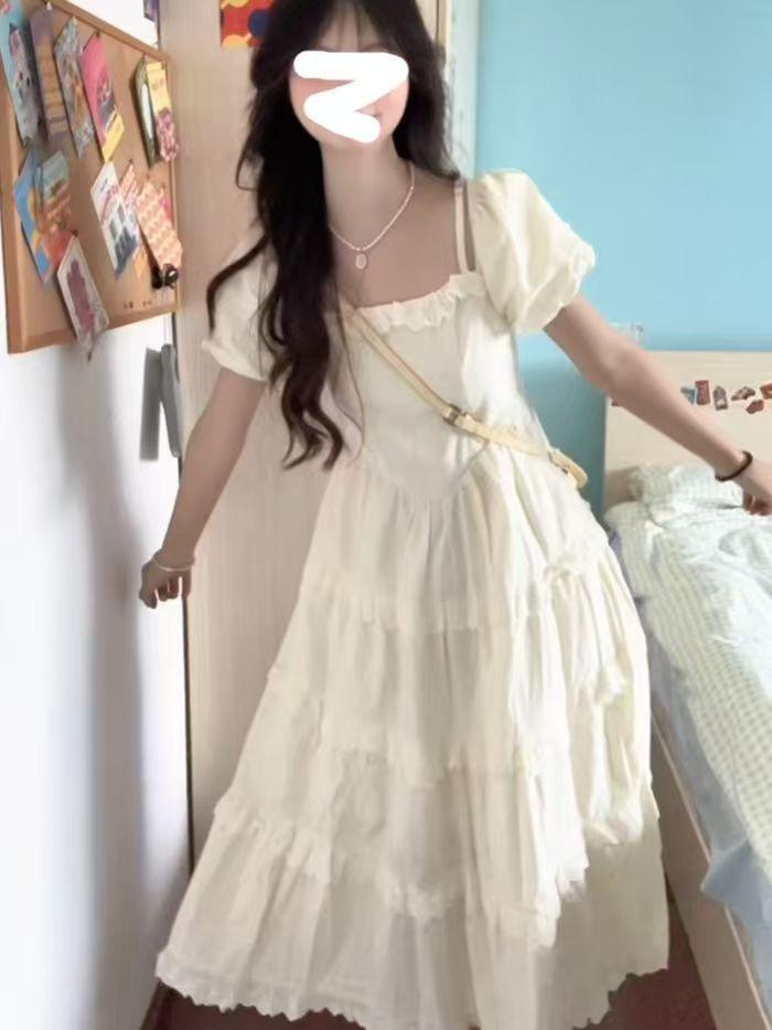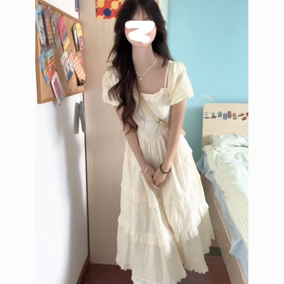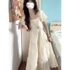 Vestido Dulce Estilo Francés Diseño de Verano para Mujer Nicho Sentido del Estilo Estilo Suave Falda de Pastel de Princesa Cintura Ajustada Falda Larga Abullonada