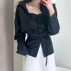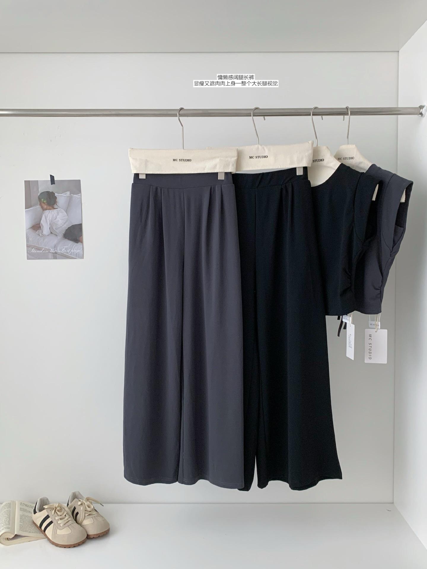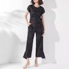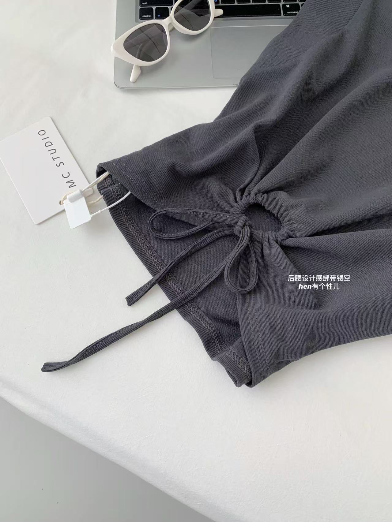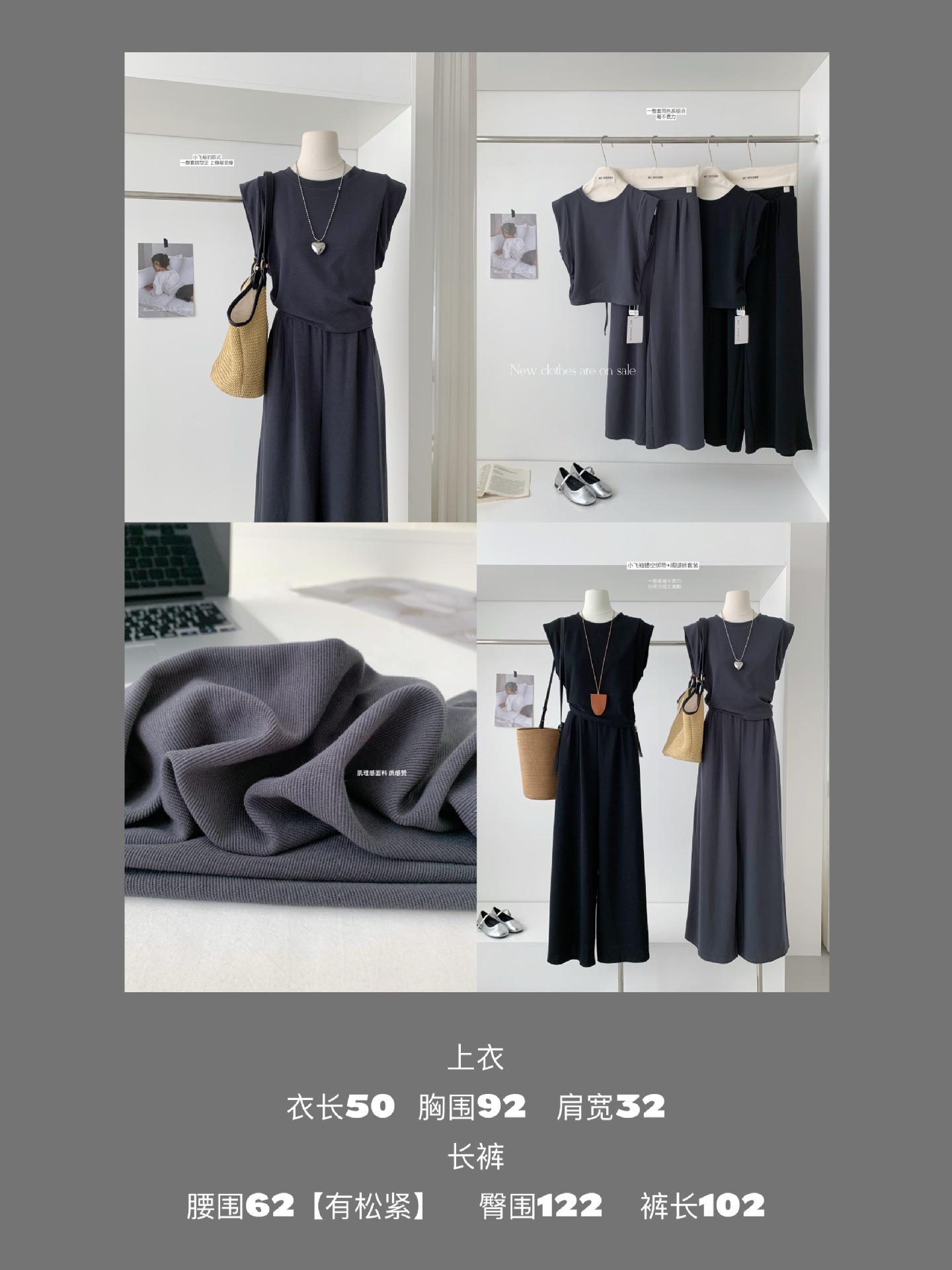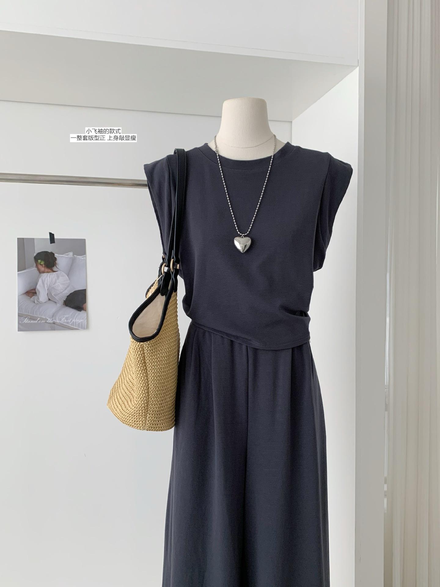 Diseño Coreano Cordón Recorte Espalda Descubierta Camiseta de Tirantes + Traje de Pantalón Recto Casual de Pierna Ancha