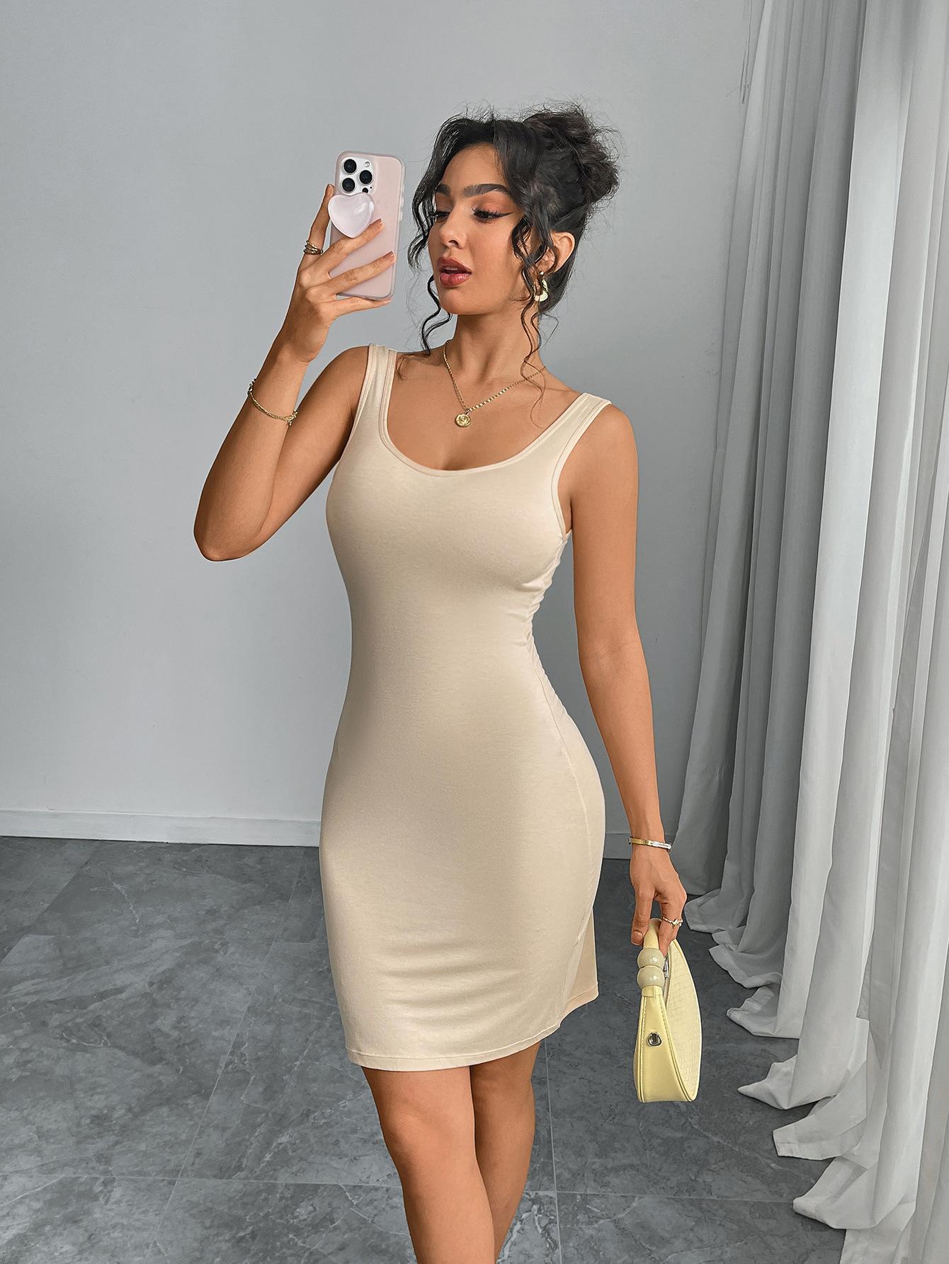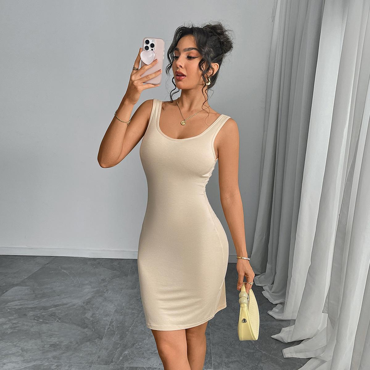 Vestido Sexy Europeo y Americano Verano Nuevo Tirantes Transfronterizo Color Sólido Falda Fondo Cintura Adelgazante Falda Larga de Tirantes