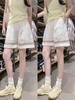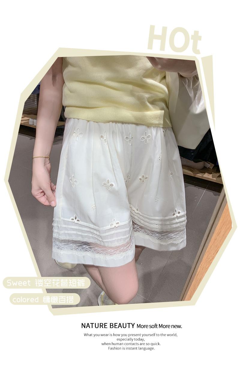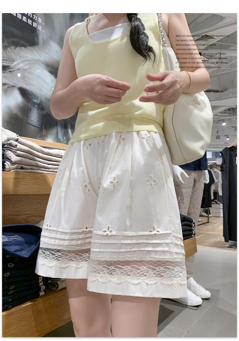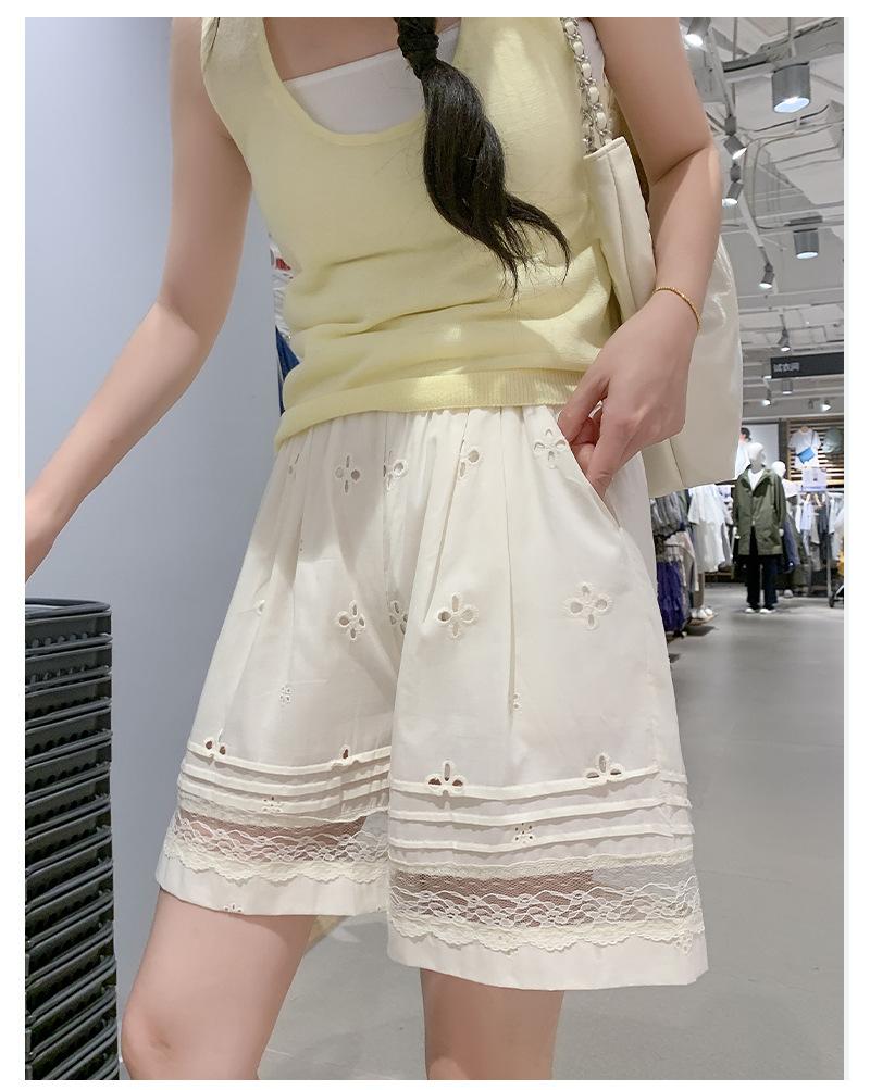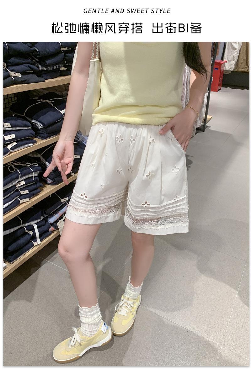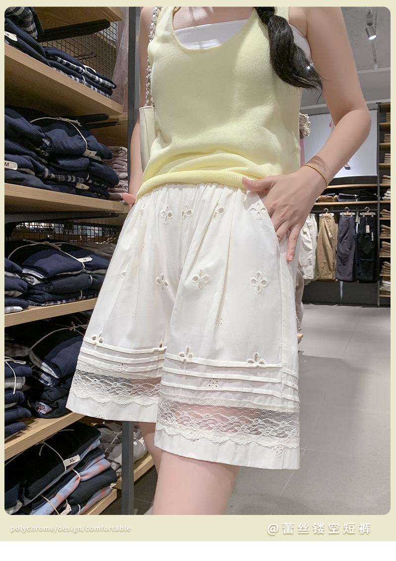 Shorts de Encaje Blanco para Mujer, Verano Delgados de Cintura Alta Sueltos con Caída Estilo Lazy Casual de Pierna Ancha hasta la Rodilla
