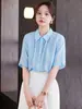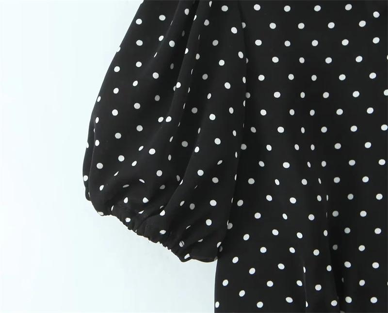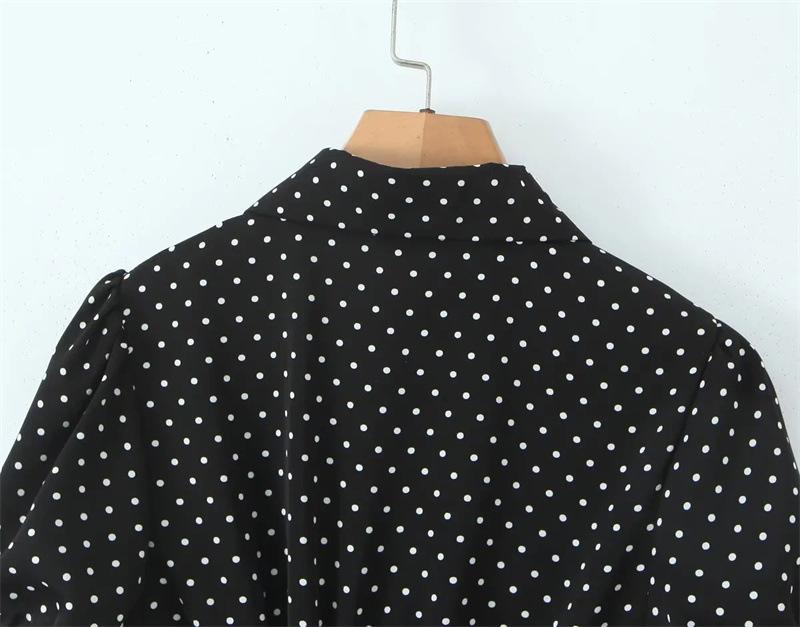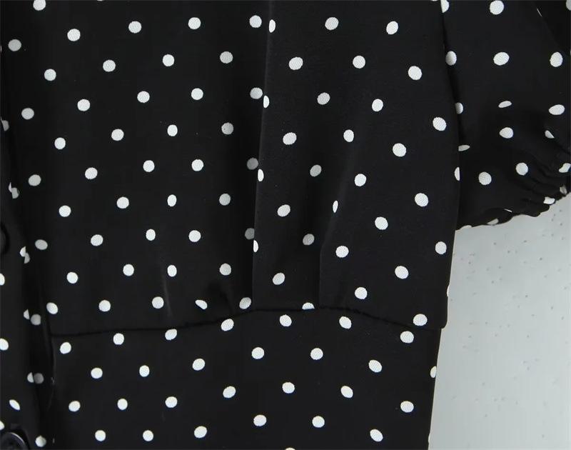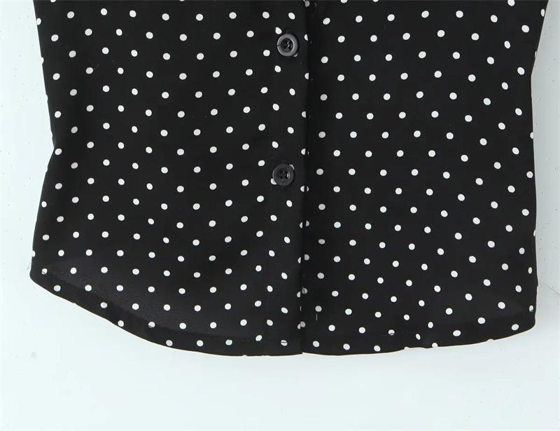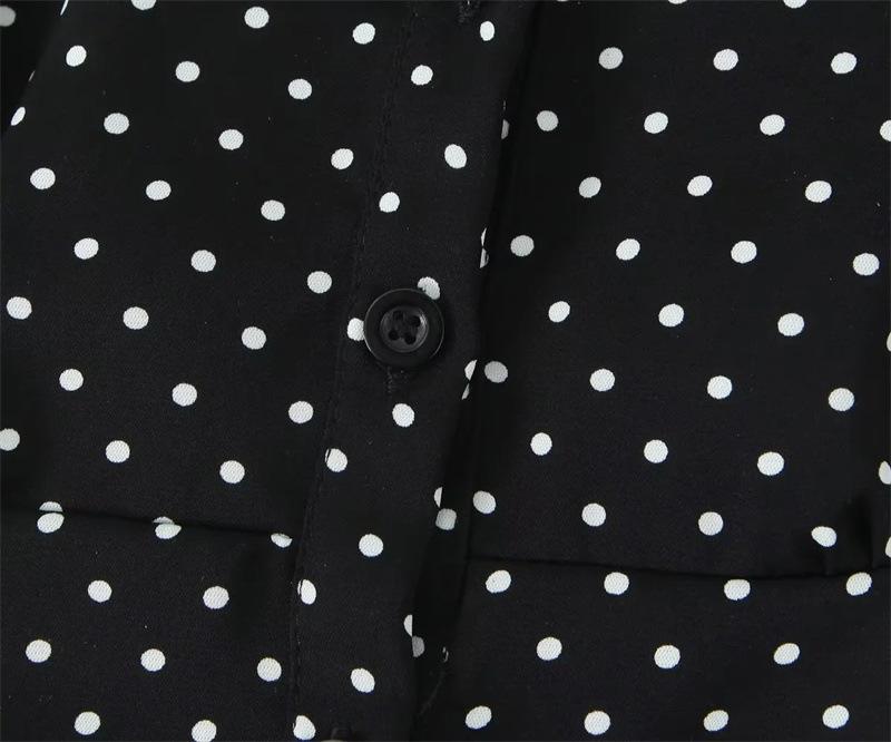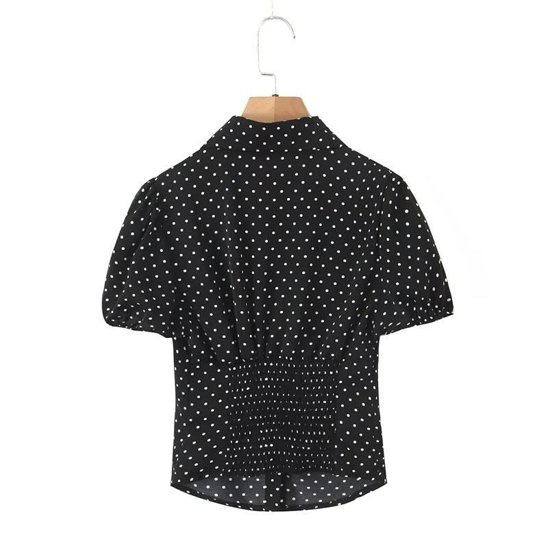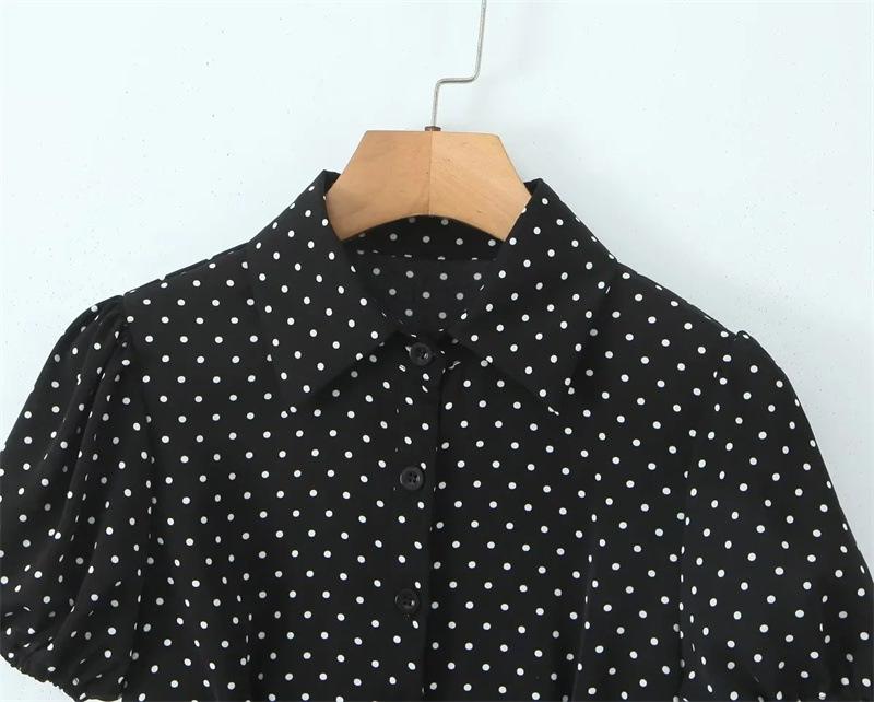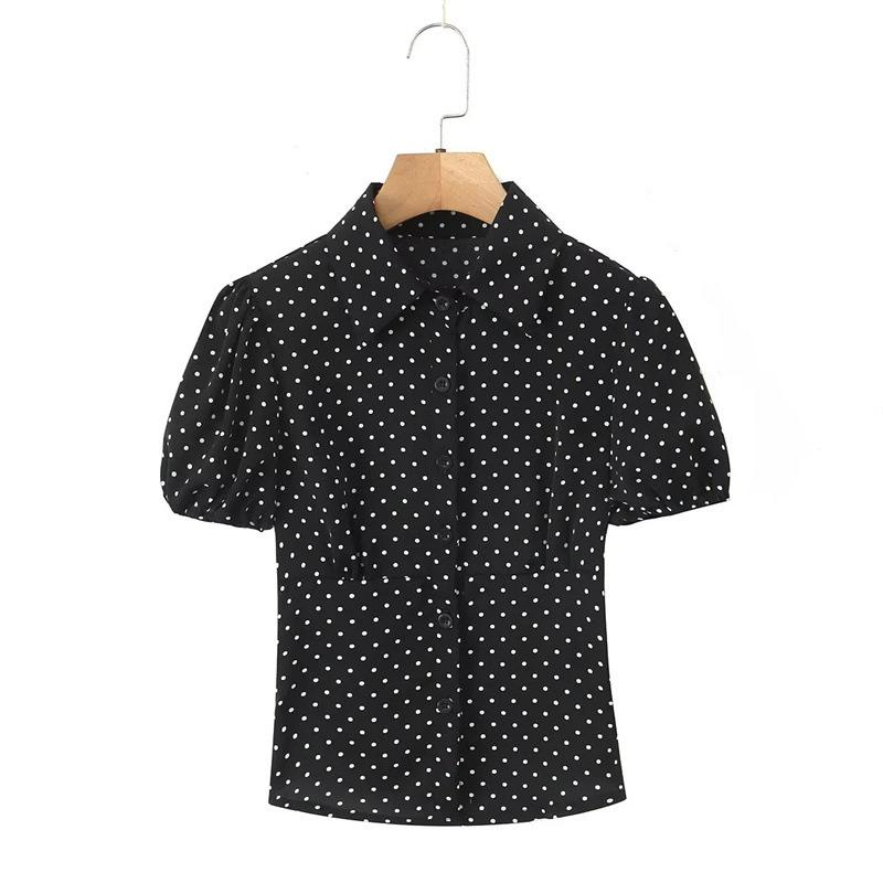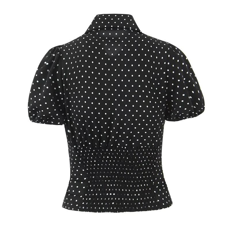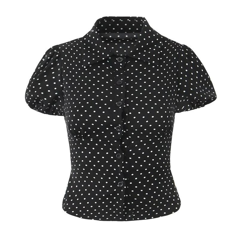 2025 Nueva Moda de Verano Solapa Lunares Camisa de Manga Corta Look Adelgazante de Cintura Top Corto de Botonadura Sencilla para Mujer