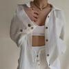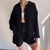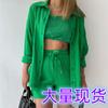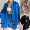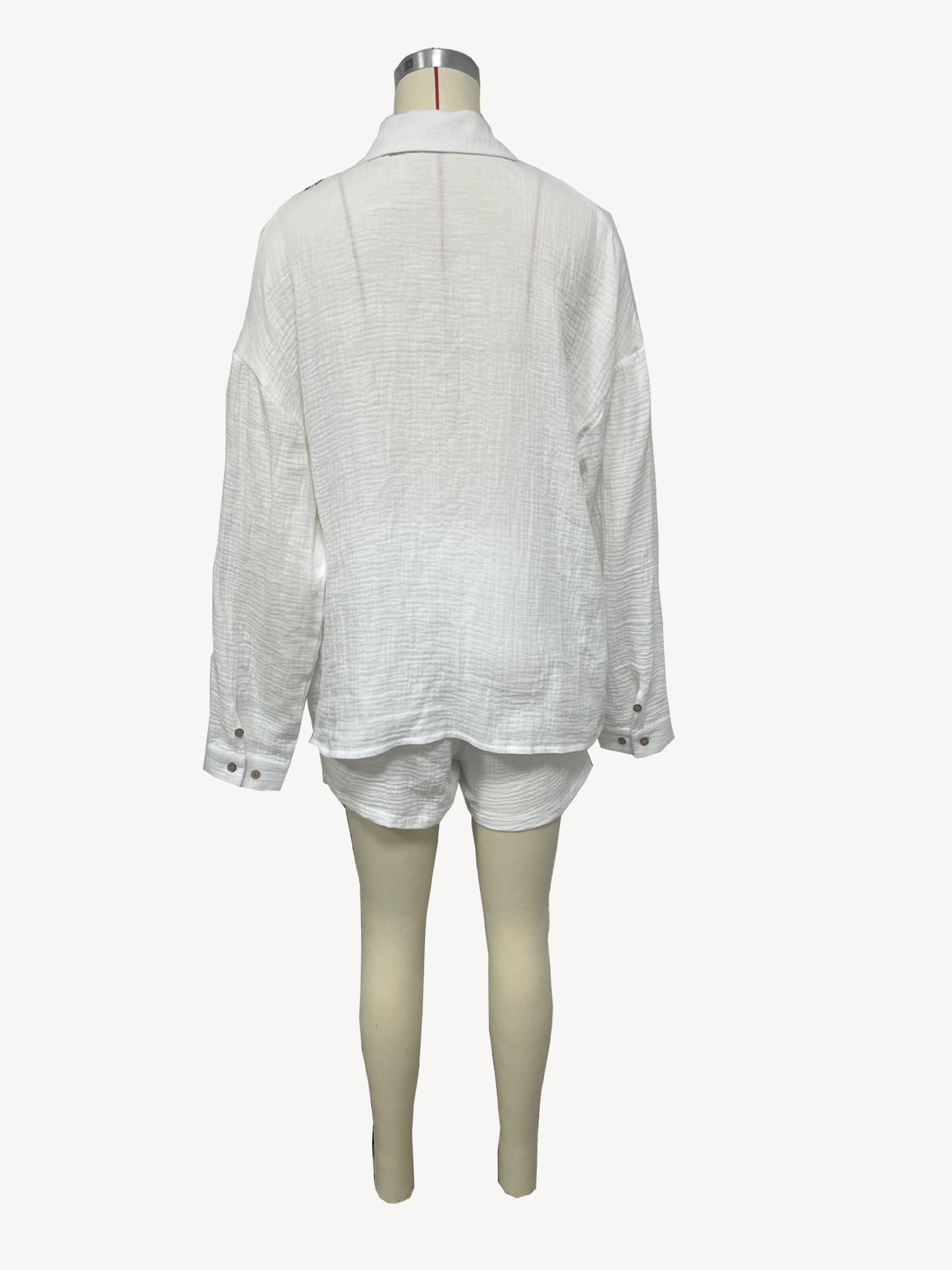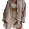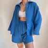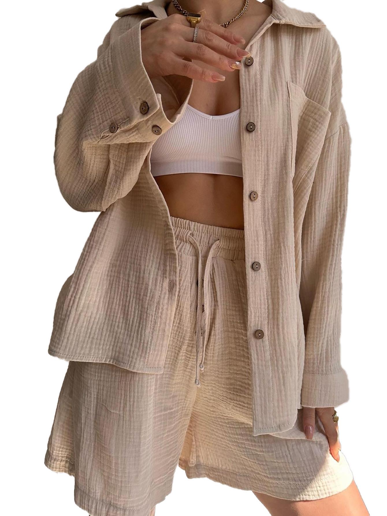 2024 Amazon Camisa de Crepé Lel de Manga Larga para Mujer Europea y Americana, Shorts con Cordón de Cintura Alta, Conjunto de Dos Piezas Casual de Moda