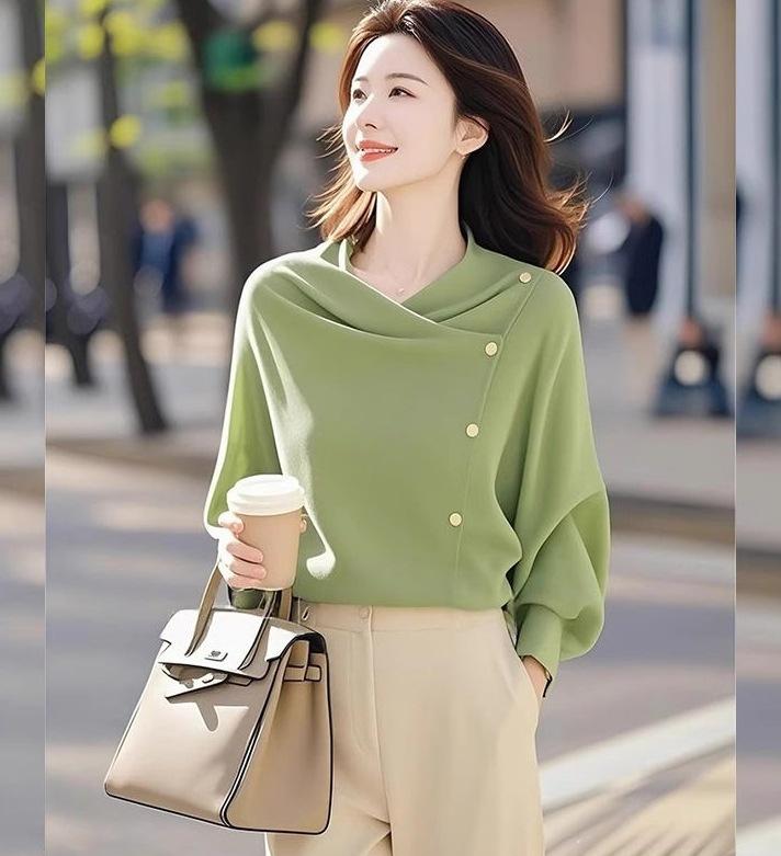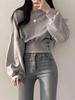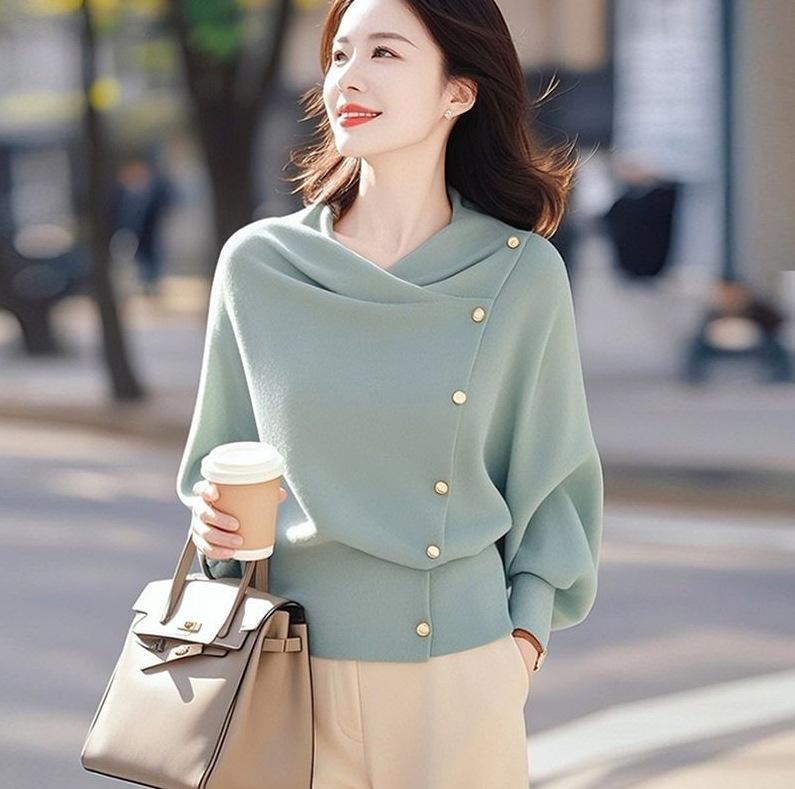 Primavera y Verano 2025 Nuevo Nicho Estilo Hong Kong Ropa Única y Hermosa Suéter de Manga Larga para Mujer Adelgazante Cubre Vientre Holgado