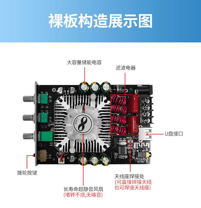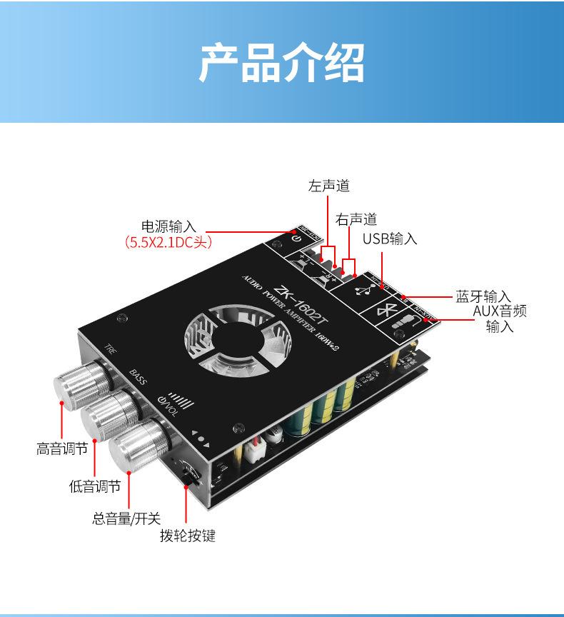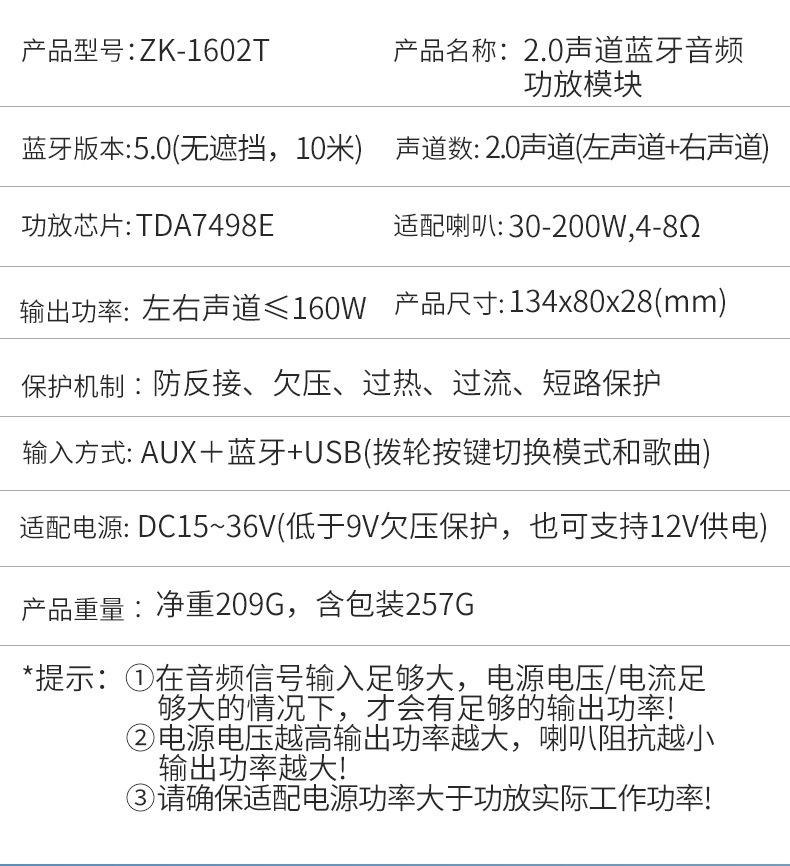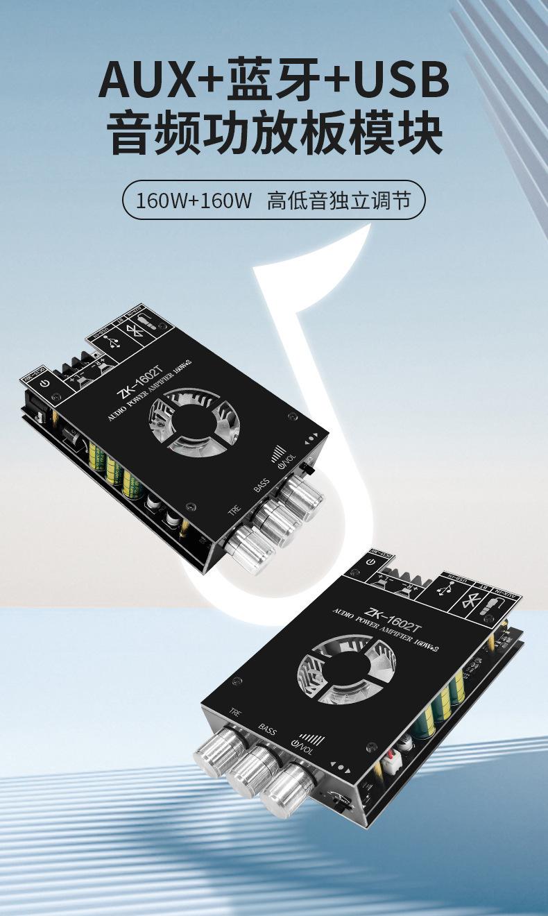 Módulo Amplificador de Potencia Digital Bluetooth Zk-1602T Tda7498E Ajuste de Graves y Agudos Módulo de Placa Amplificadora de Potencia de Audio Bluetooth