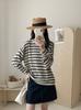 Camiseta Clássica Listrada Estilo Coreano Nova de Primavera e Verão Protetor Solar Manga Longa Gola Redonda Tricô Interno Pulôver Listrado