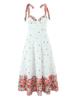 Vestido de Verano Romántico Francés Blanco Floral Color Block Midi con Tirantes Espagueti y Lazo en la Espalda Vestido de Vacaciones
