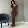 Vestido Europeo y Americano Transfronterizo de Cuello U de Color Sólido para Mujer Primavera y Verano 2025 Elegante Vestido Largo de Tirantes Acampanado Venta al por Mayor