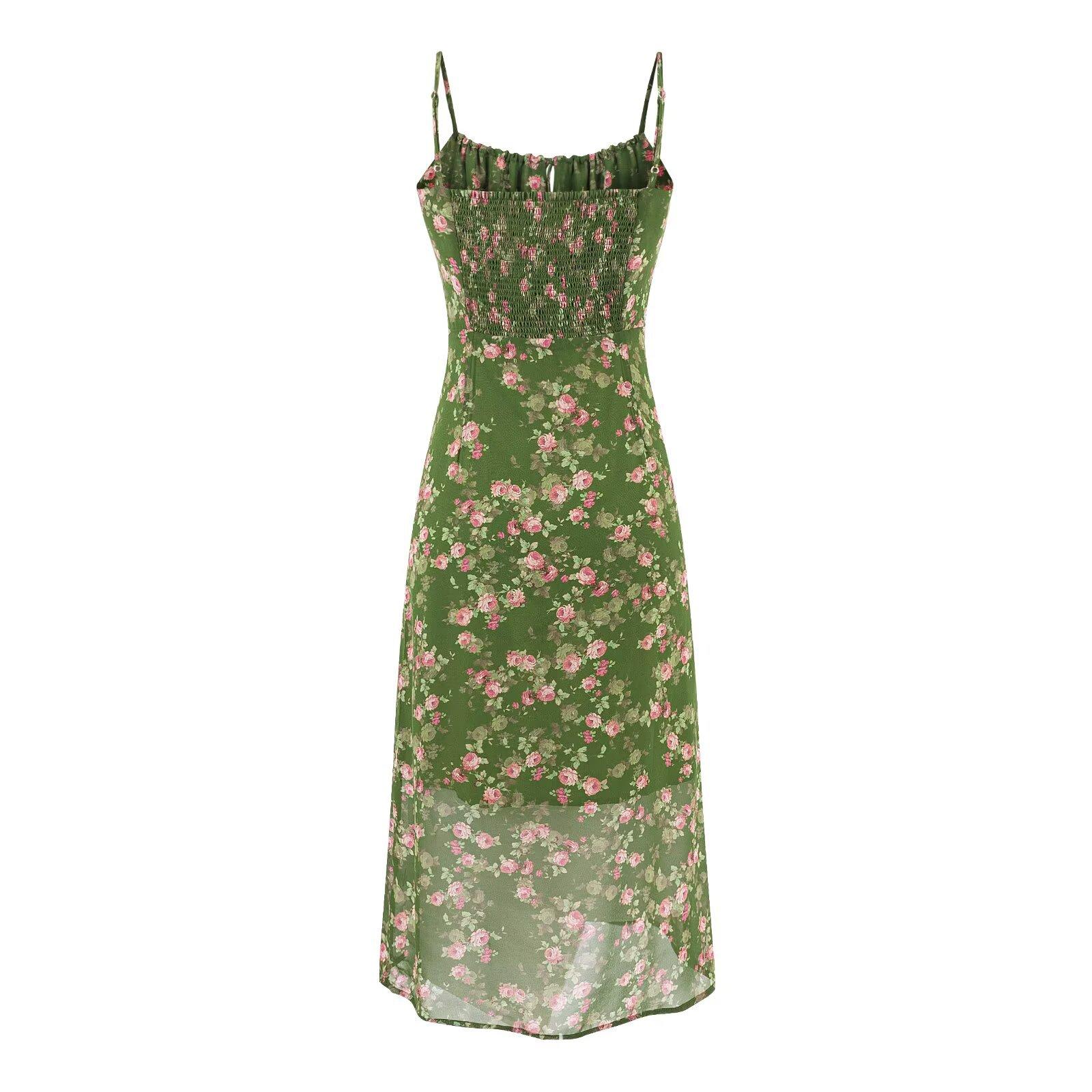 Vestido Retro Francés Floral de Tirantes para Vacaciones en la Playa 2025 Verano Nuevo Elegante Cintura Adelgazante Look Falda Midi
